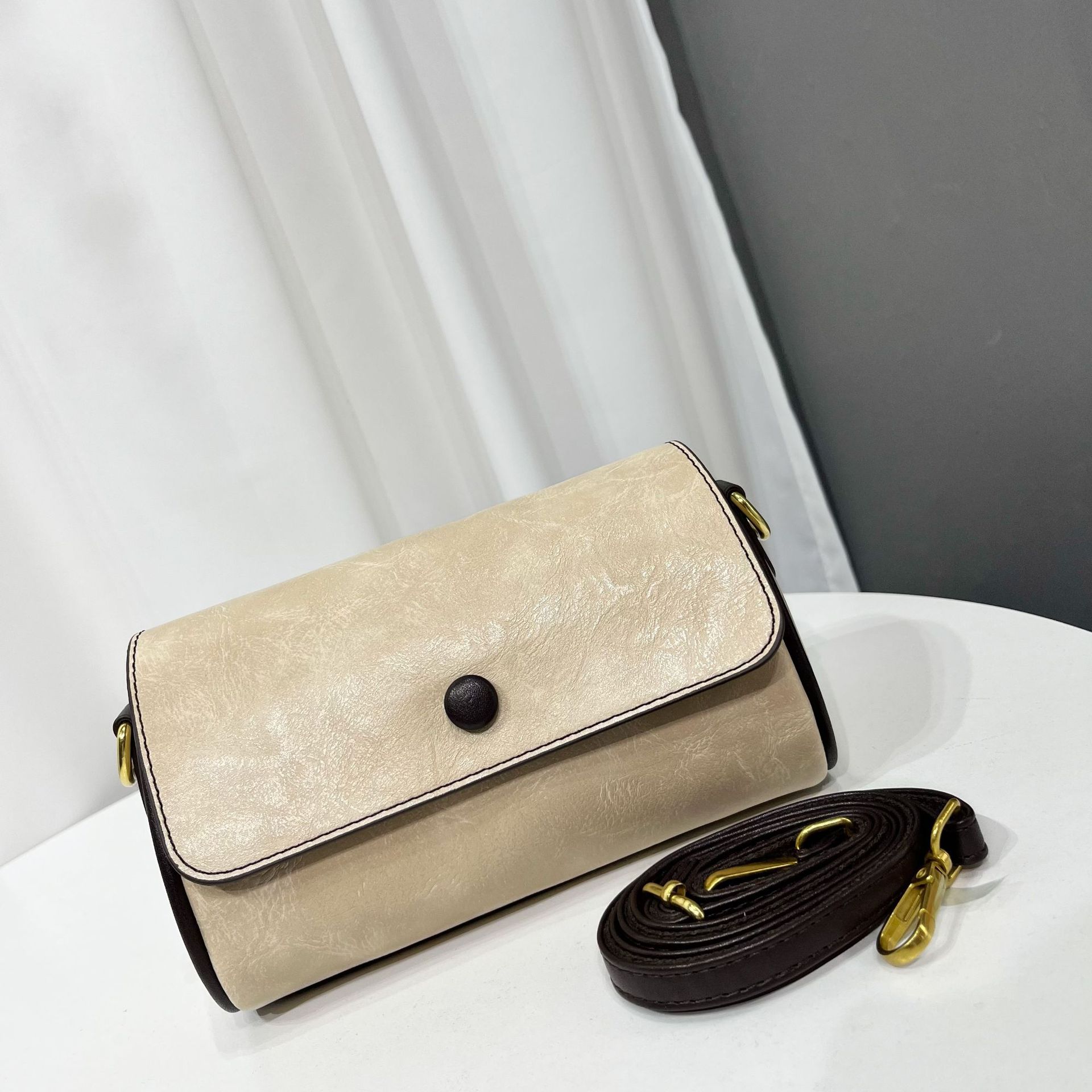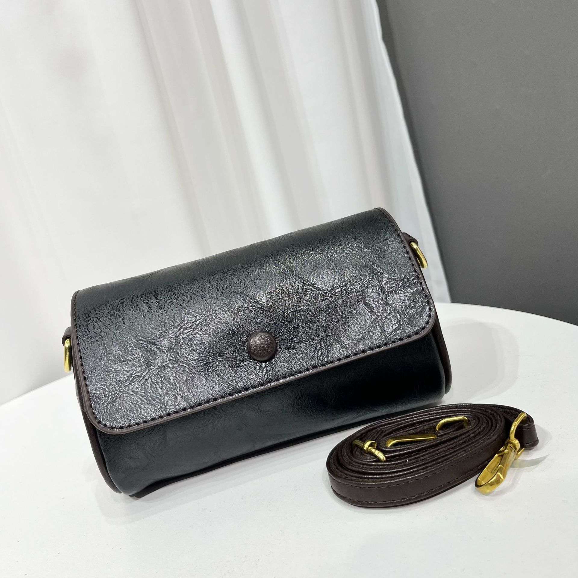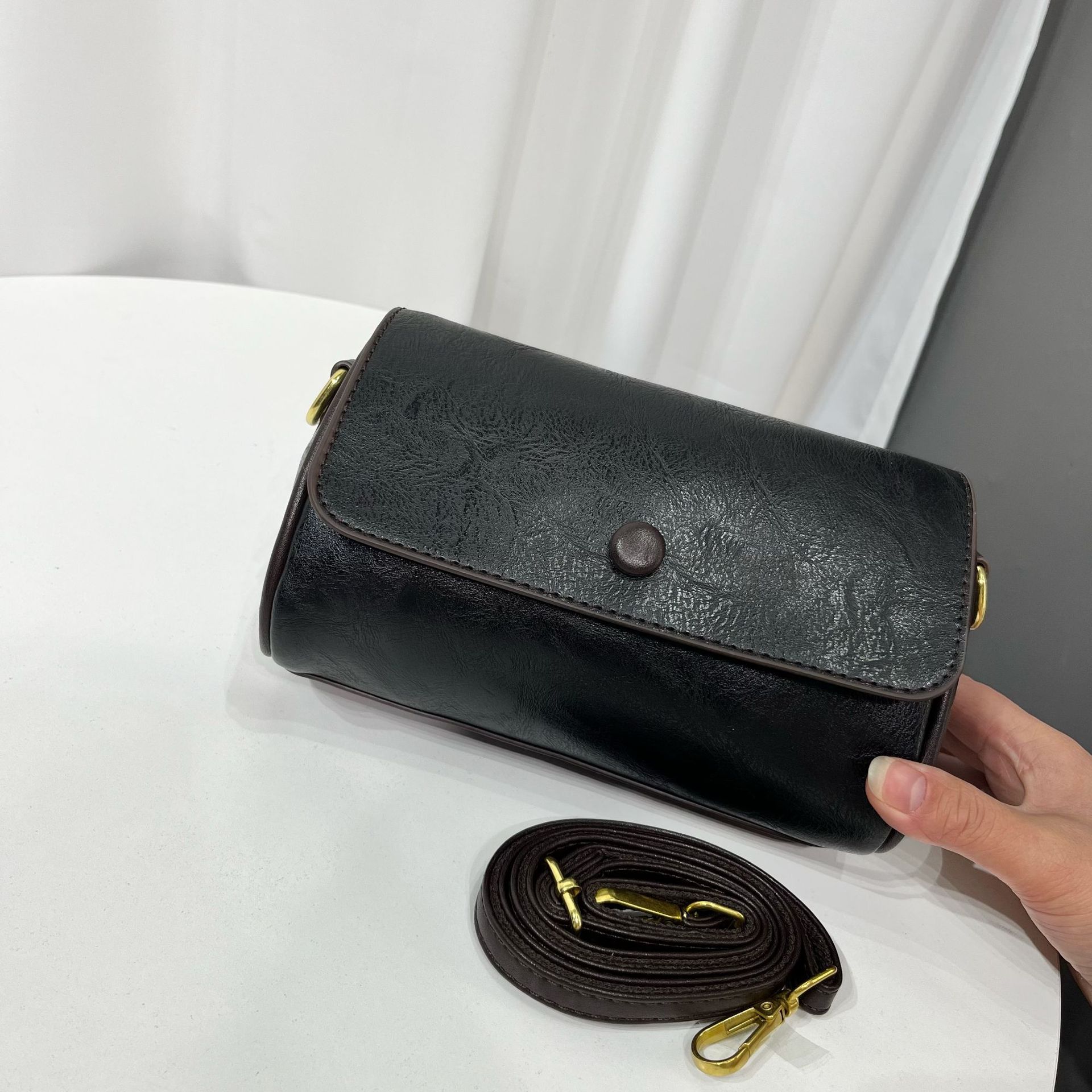 单肩包纯色质感复古百搭小方包小众设计休闲通勤百搭包包女跨境