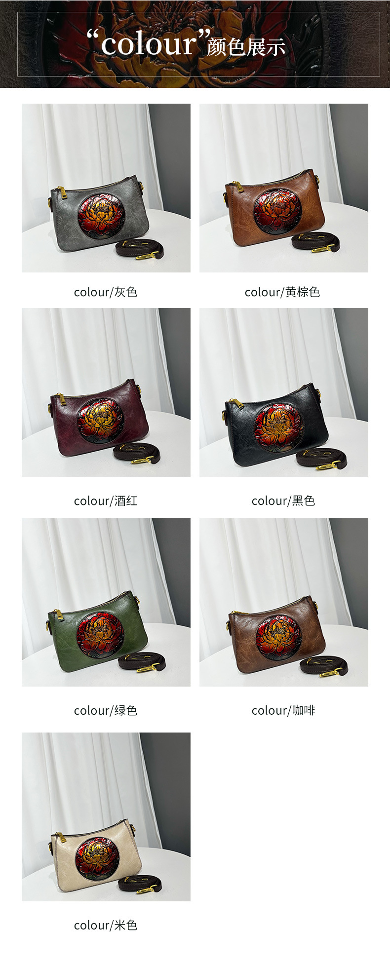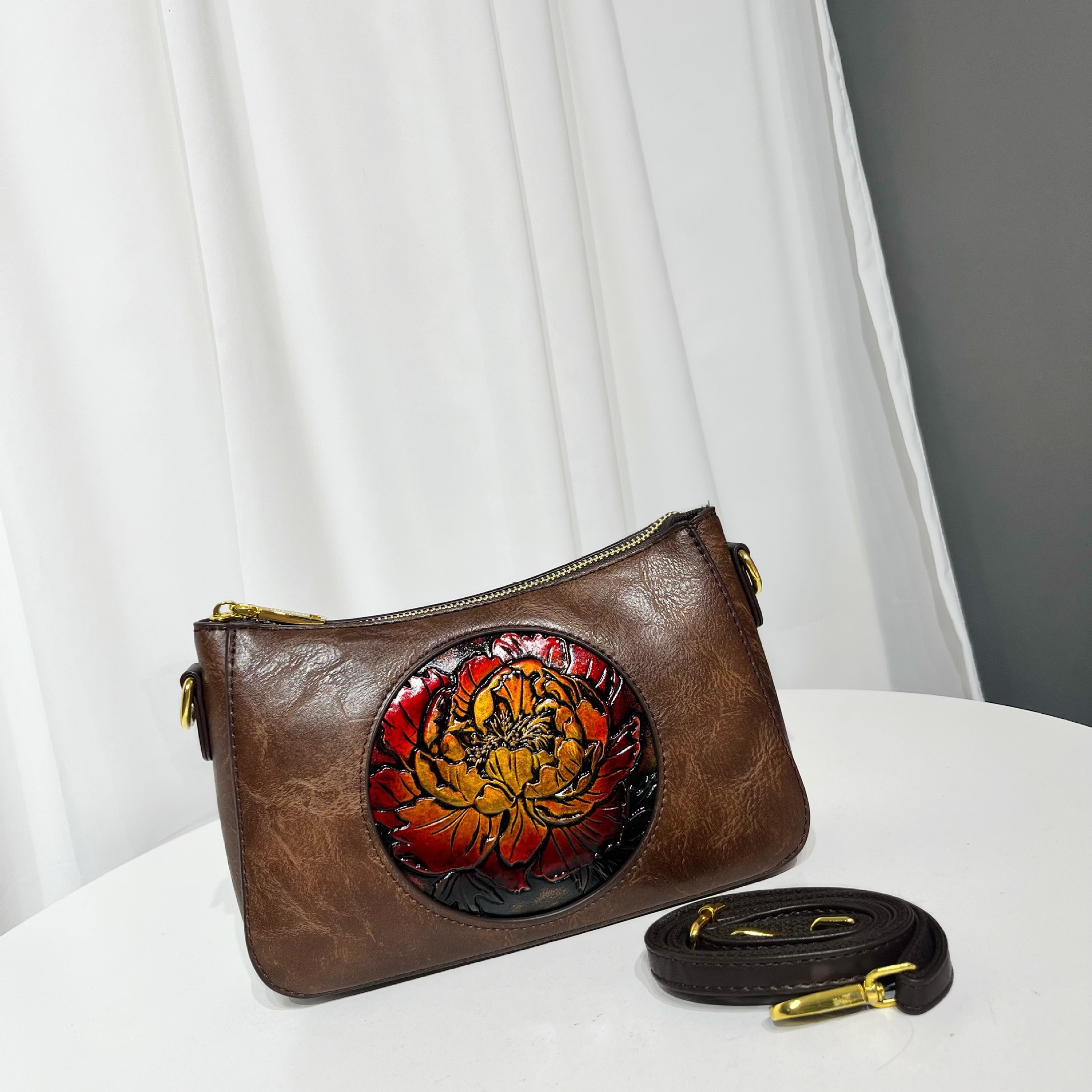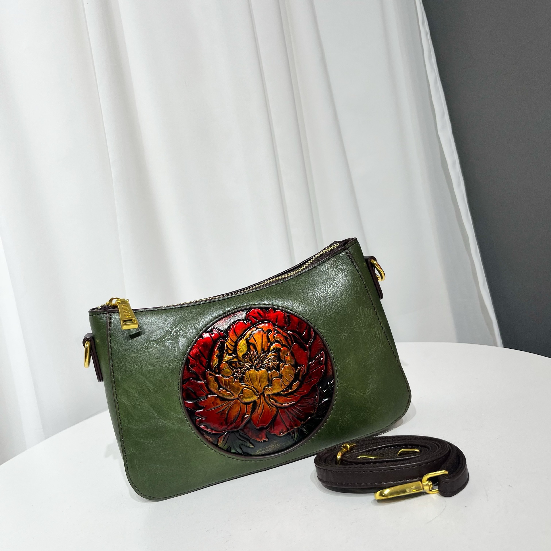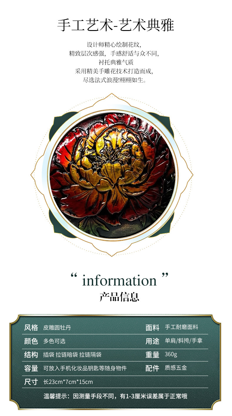 材质: 手工耐磨材质 箱包潮流款式: 腋下包 箱包大小: 大 里料质地: 涤纶 品牌: 其他 风格: 都市简约 流行元素: 车缝线 颜色: 灰色,黄棕色,酒红,黑色,绿色,咖啡,米 货号: 9047皮雕圆牡丹 上市年份季节: 2025年秋季 箱包形状: 横款方型 开盖方式: 拉链 包内部结构: 手机袋,夹层拉链袋 硬度: 中偏软 外袋种类: 挖袋 有可授权的自有品牌: 否 有无夹层: 有 肩带根数: 单根 适用场景: 日常搭配 重量: 0.36 kg/个