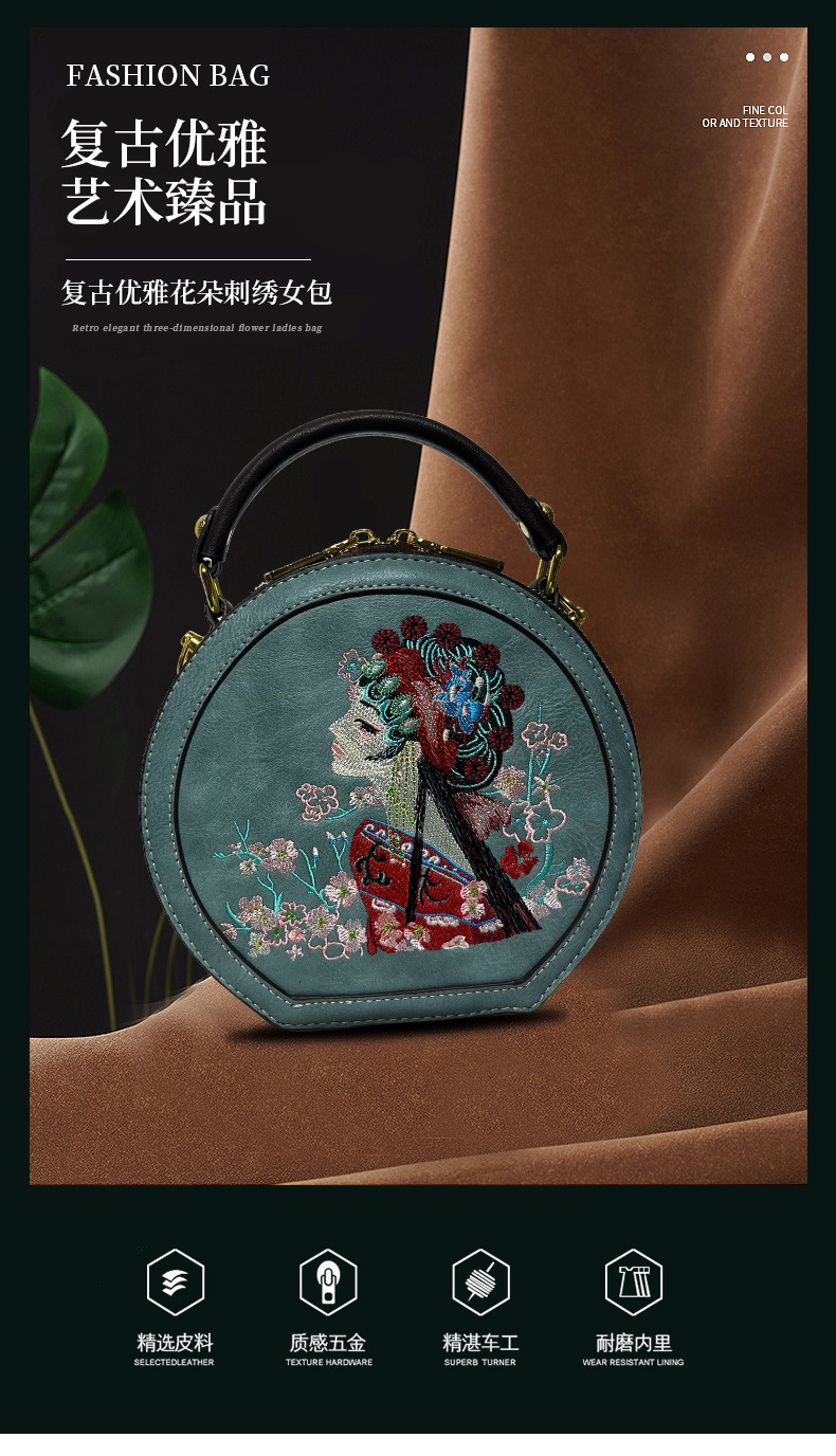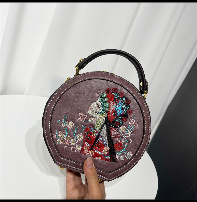 斜挎包花旦刺绣复古质感单肩包春夏小圆包质感休闲通勤包包跨境 投诉