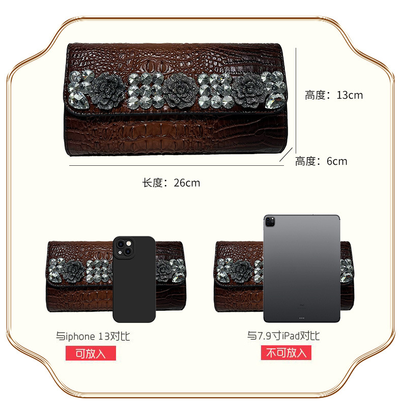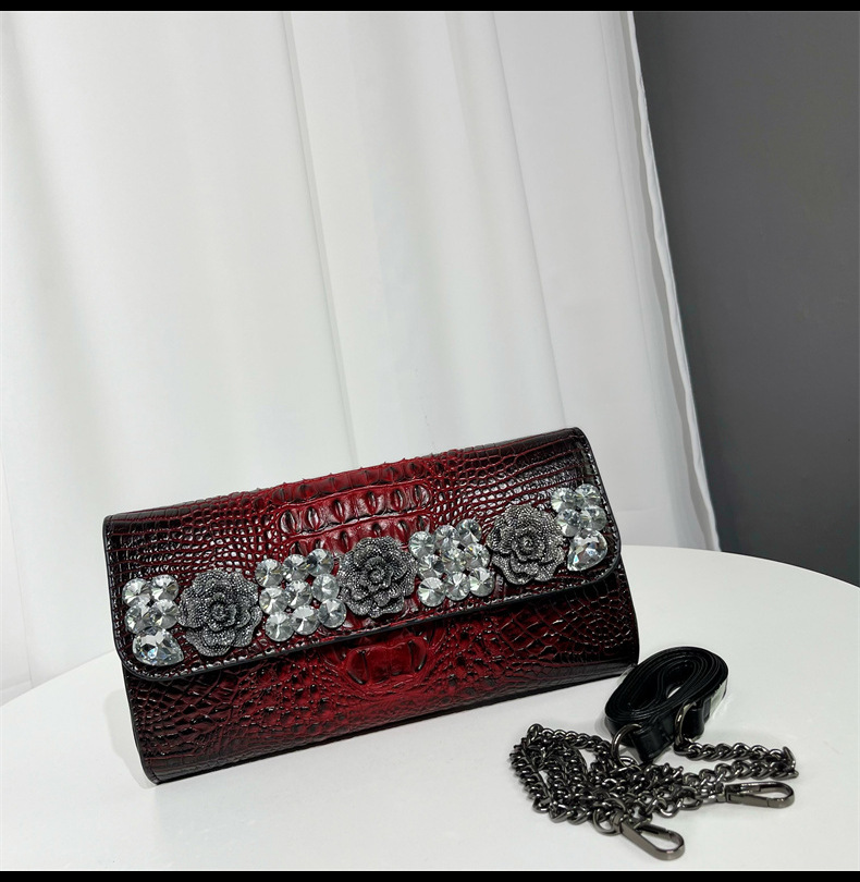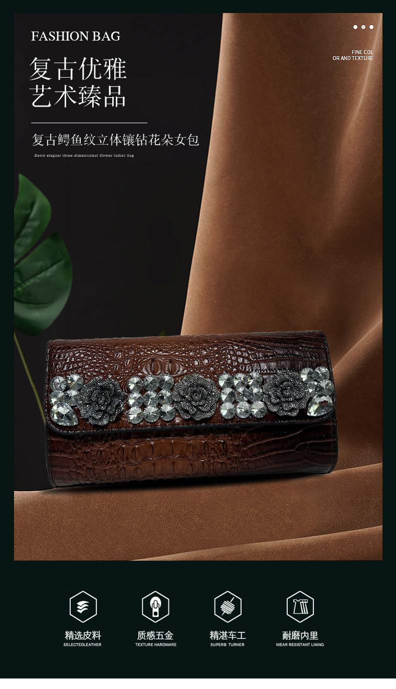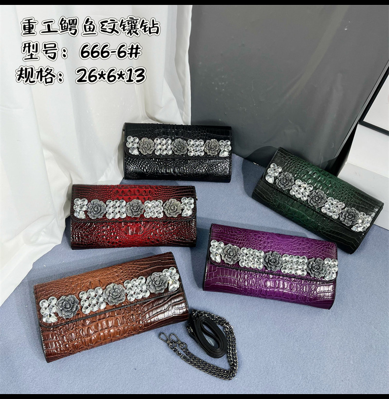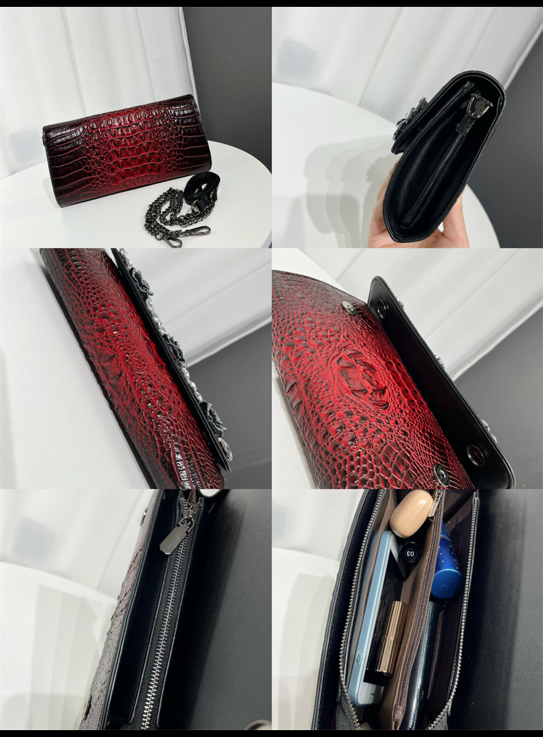材质: 手工耐磨面料 箱包潮流款式: 小方包 里料质地: 涤纶 流行元素: 车缝线,镶钻,压花 品牌: 其他 开盖方式: 包盖式 硬度: 中偏硬 颜色: 黑色,红色,紫色,绿色,棕色 风格: 欧美复古 货号: 666-6#鳄鱼镶钻 上市年份季节: 2025年春季 箱包形状: 横款方型 包内部结构: 拉链暗袋,手机袋,夹层拉链袋 有可授权的自有品牌: 否 有无夹层: 无 适用场景: 日常搭配 外袋种类: 内贴袋 重量: 0.665 kg/个