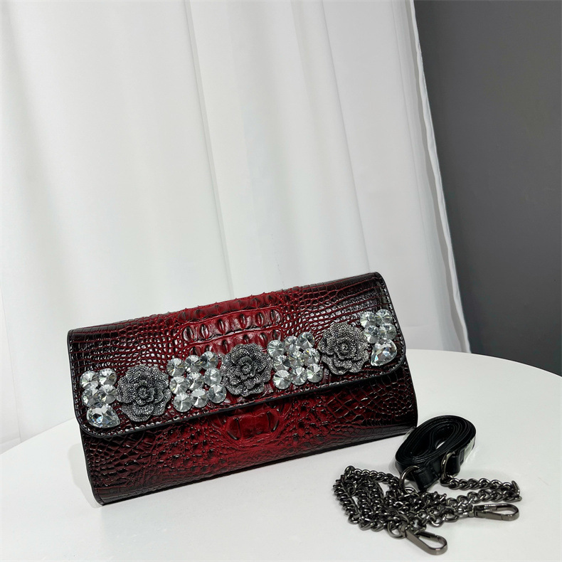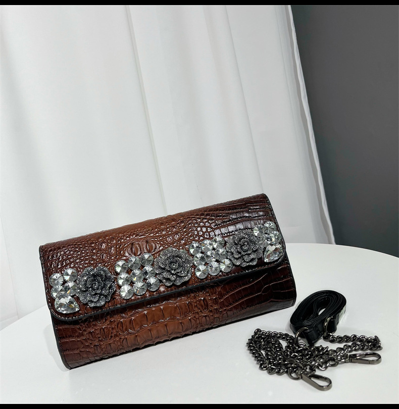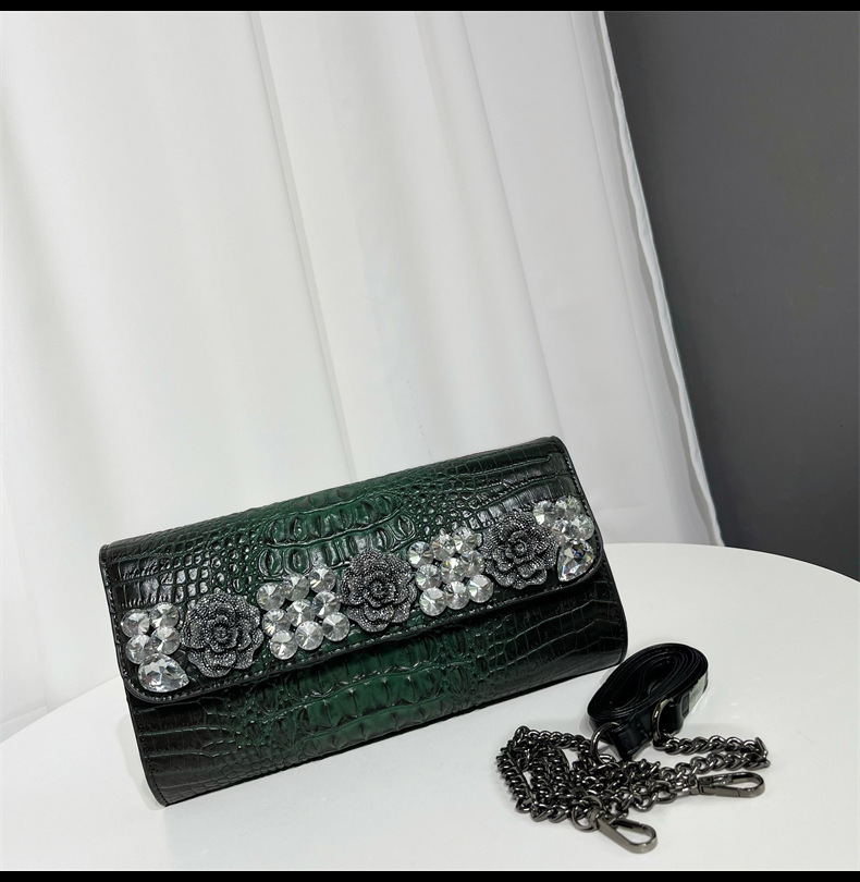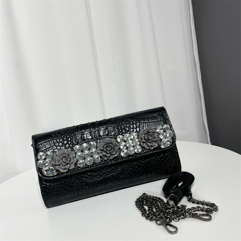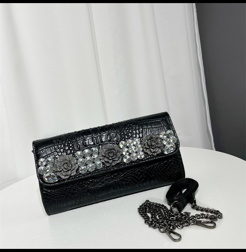 单肩包复古鳄鱼纹镶钻质感百搭斜挎包欧美风小众设计通勤包包女
