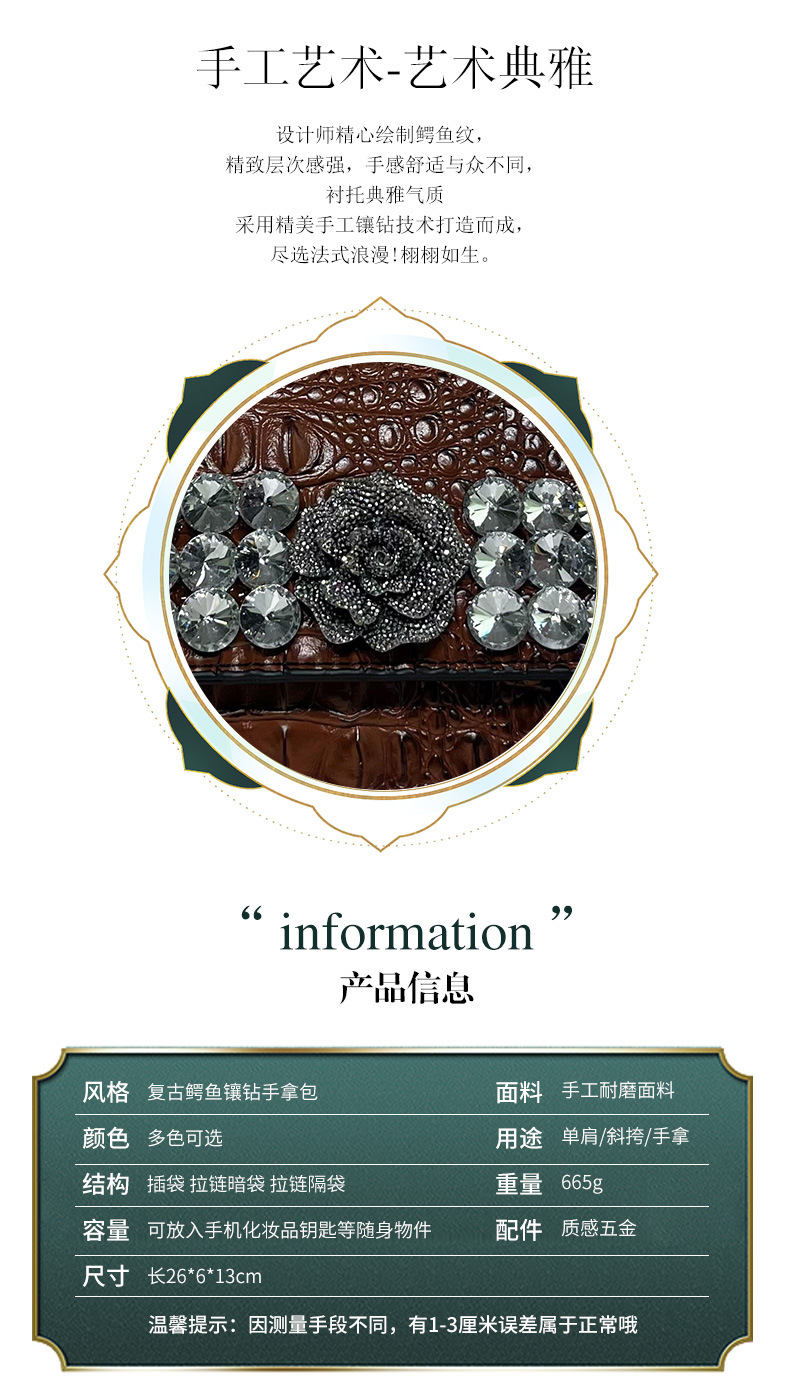 单肩包复古鳄鱼纹镶钻质感百搭斜挎包欧美风小众设计通勤包包女 投诉