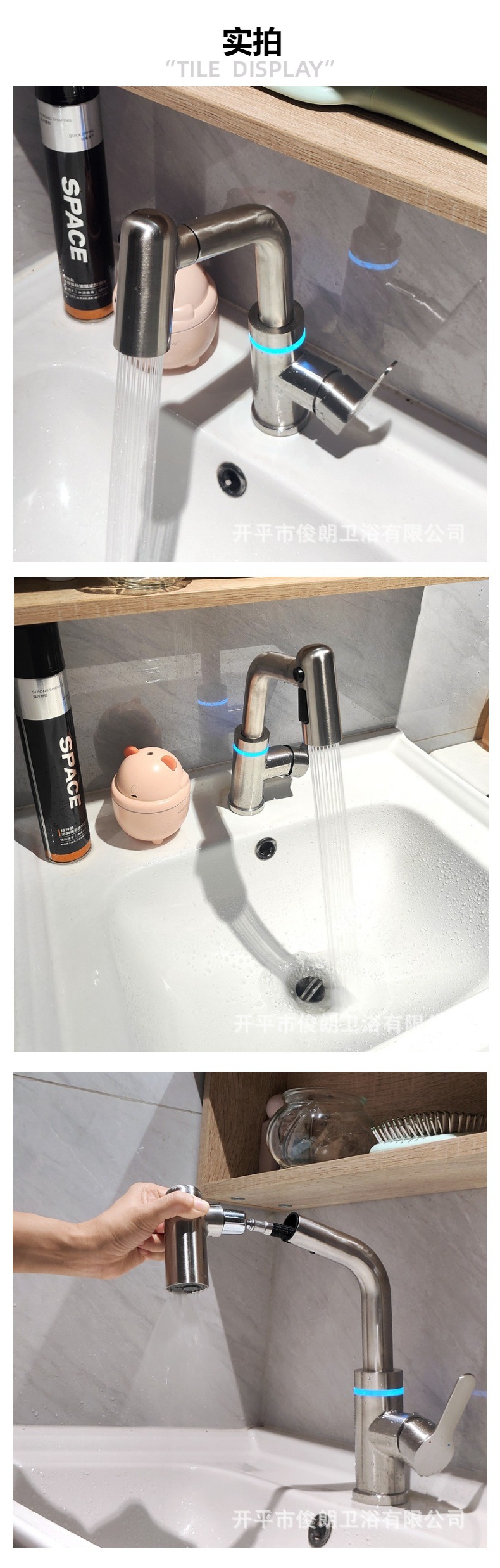 使用场景 无论是家庭浴室、酒店卫生间还是高端SPA会所,这款带氛围灯的水龙头都能完美融入各种环境,提升整体的装饰效果。