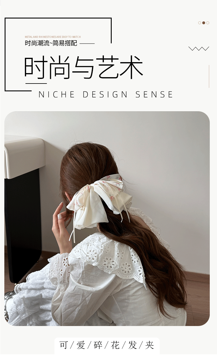 材质: 涤棉 品牌: 苏纯(服饰配件) 发夹分类: 抓夹 流行元素: 蝴蝶结 风格: 小众风 处理工艺: 手工 镶嵌材质: 非镶嵌 货号: FJ2456 样式: 发夹 产地: 义乌 重量: 0.03 kg/个