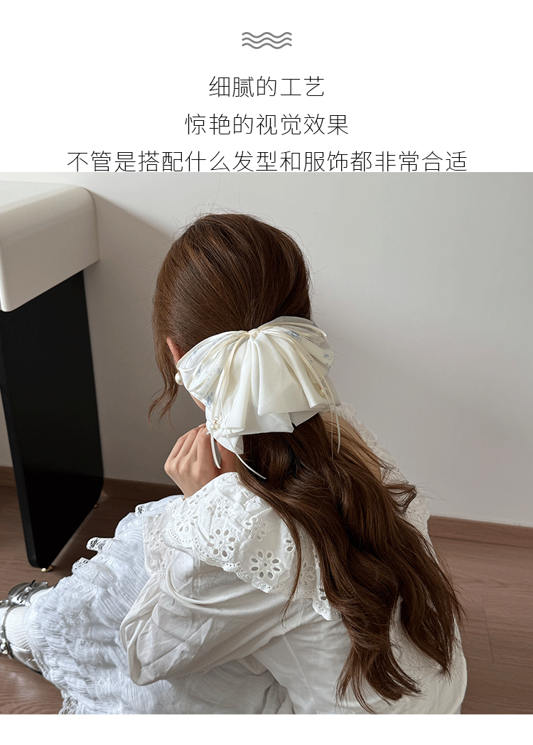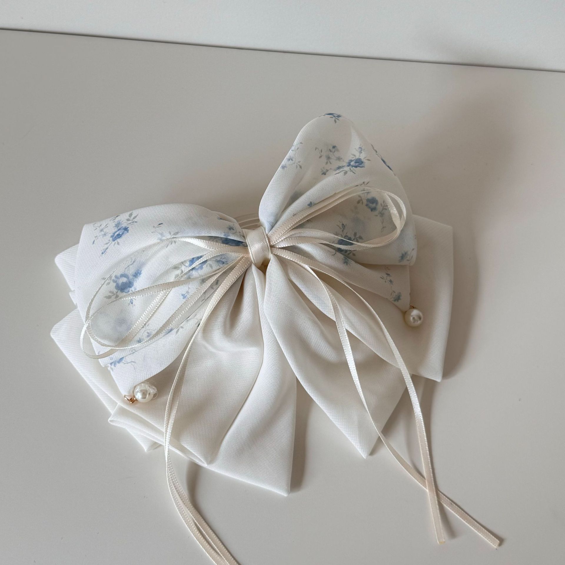 小清新蓝色碎花蝴蝶结抓夹女新款飘带马尾夹后脑勺洋气盘发鲨鱼夹 English | 投诉