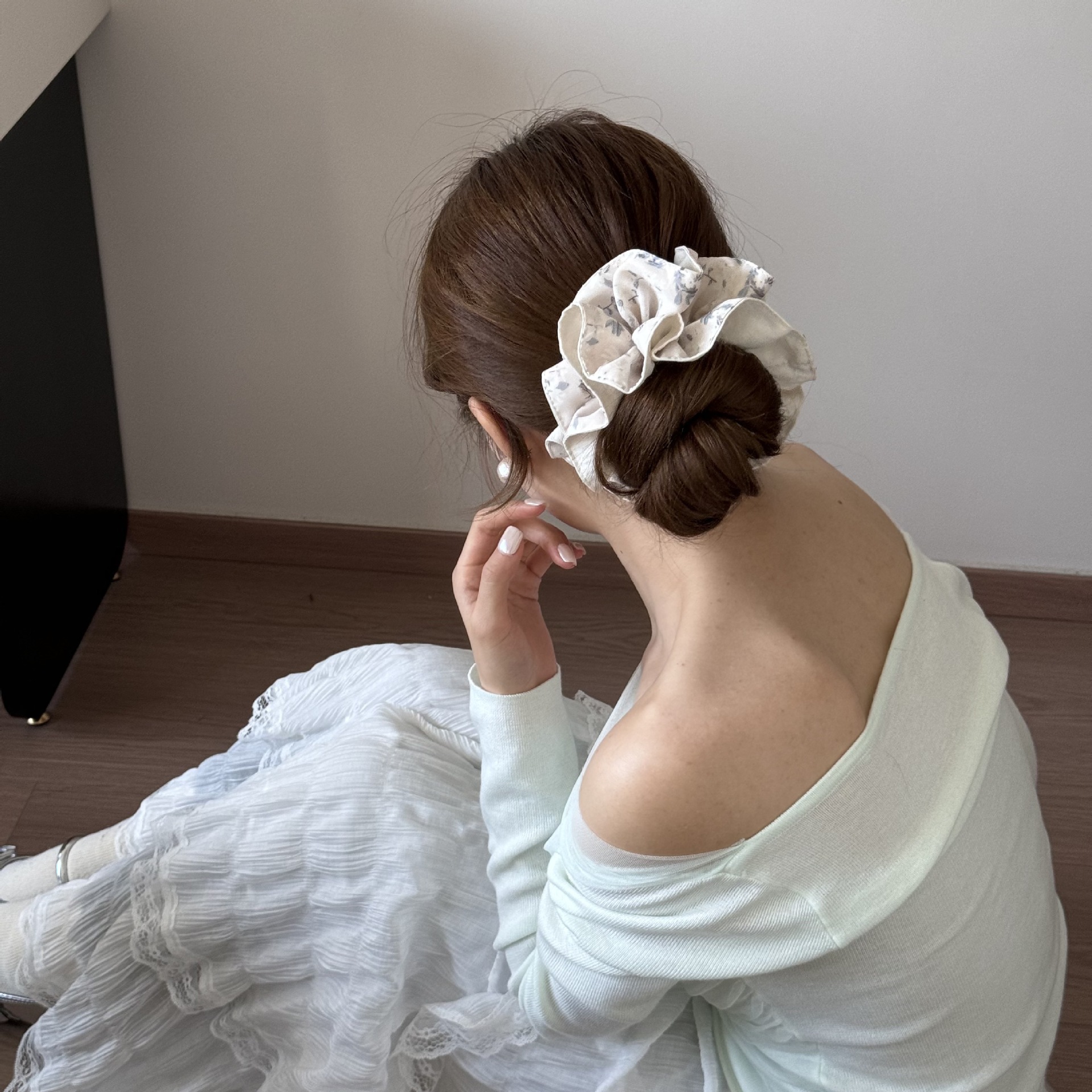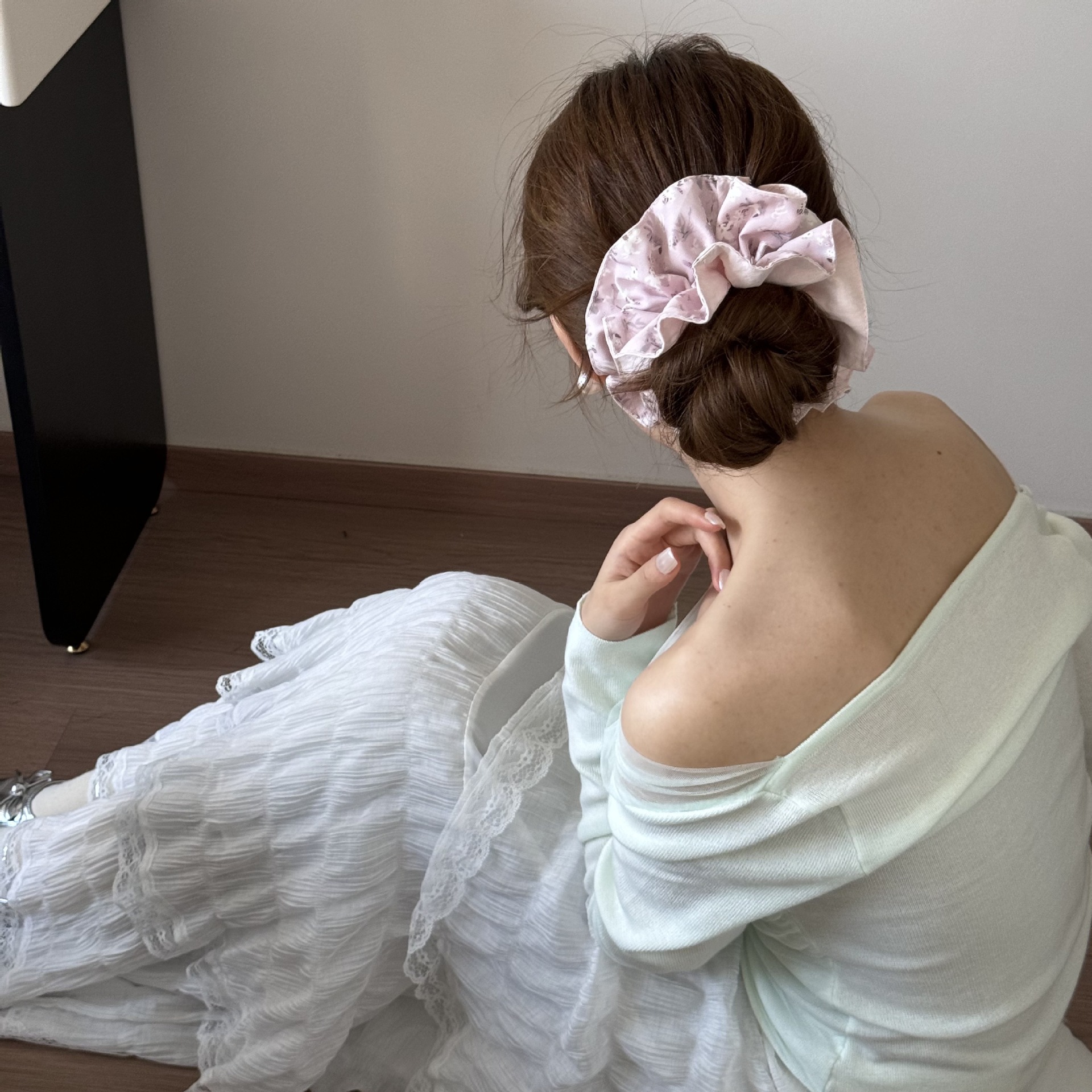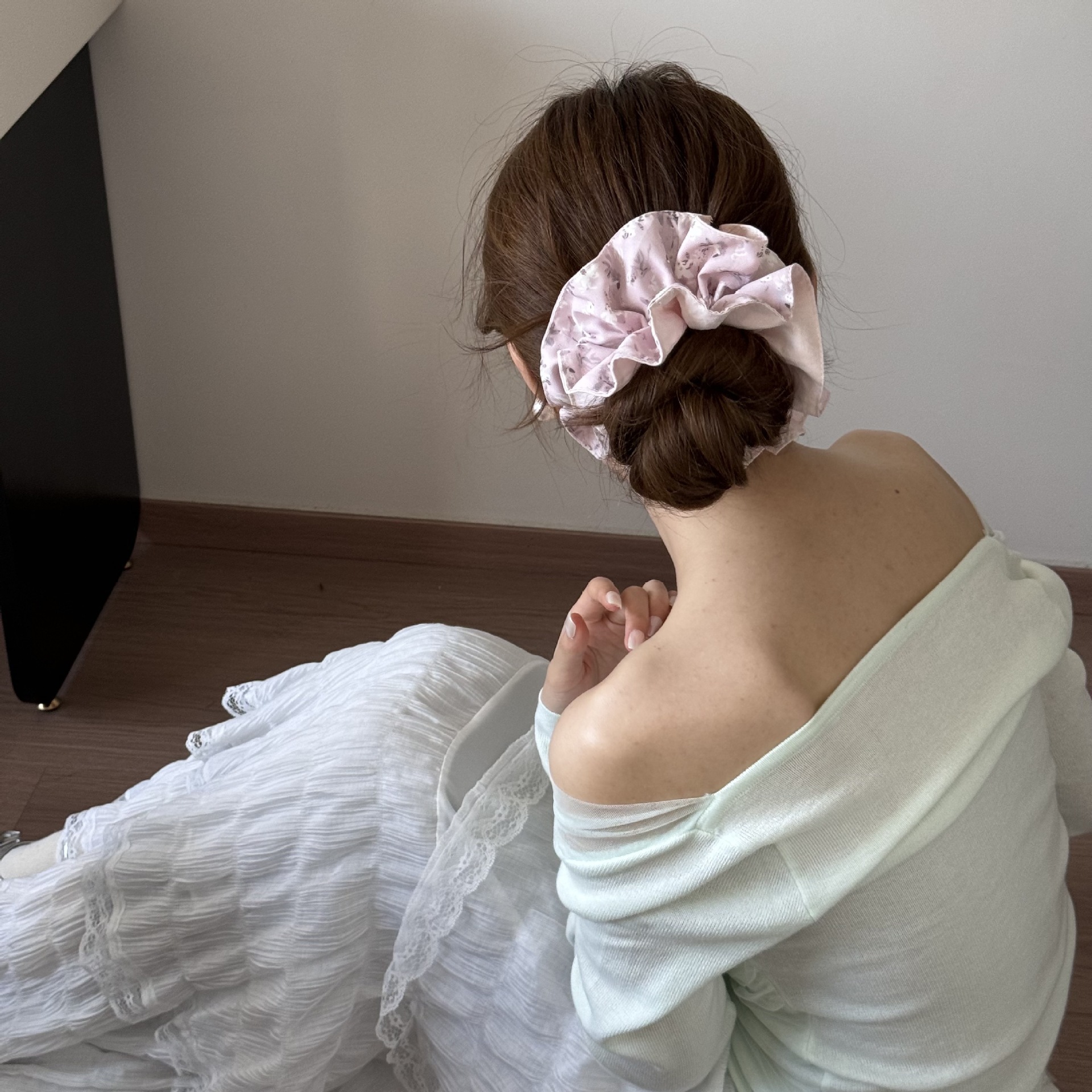 甜美可爱粉色碎花发圈小众设计感气质韩版头饰发饰马尾个性时尚女 English | 投诉