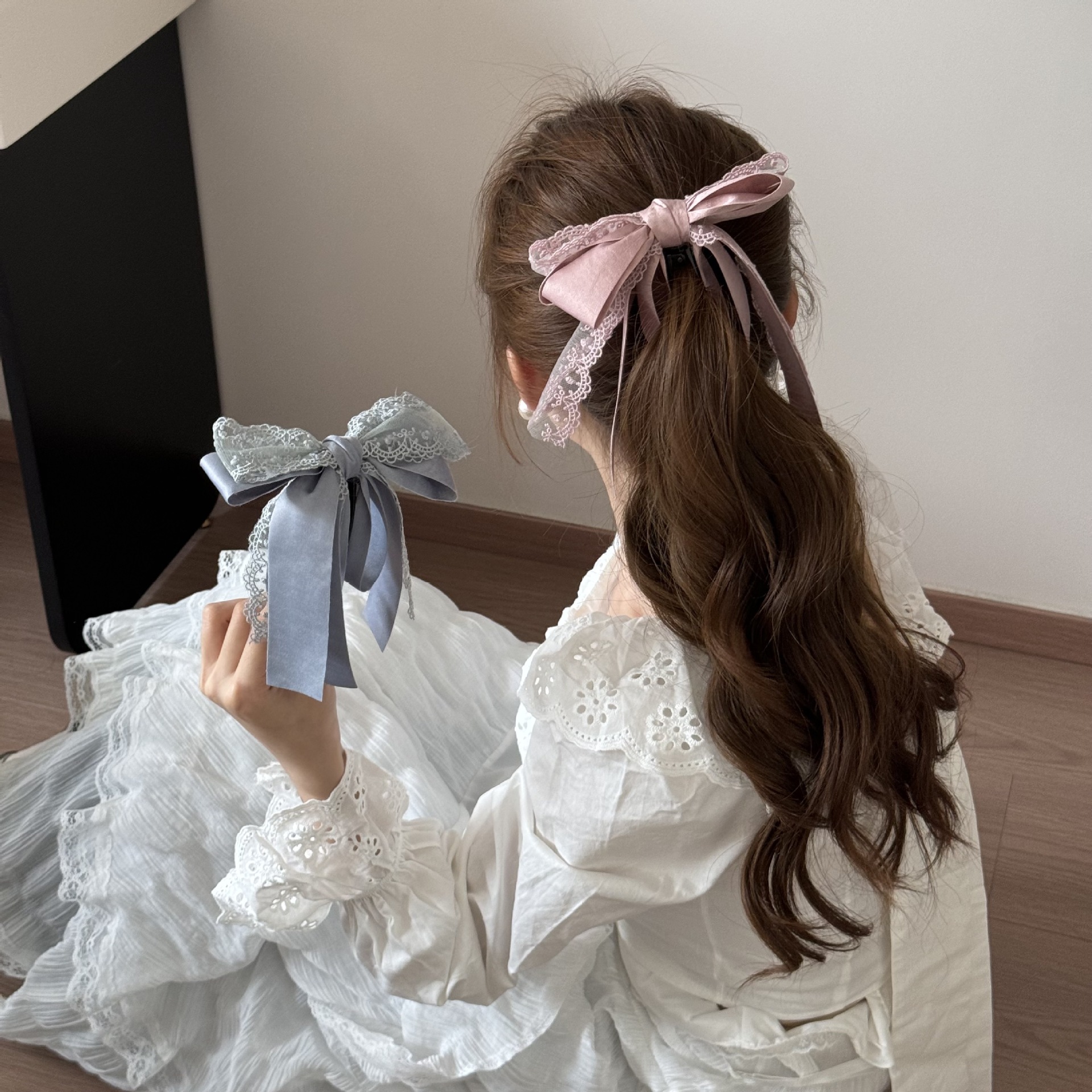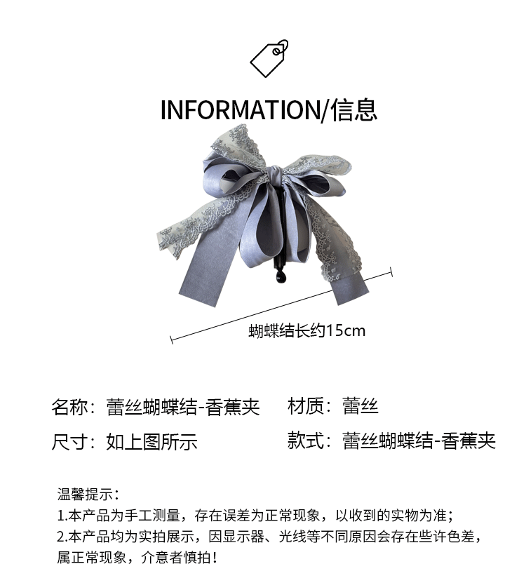 灰蓝蕾丝蝴蝶结-香蕉夹 ¥0 99888个可售