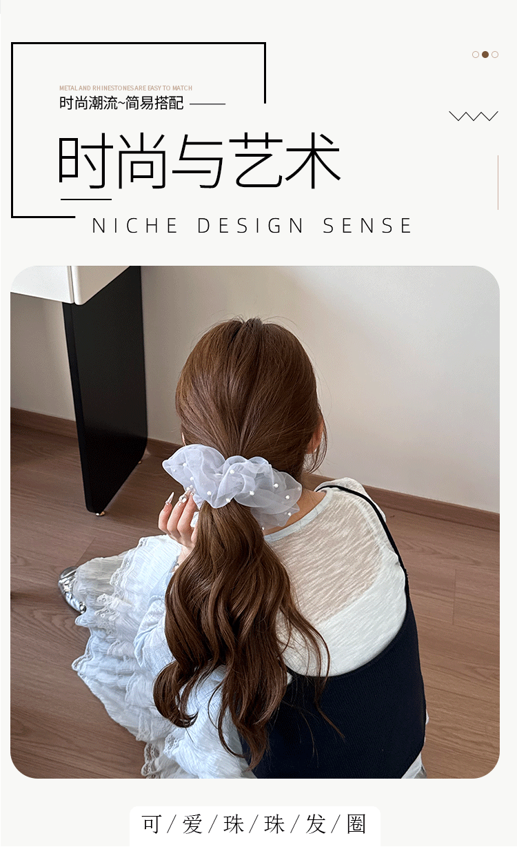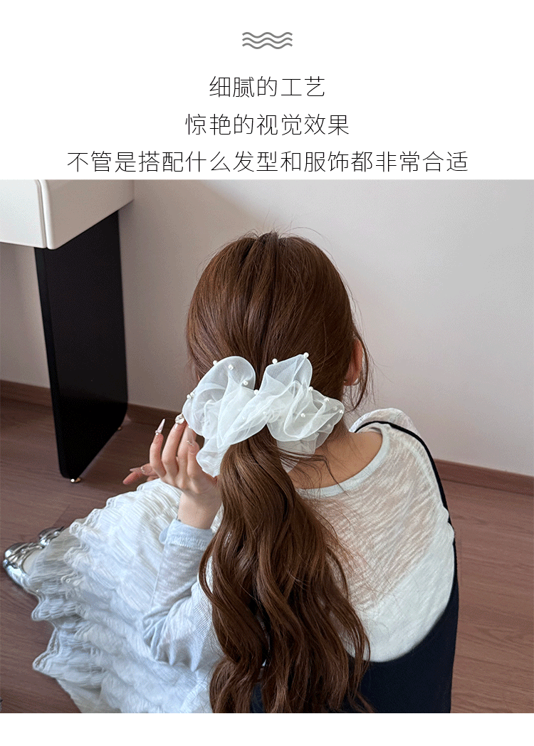 新款蕾丝珍珠裙摆花边发圈女甜美网纱蝴蝶结发绳高级感百搭发饰品 English | 投诉