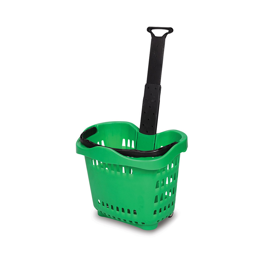 可升降把手中型塑料购物拉杆篮 2轮超市购物筐 手拉购物框