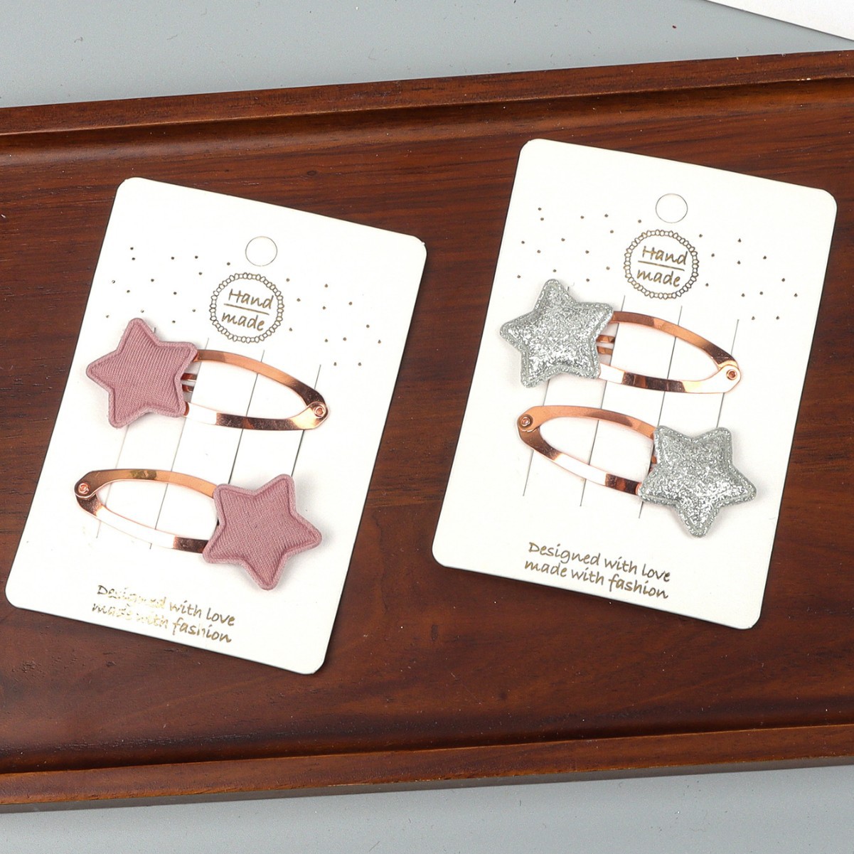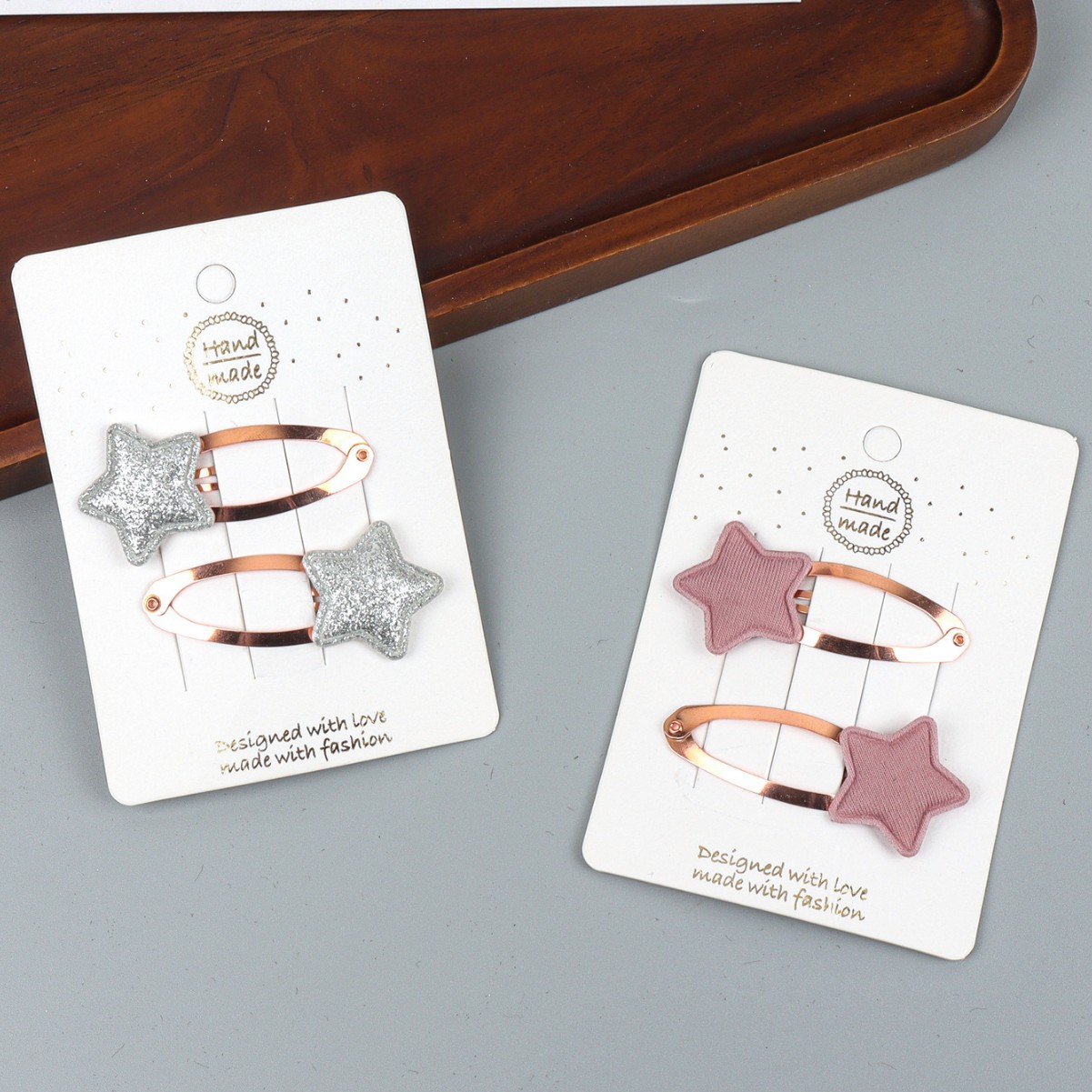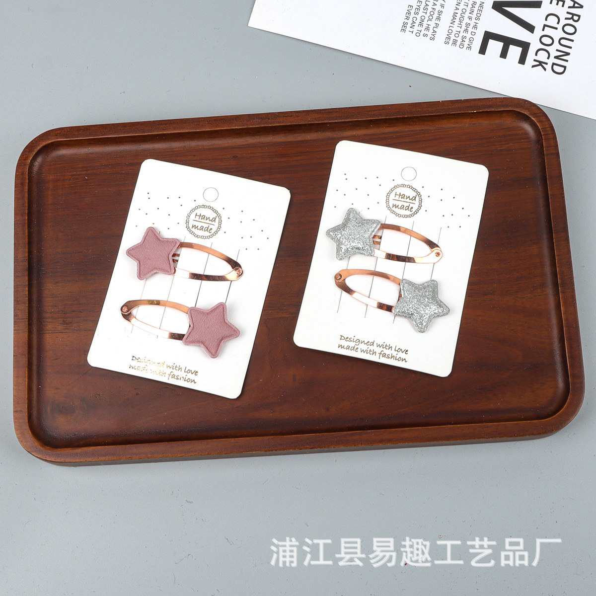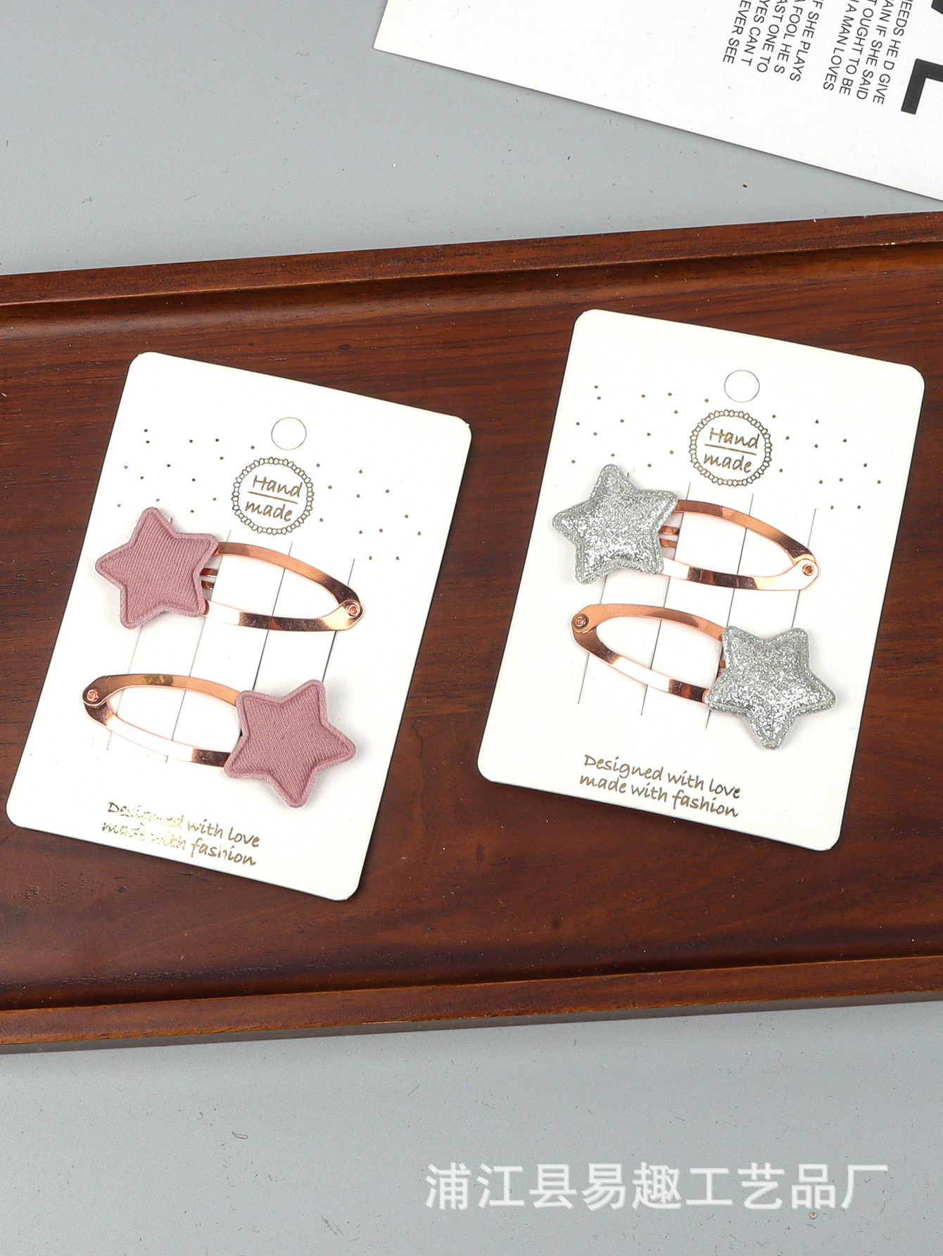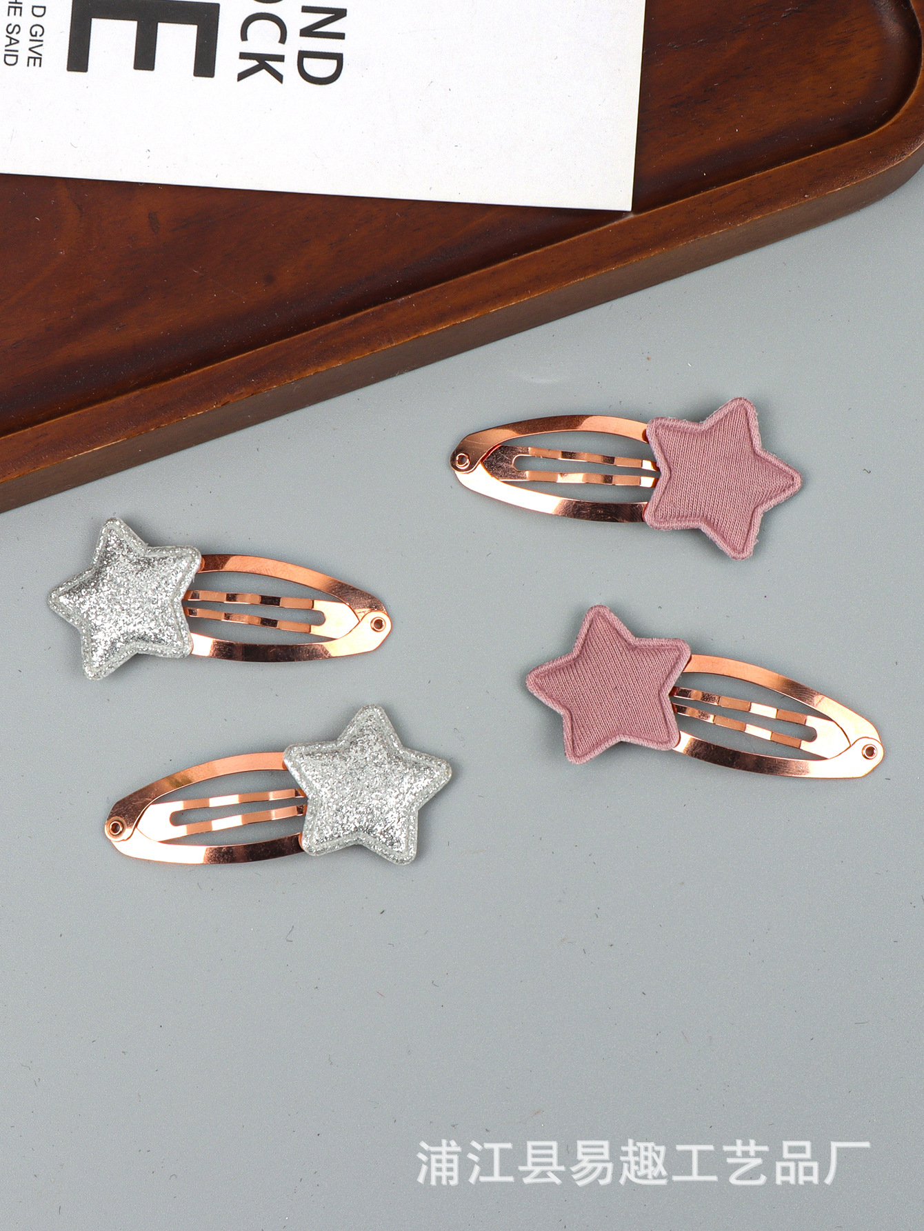 材质: 布料 品牌: 易趣 发夹分类: BB夹 流行元素: 五角星 风格: 小众风 处理工艺: 手工 镶嵌材质: 非镶嵌 货号: CP1595 样式: 儿童 产地: 义乌 主要下游平台: 淘宝,京东,ebay,亚马逊,wish, 颜色: 粉色(单个,不含卡片),银色(单个,不含 有可授权的自有品牌: 否 是否跨境出口专供货源: 是 上市年份/季节: 2026年春季 风格分类: 清新甜美 主要销售地区: 非洲,欧洲,南美,东南亚,北美,东北亚, 适用人群: 儿童 流行元素分类: 形状/图案 重量: 0.01 kg/个