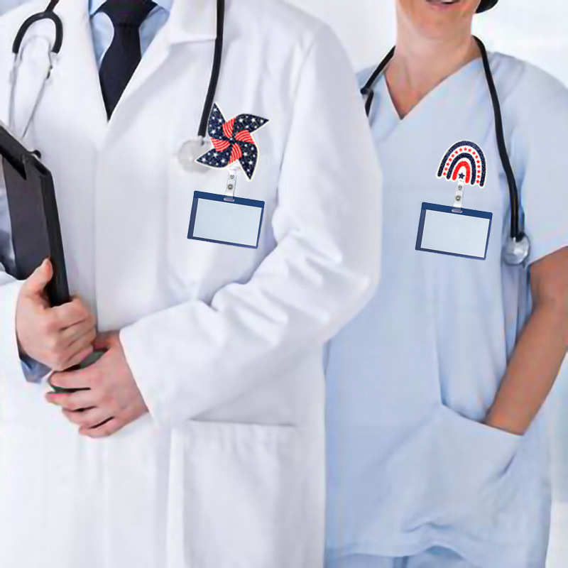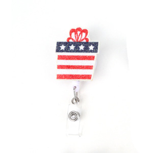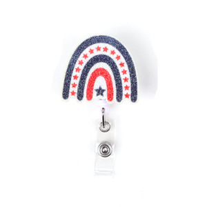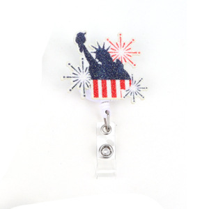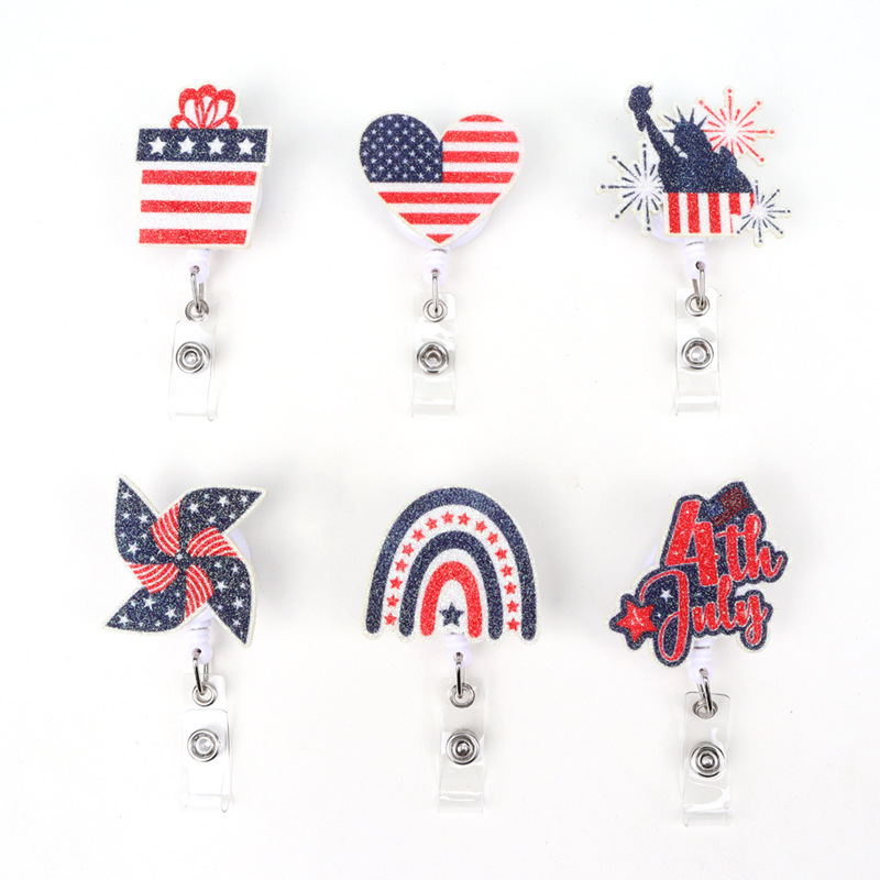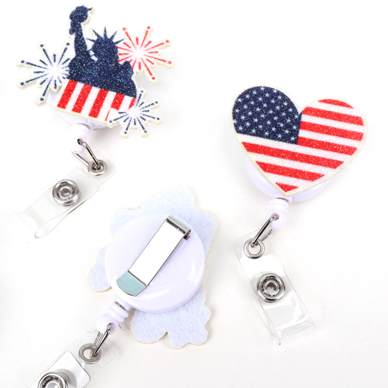 跨境独立日金粉印刷爱心彩虹自由女神风车易拉扣可伸缩礼物