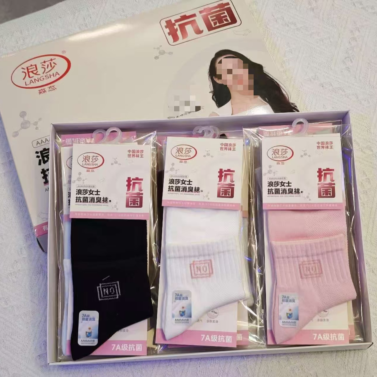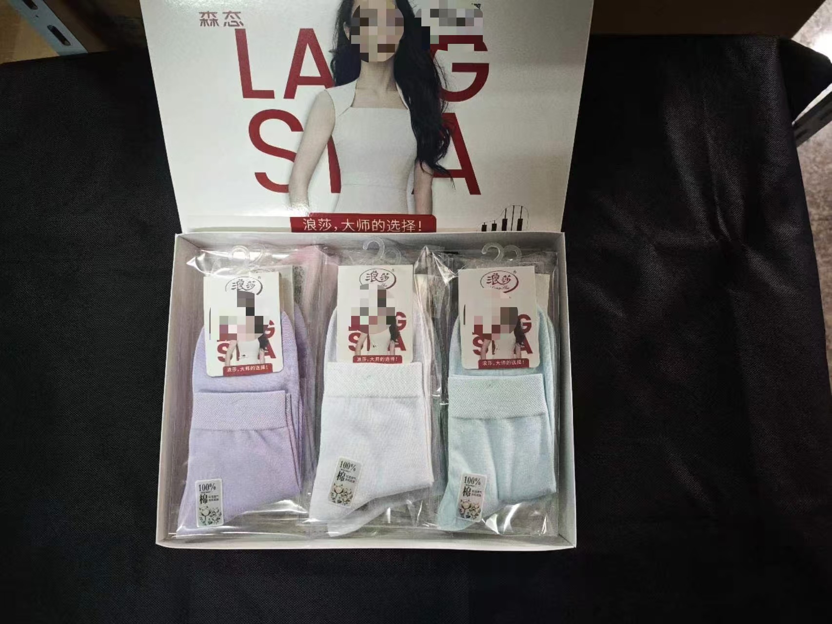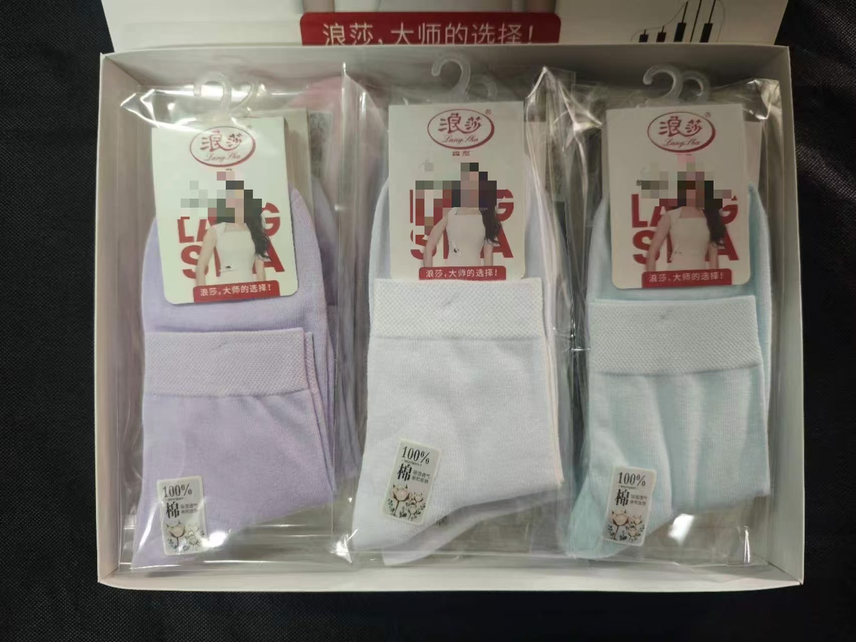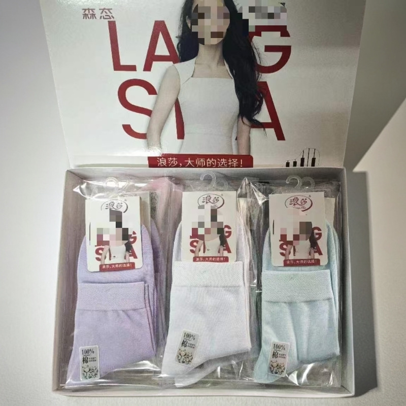 正品浪莎百分百棉净色商务袜