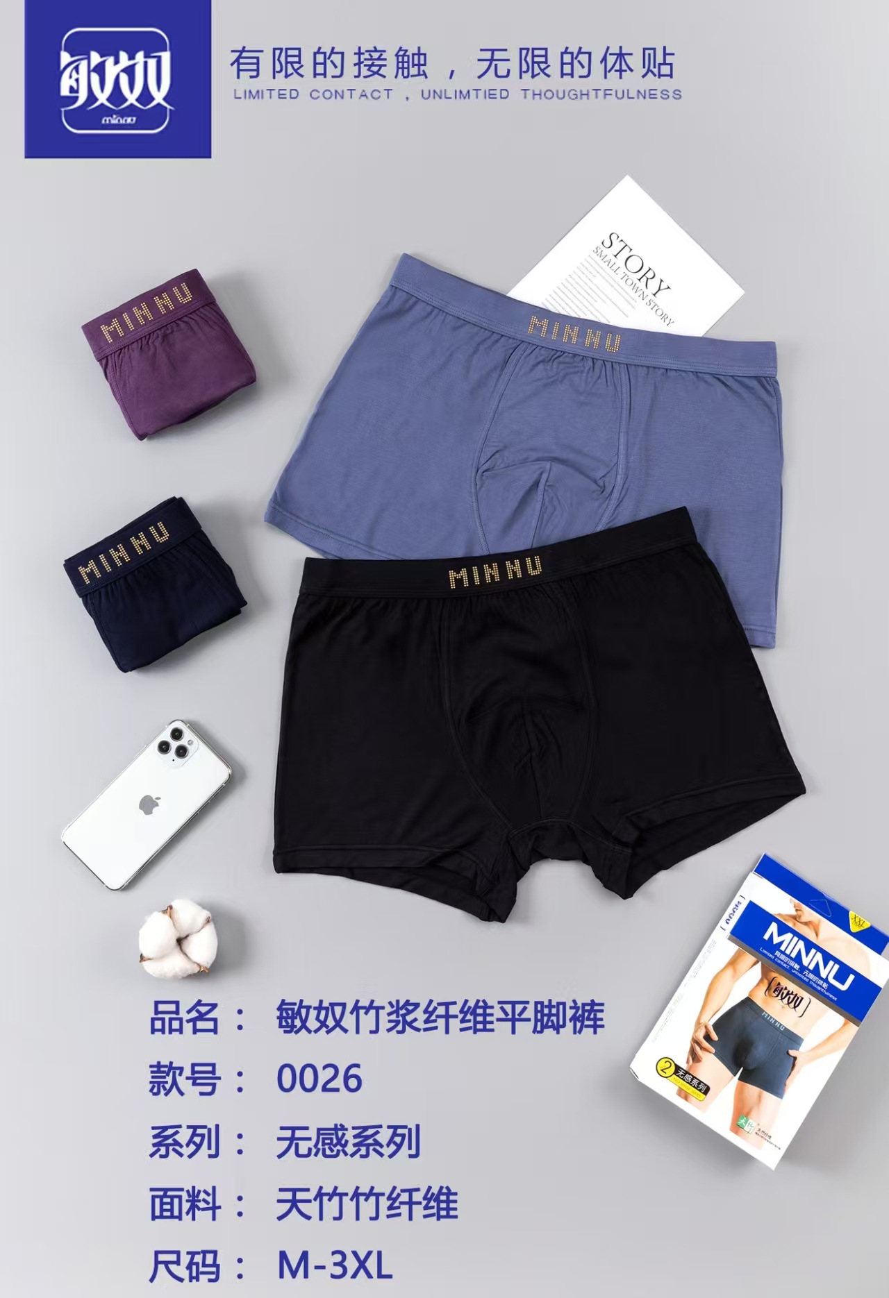 敏奴高品质男士盒装内裤,亲肤透气舒适高弹力。夏天爆款!