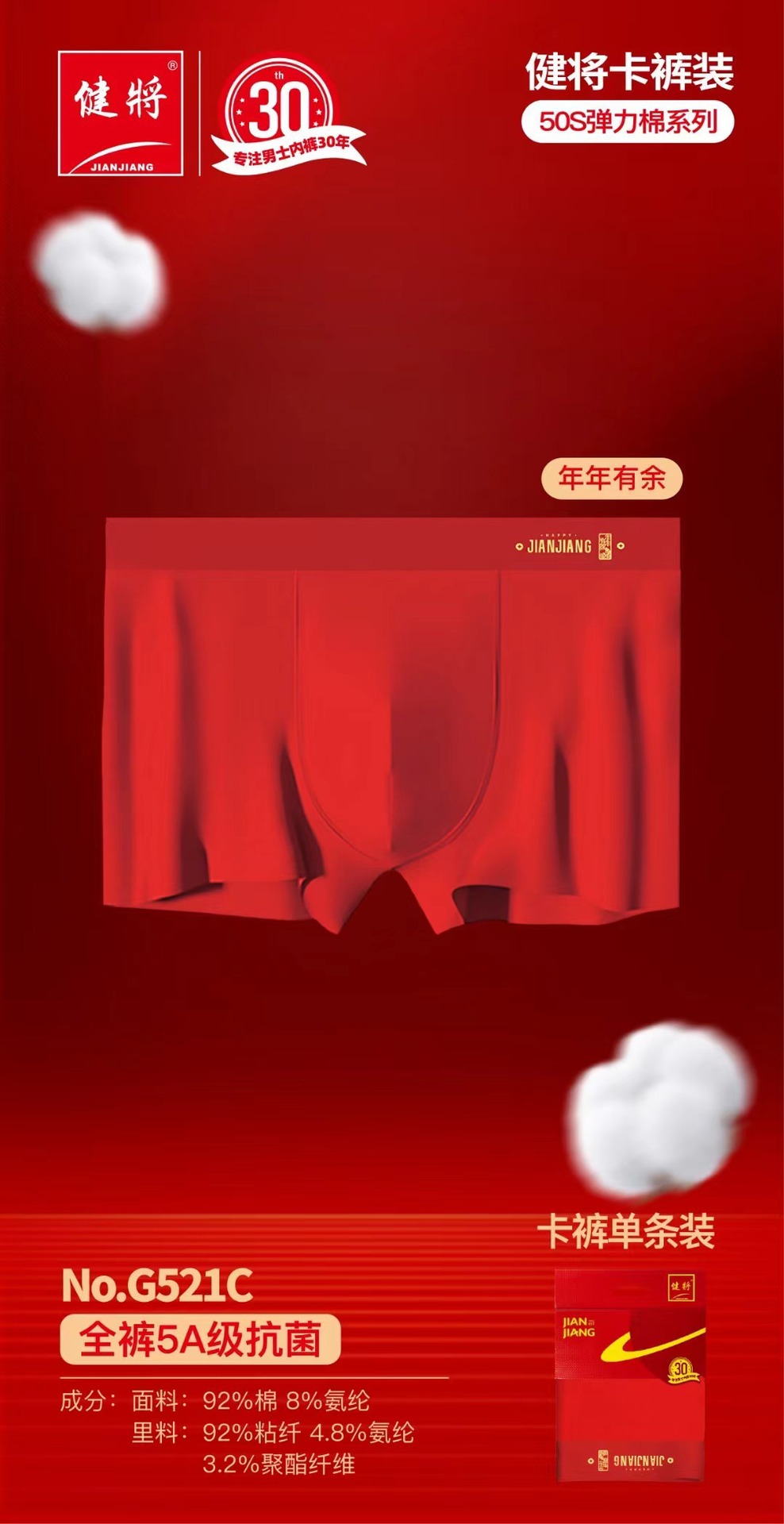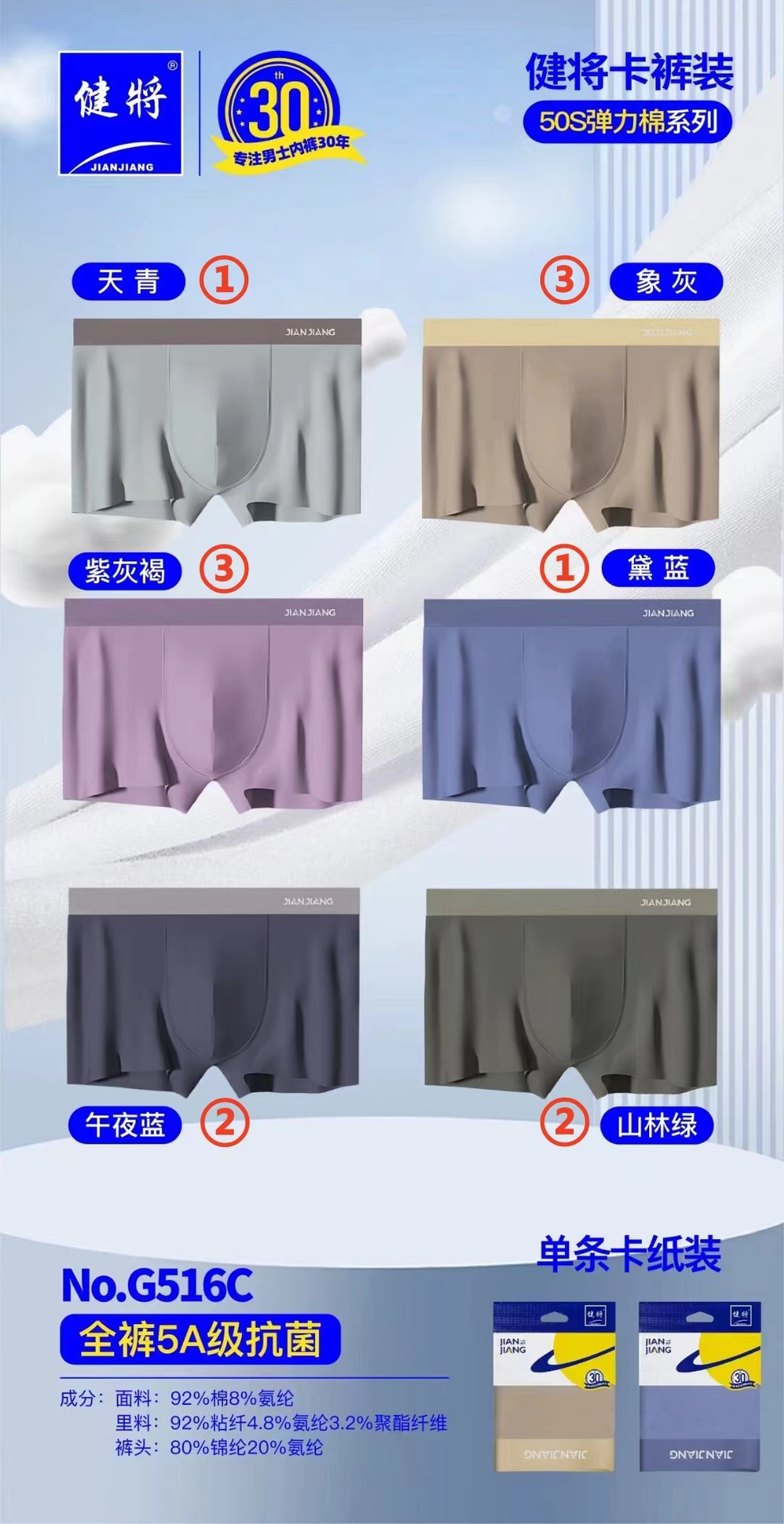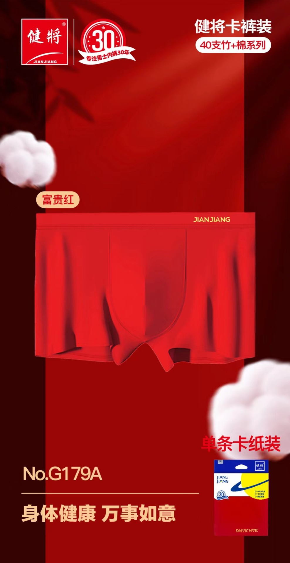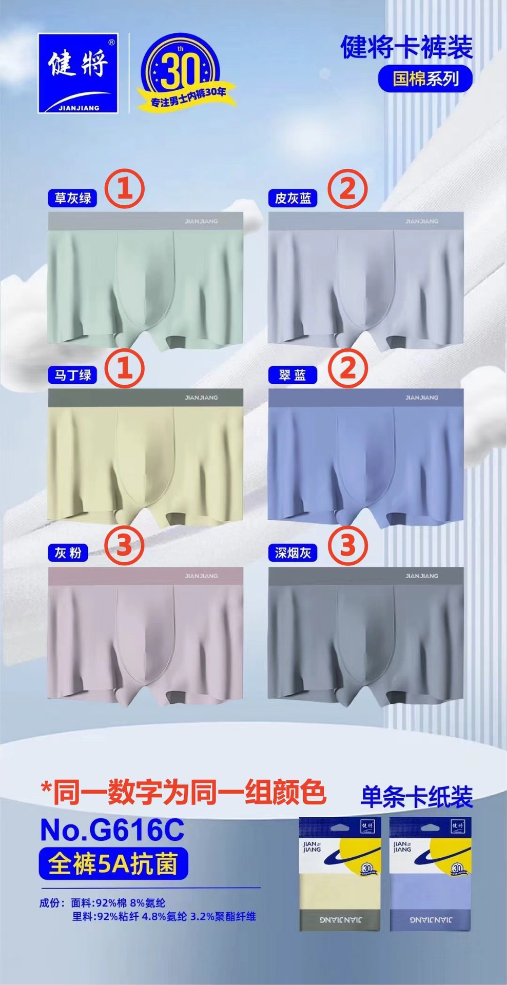 健将单条挂卡内裤 20条一组