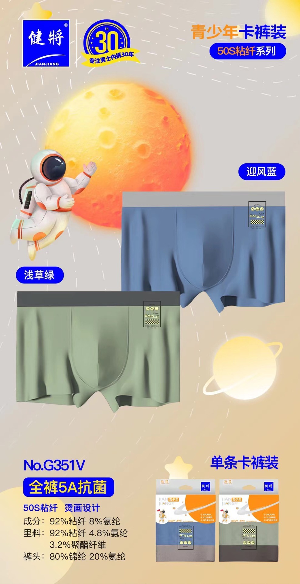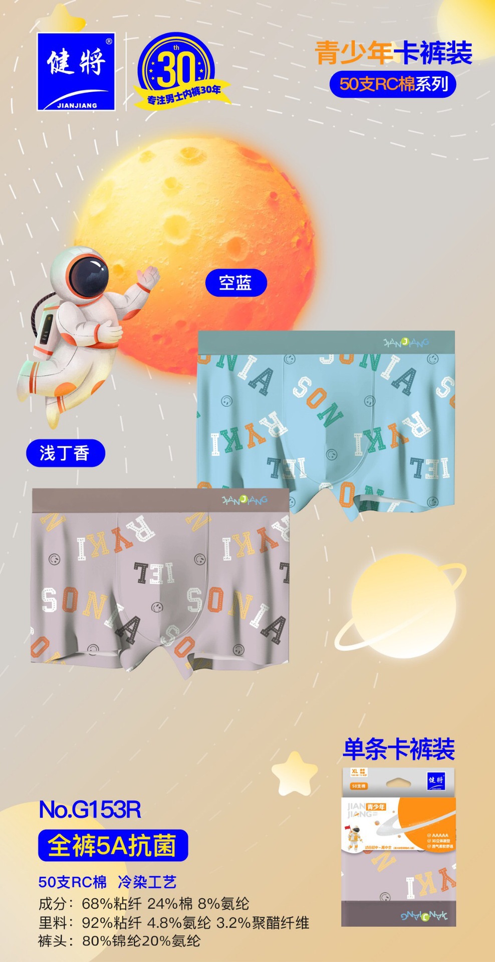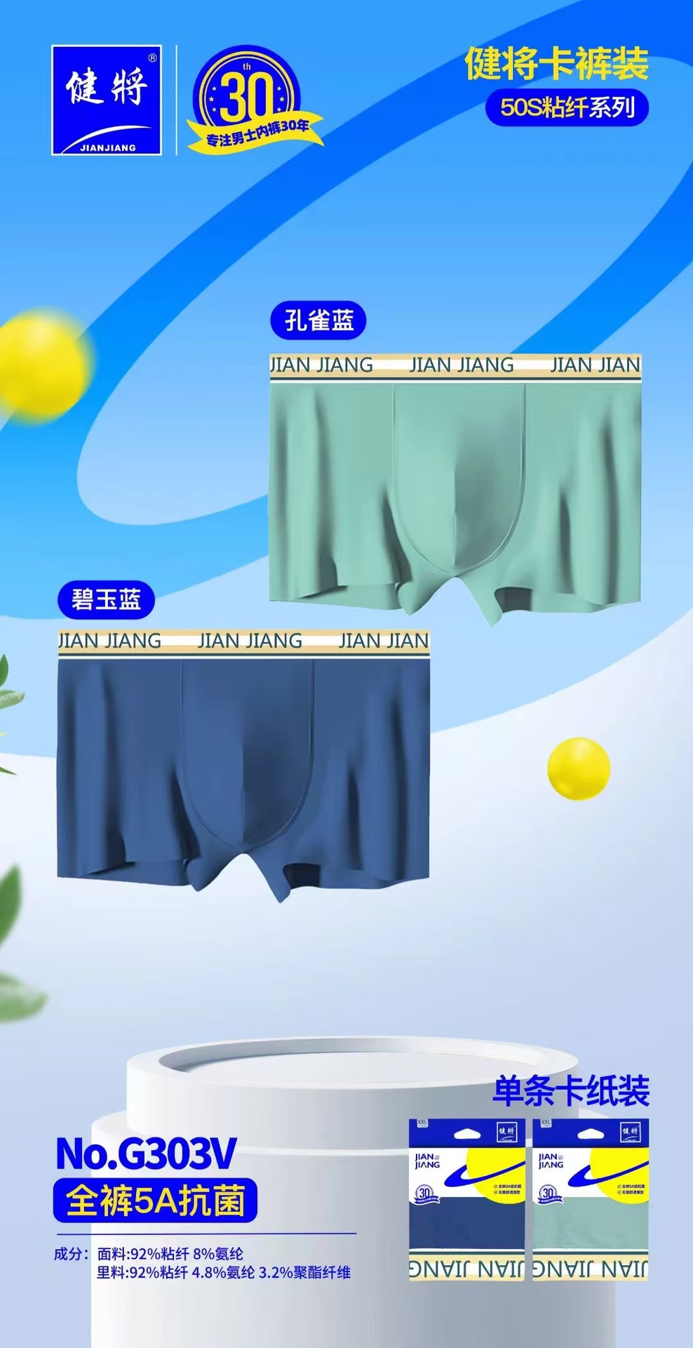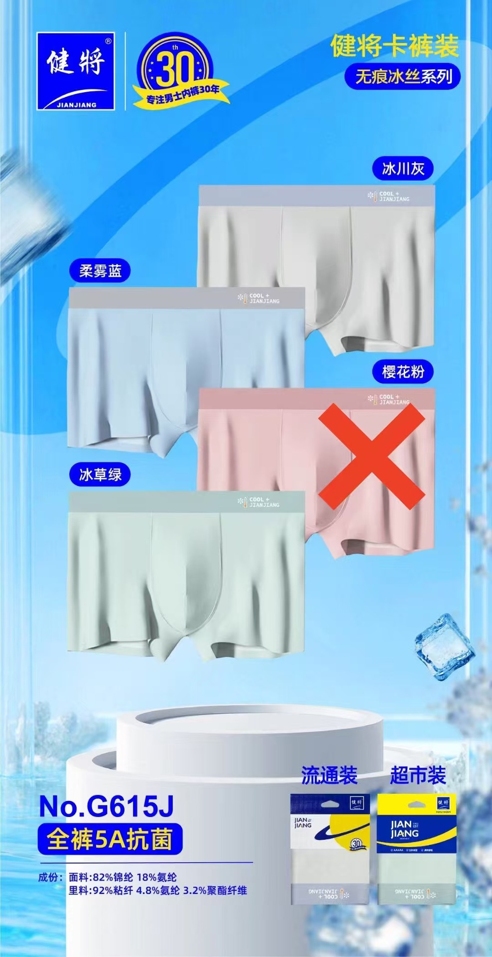 健将单条挂卡内裤 20条一组