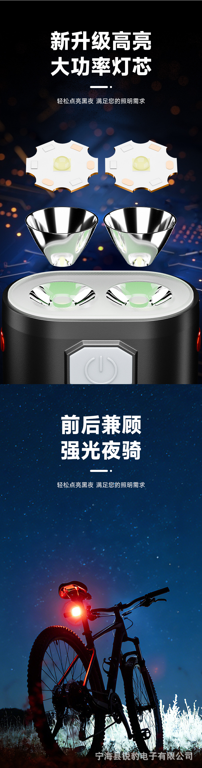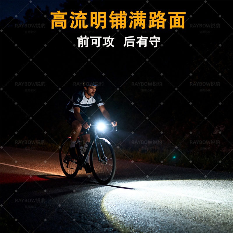 白激光自行车前灯尾灯单车灯强光夜骑手电筒超亮灯防雨骑行装备