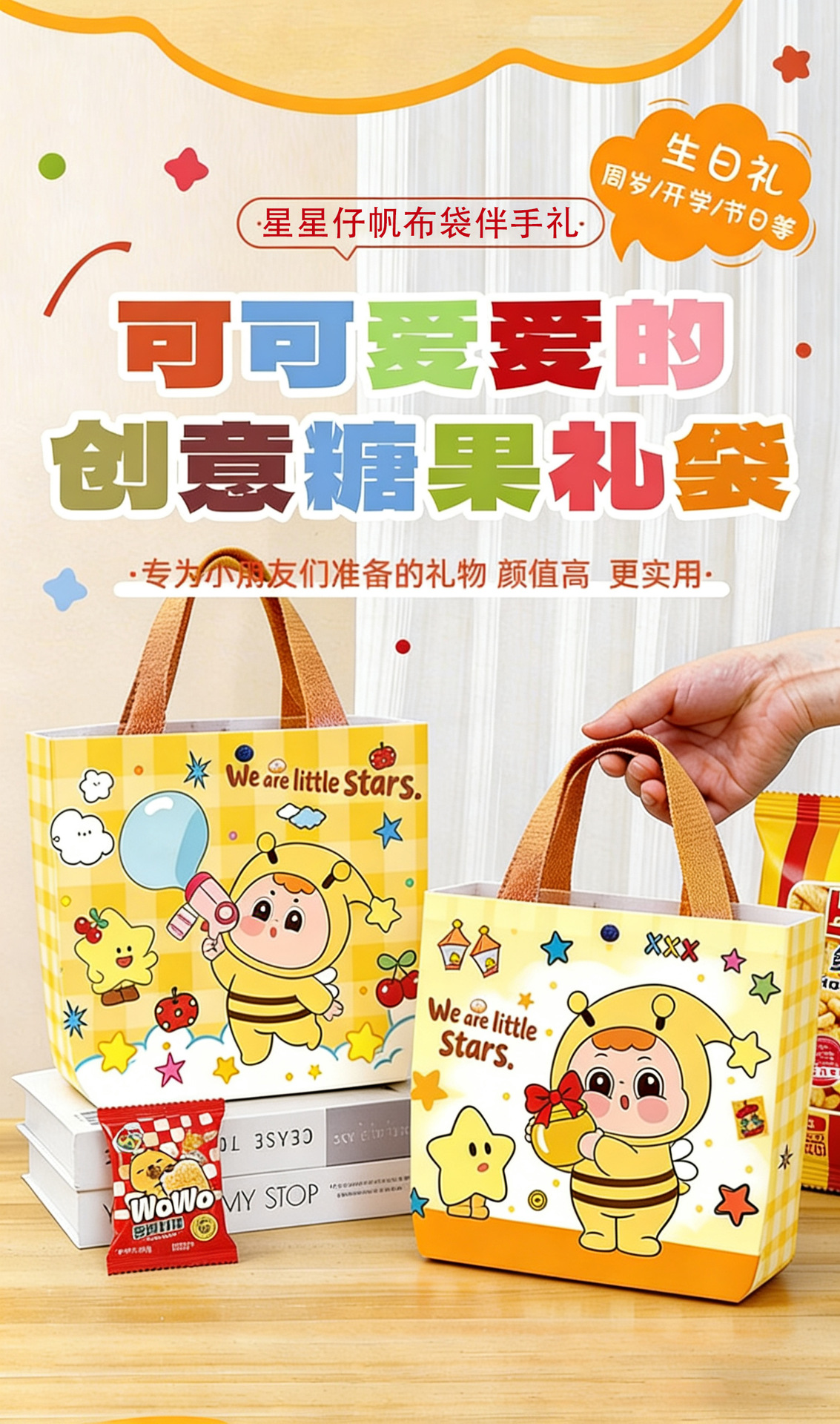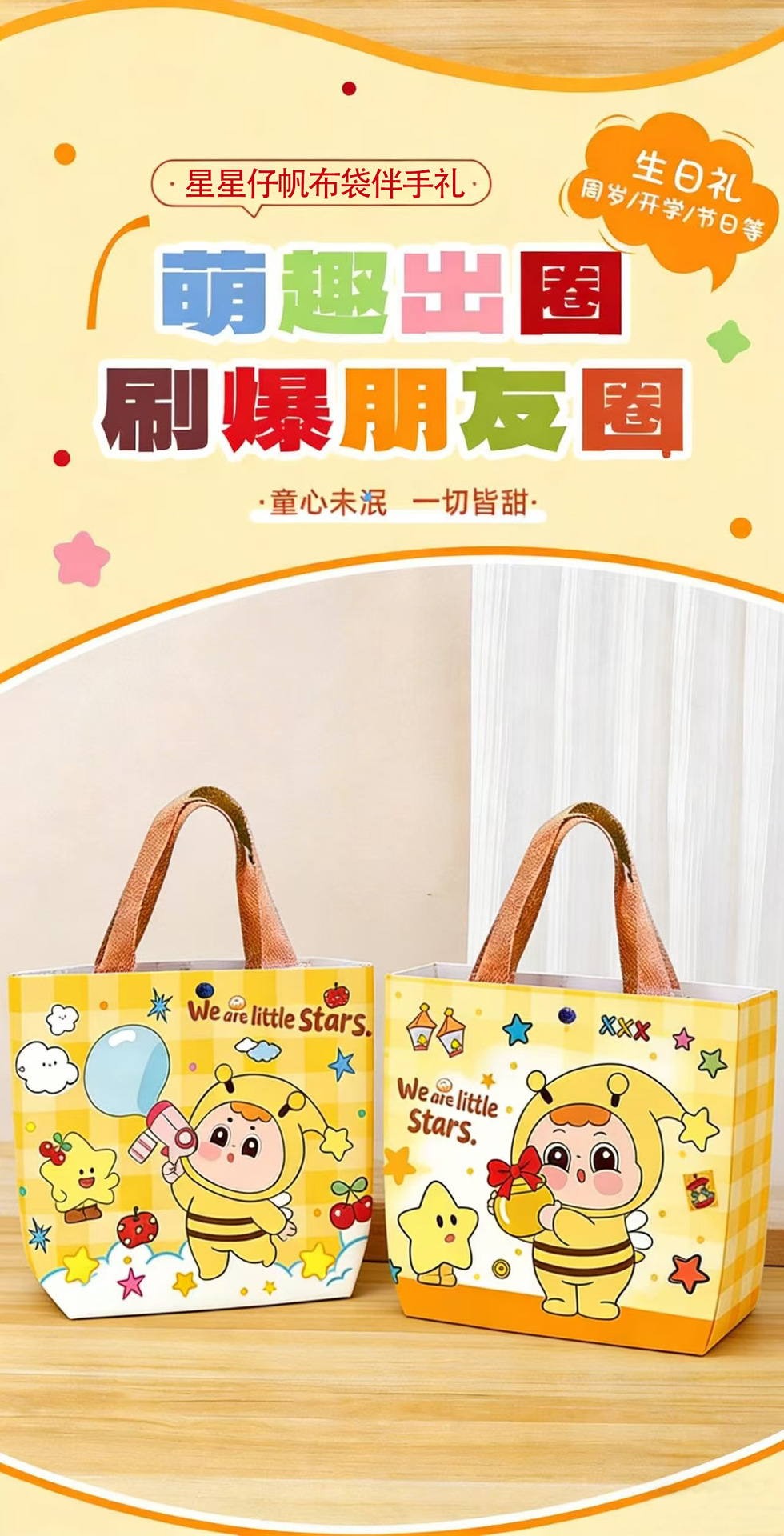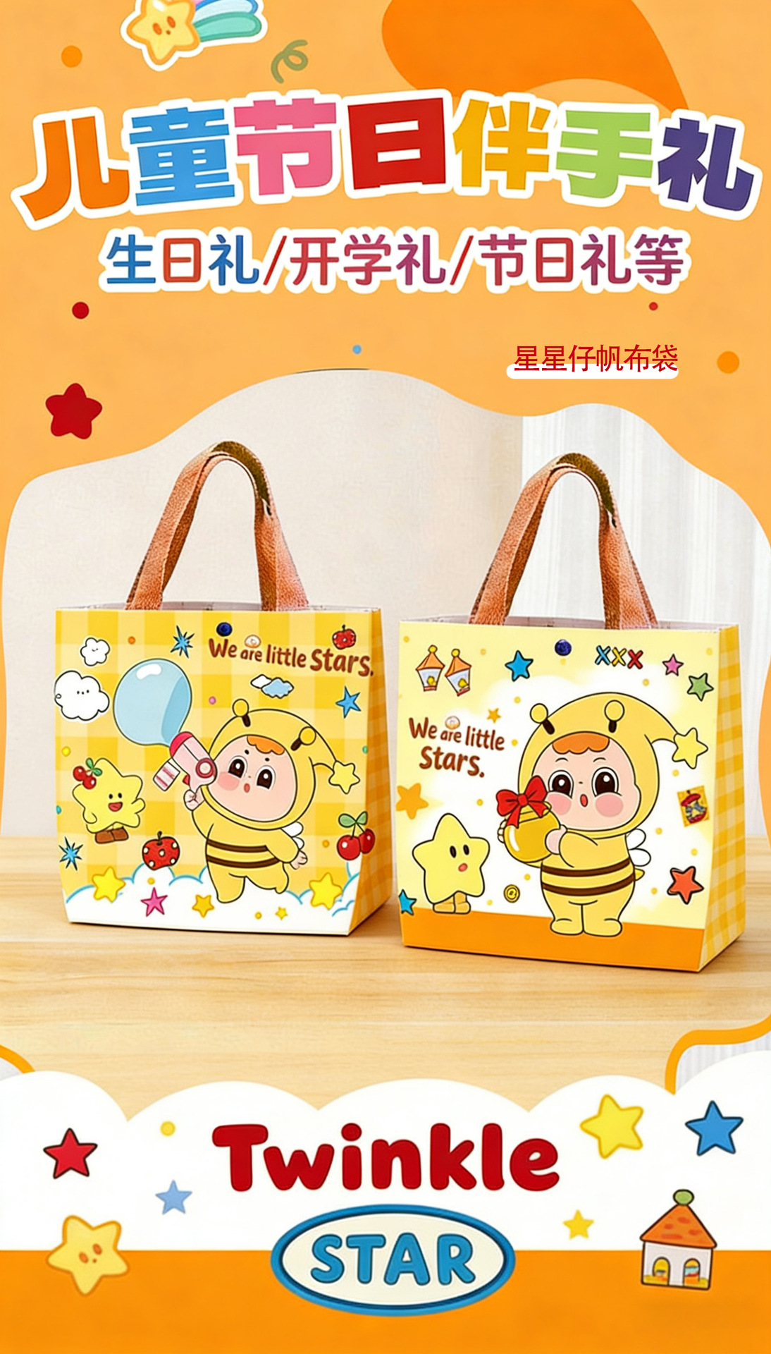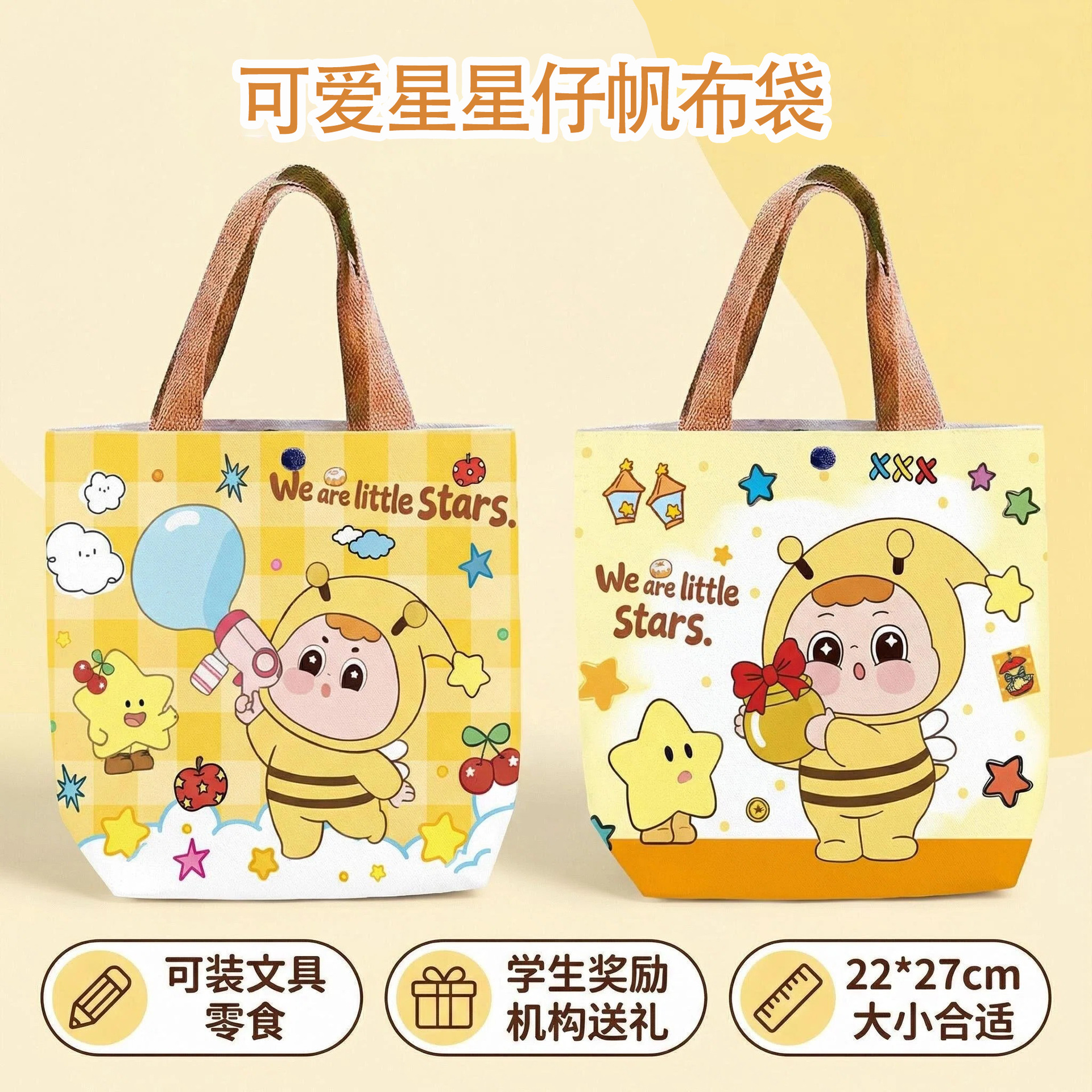 卡通星星仔帆布袋伴手礼包装袋零食购物帆布包学生可爱书包手提袋 投诉