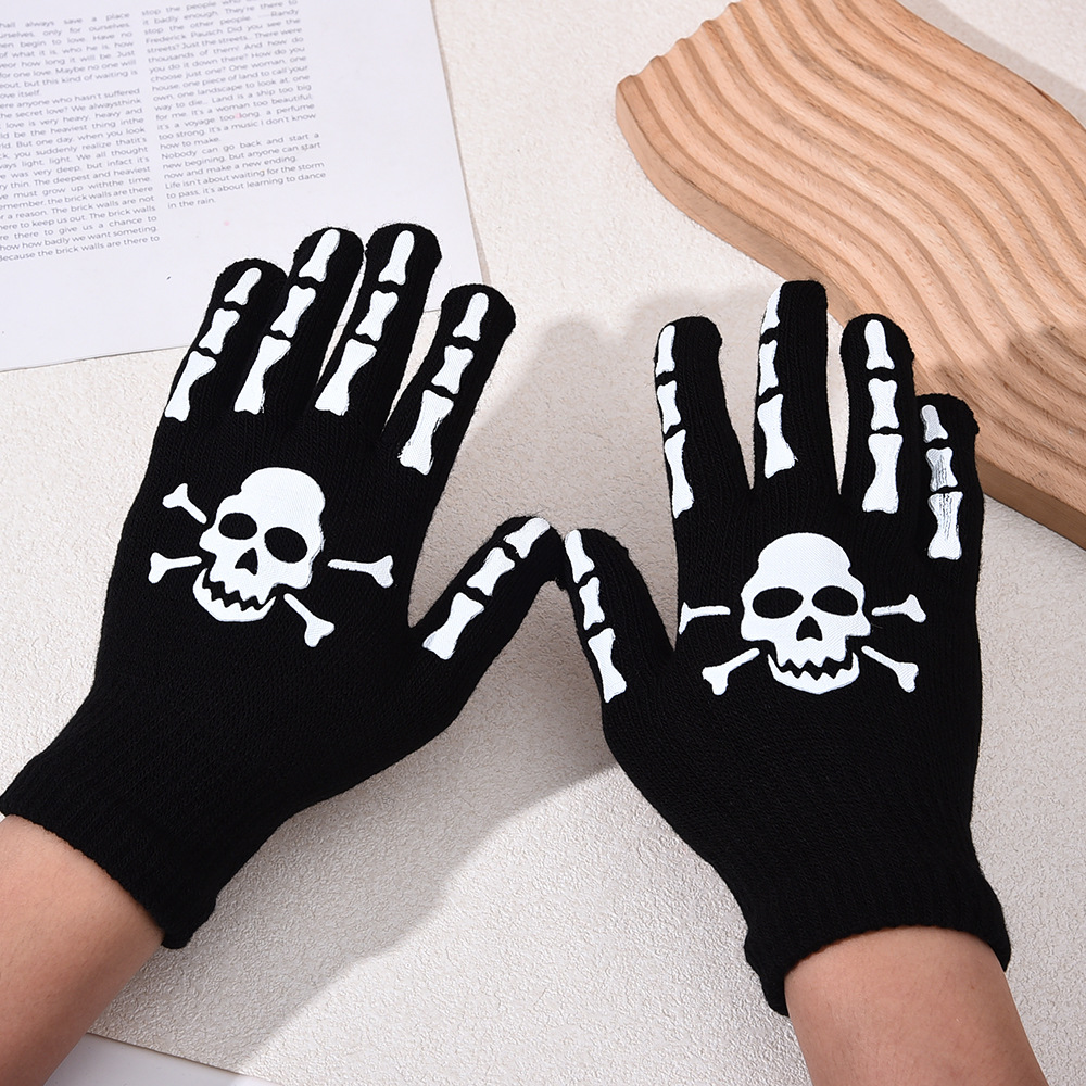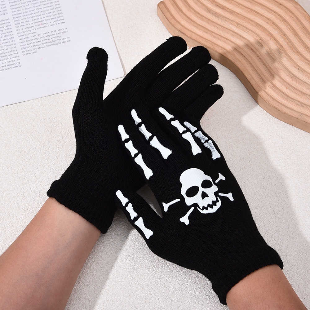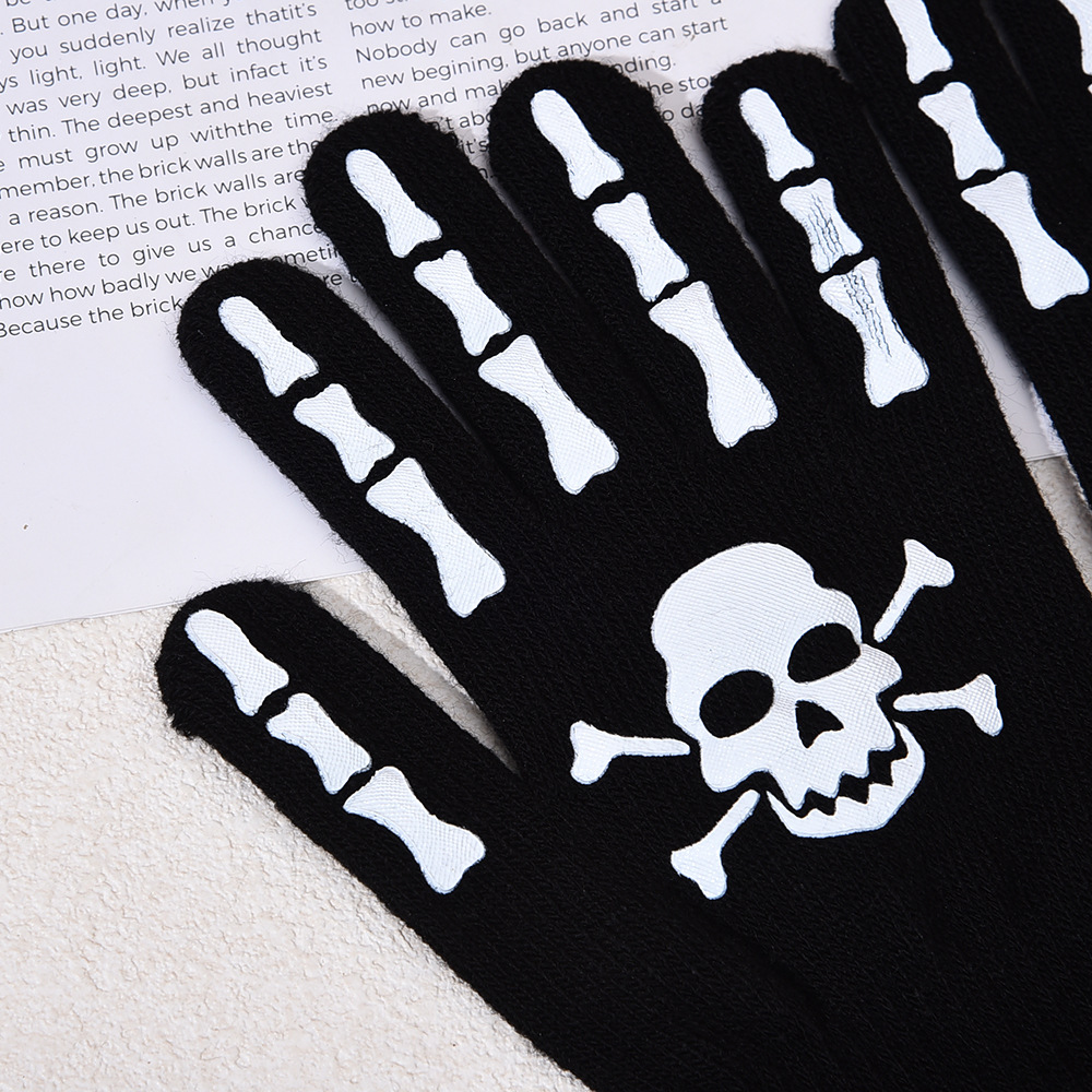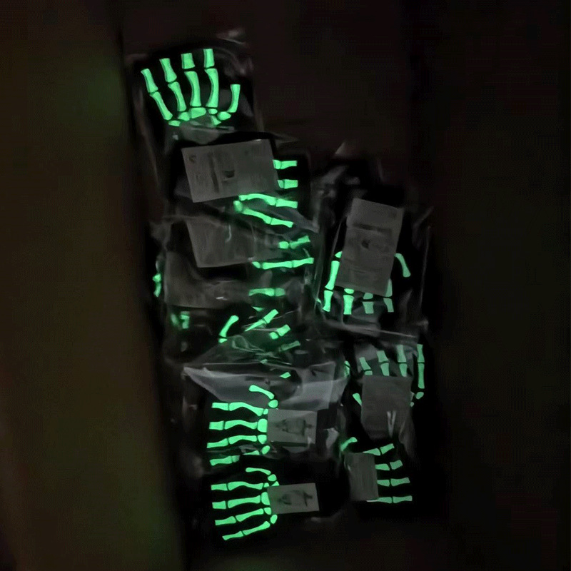 跨境万圣节骷髅头夜光手套鬼节搞怪手骨爪派对荧光装饰分指手套