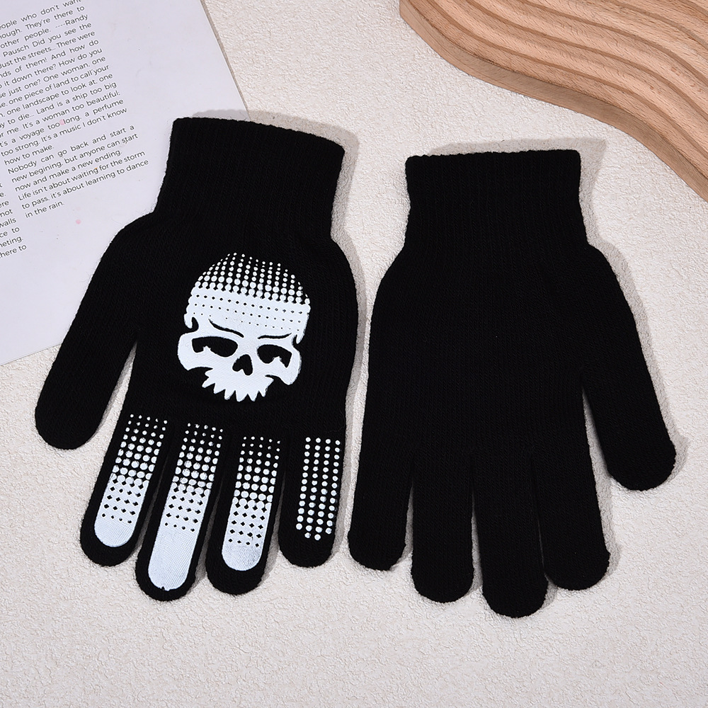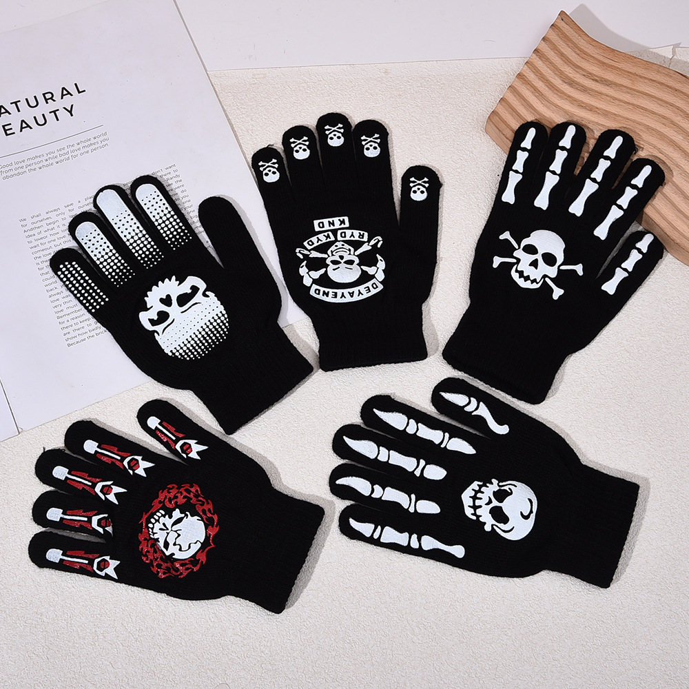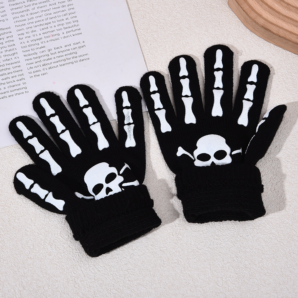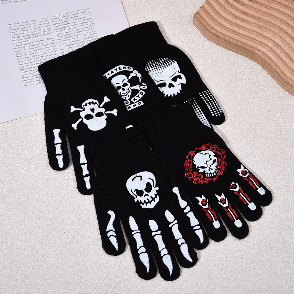 跨境万圣节骷髅头夜光手套鬼节搞怪手骨爪派对荧光装饰分指手套