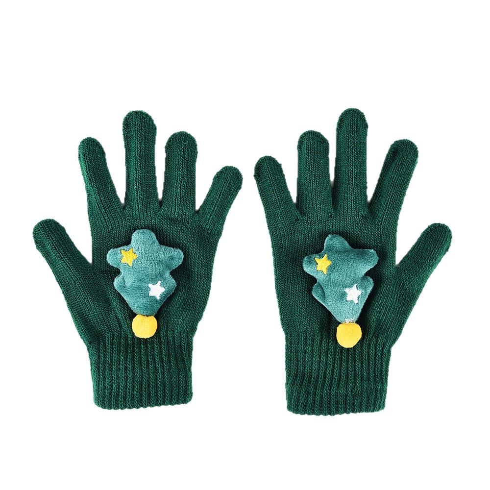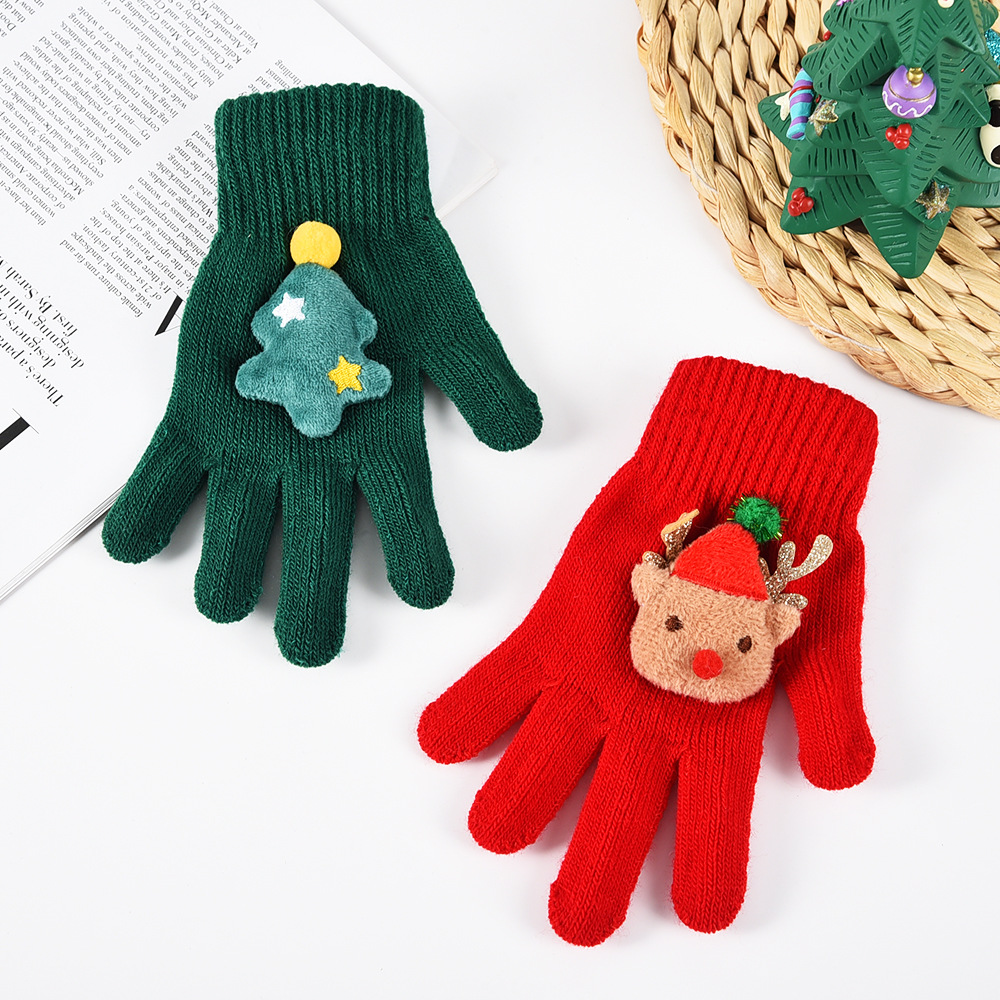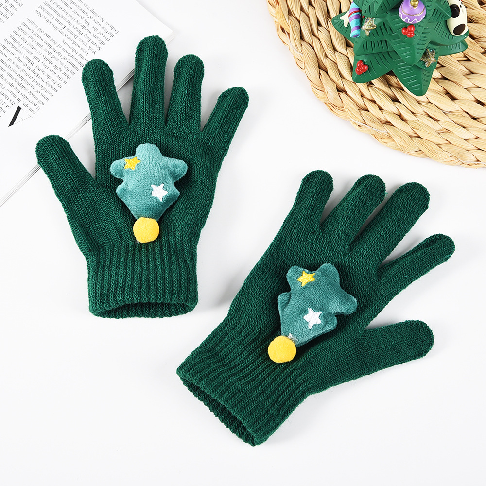 秋冬跨境圣诞系列圣诞树麋鹿晴纶纱手套针织毛线手套儿童保暖分指