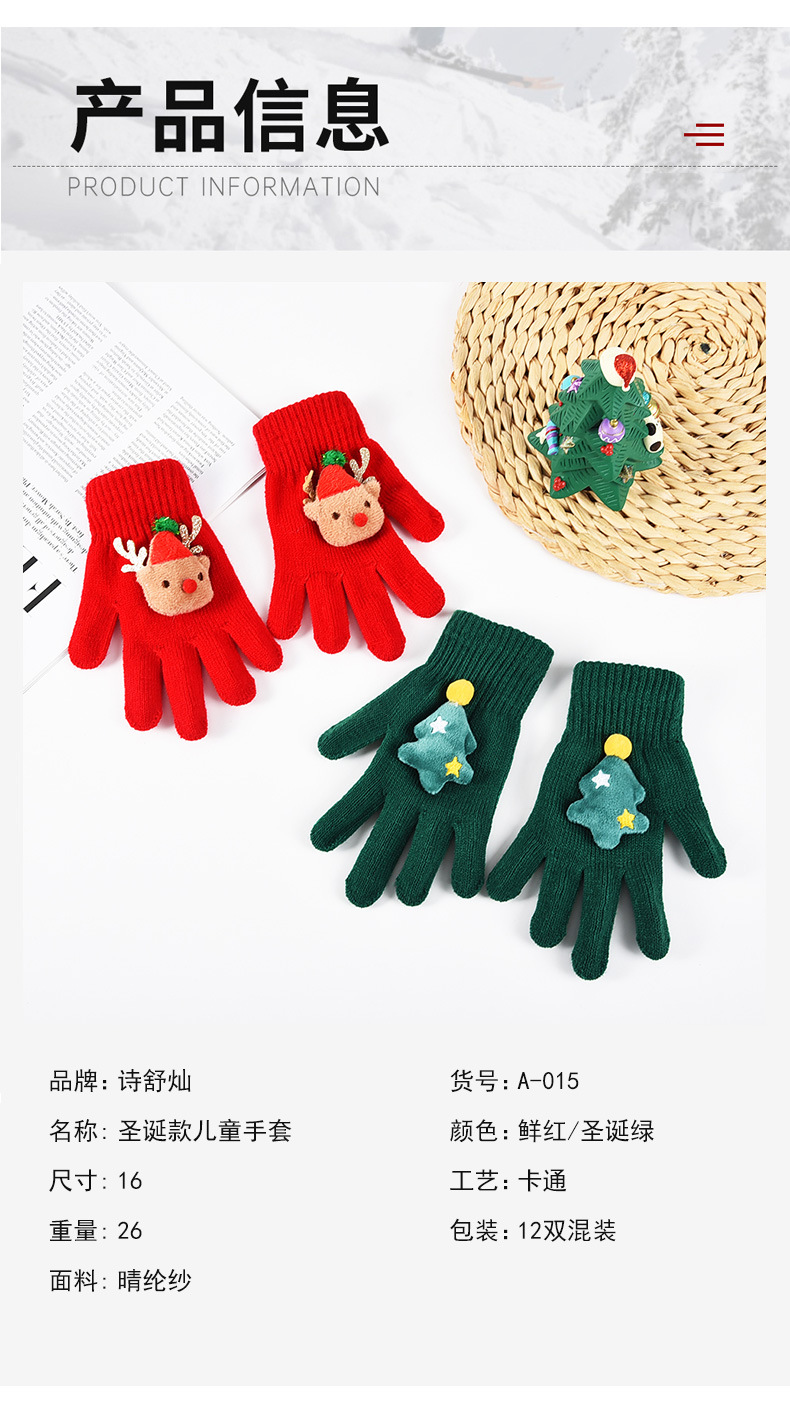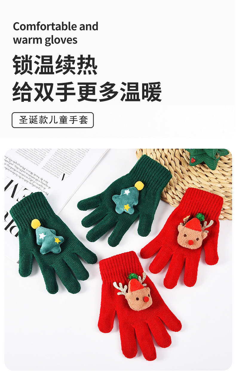 秋冬跨境圣诞系列圣诞树麋鹿晴纶纱手套针织毛线手套儿童保暖分指 English | 投诉