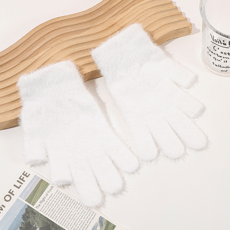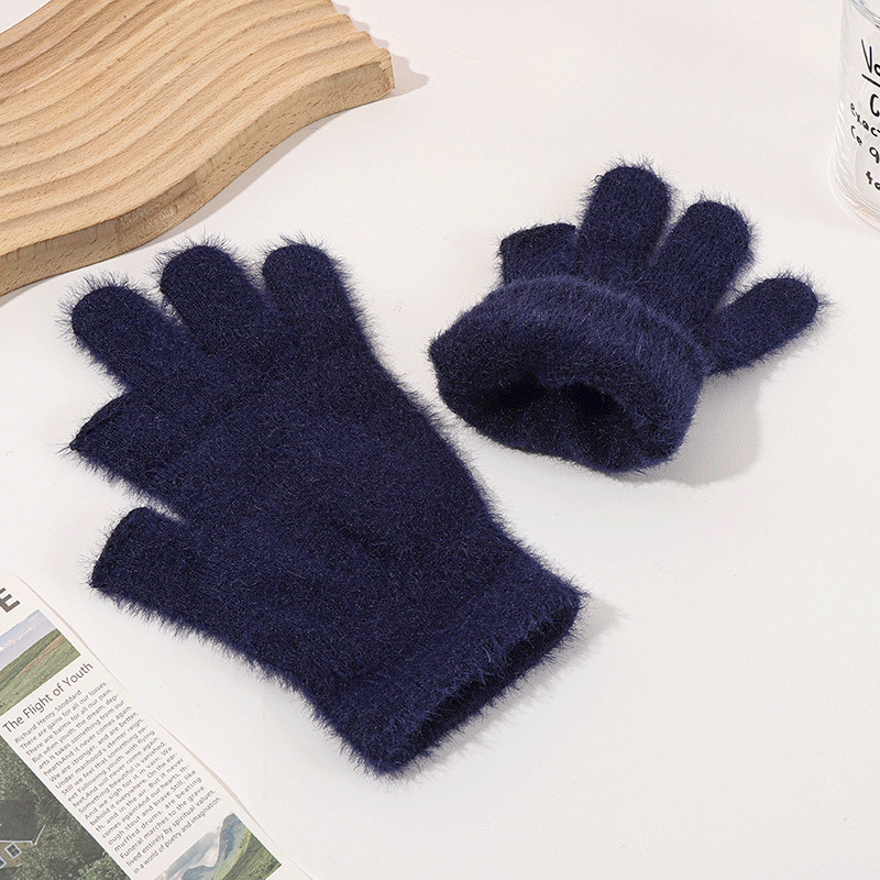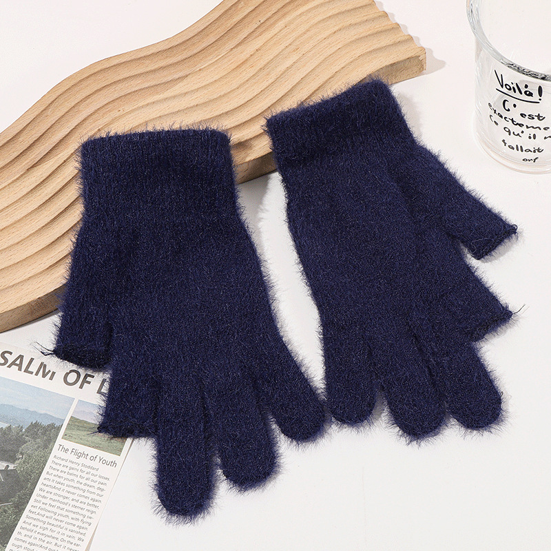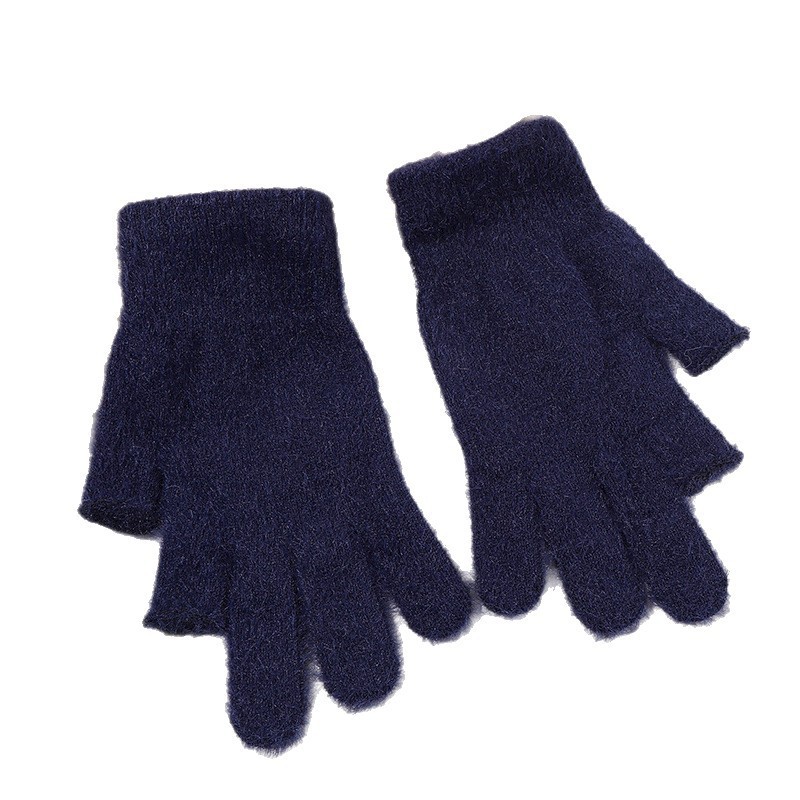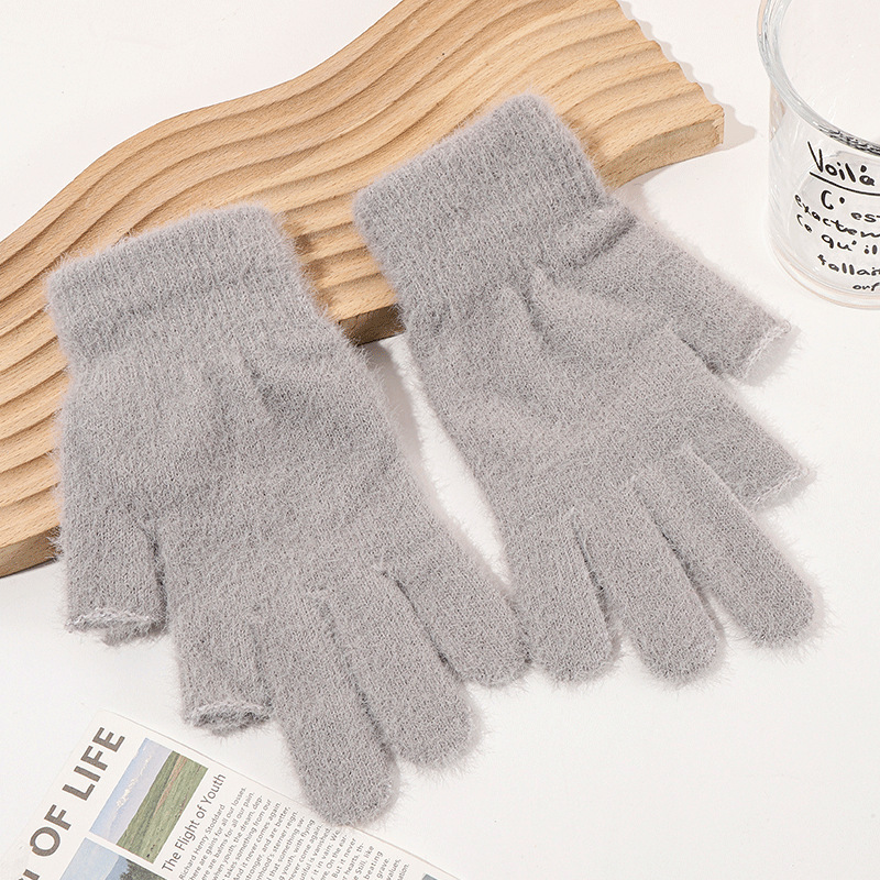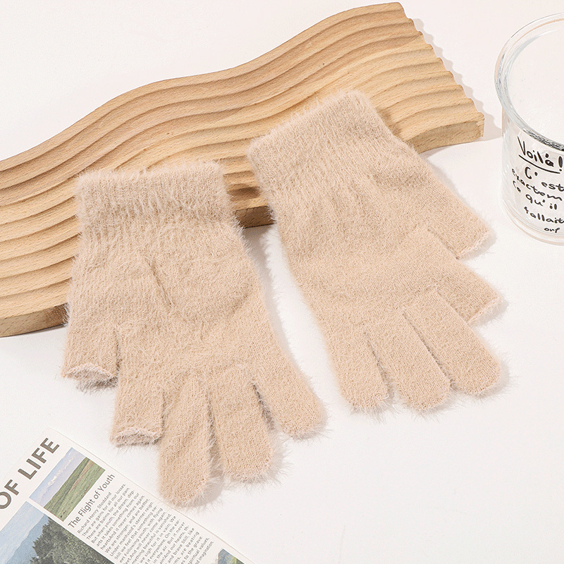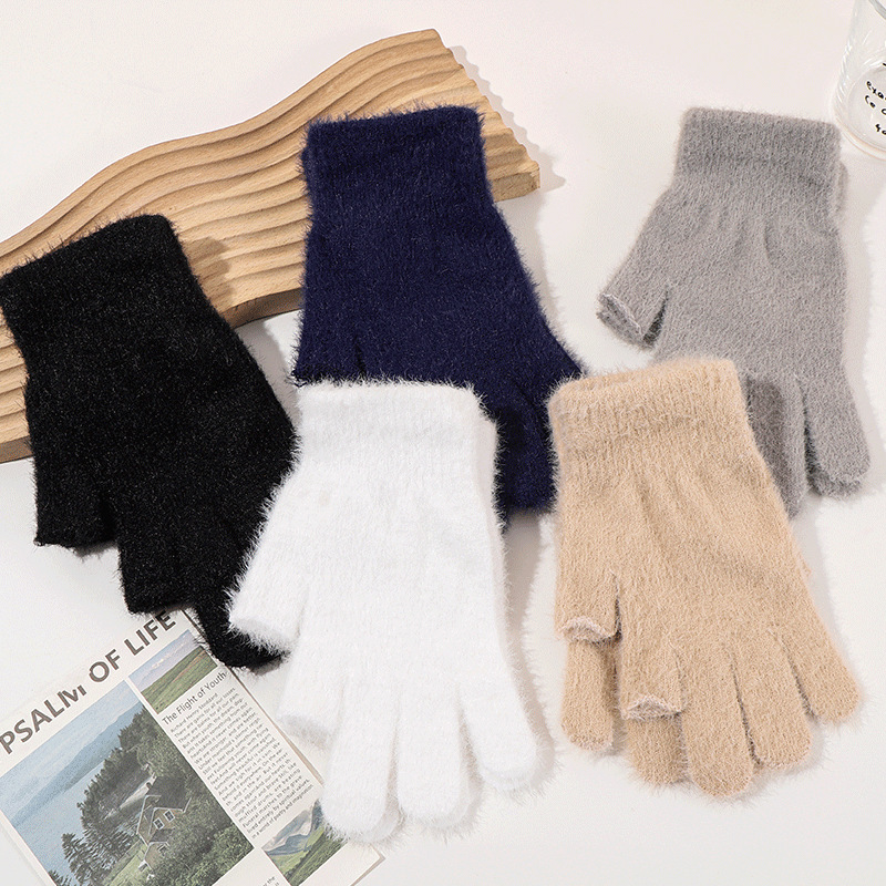 二指半水貂针织手套秋冬学生写字骑行手套纯色通勤触屏保暖手套 English | 投诉