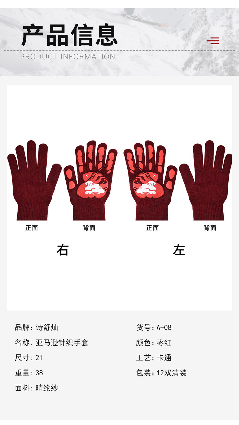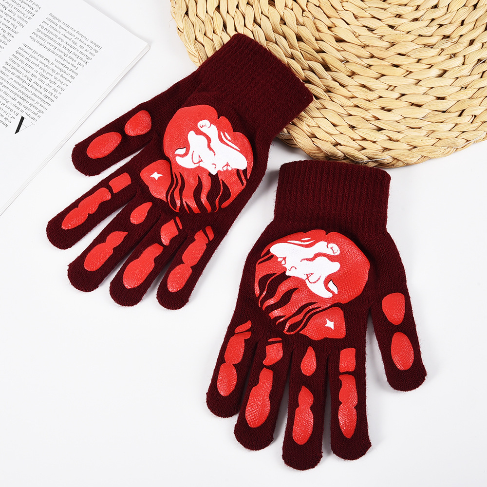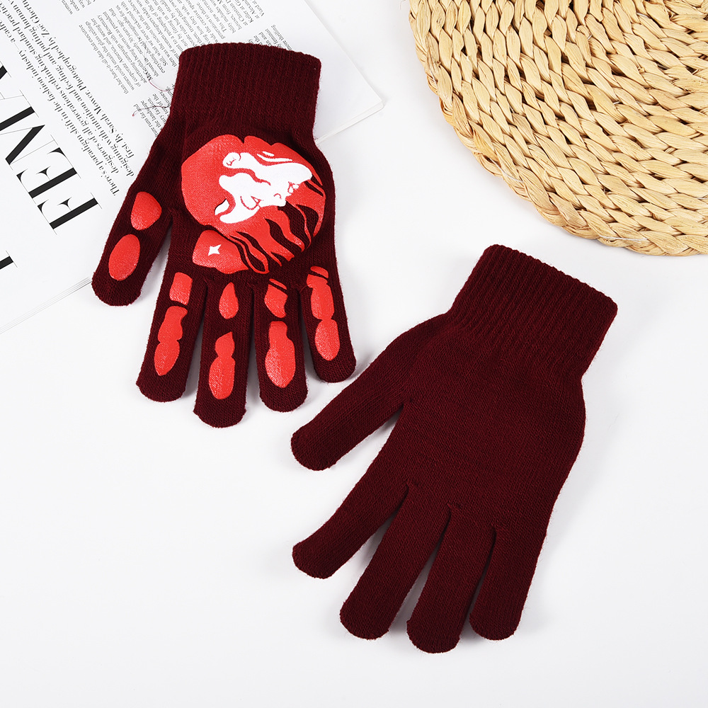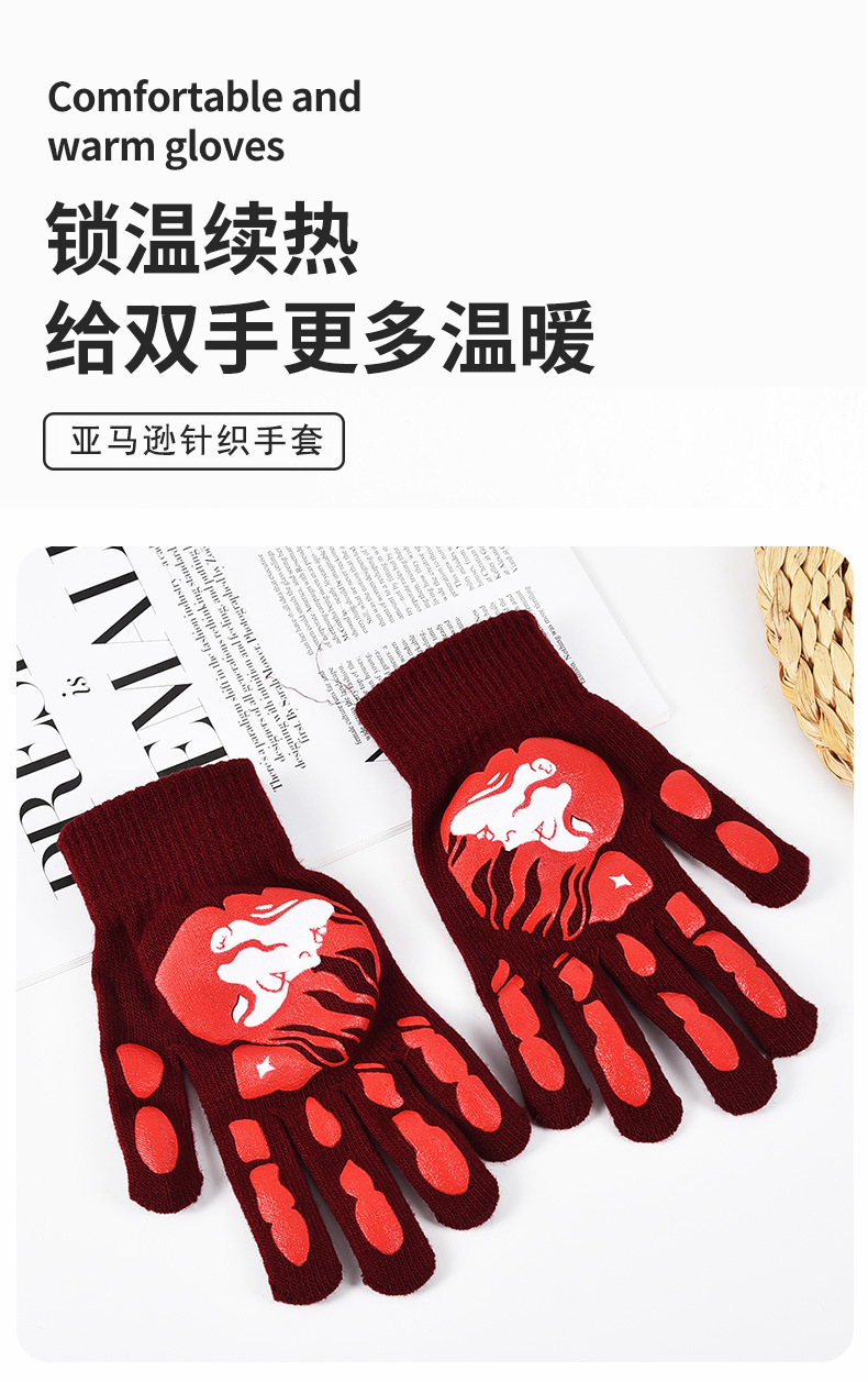 亚马逊跨境秋冬针织手套骑行晴纶纱手套男女保暖加厚万圣节五指手 English | 投诉