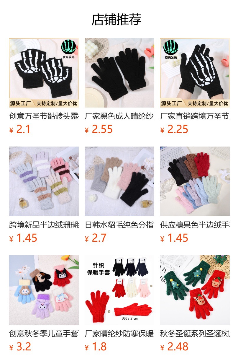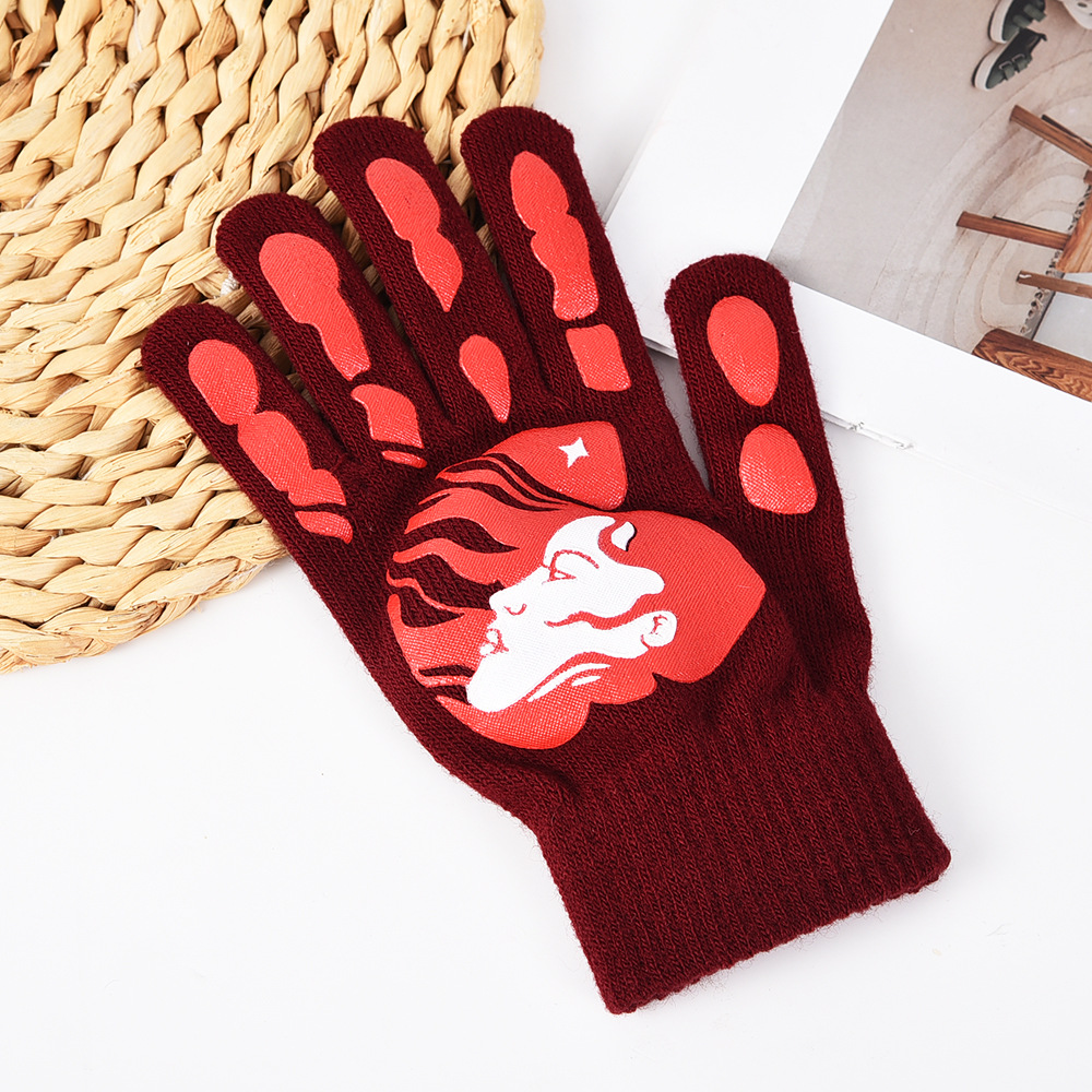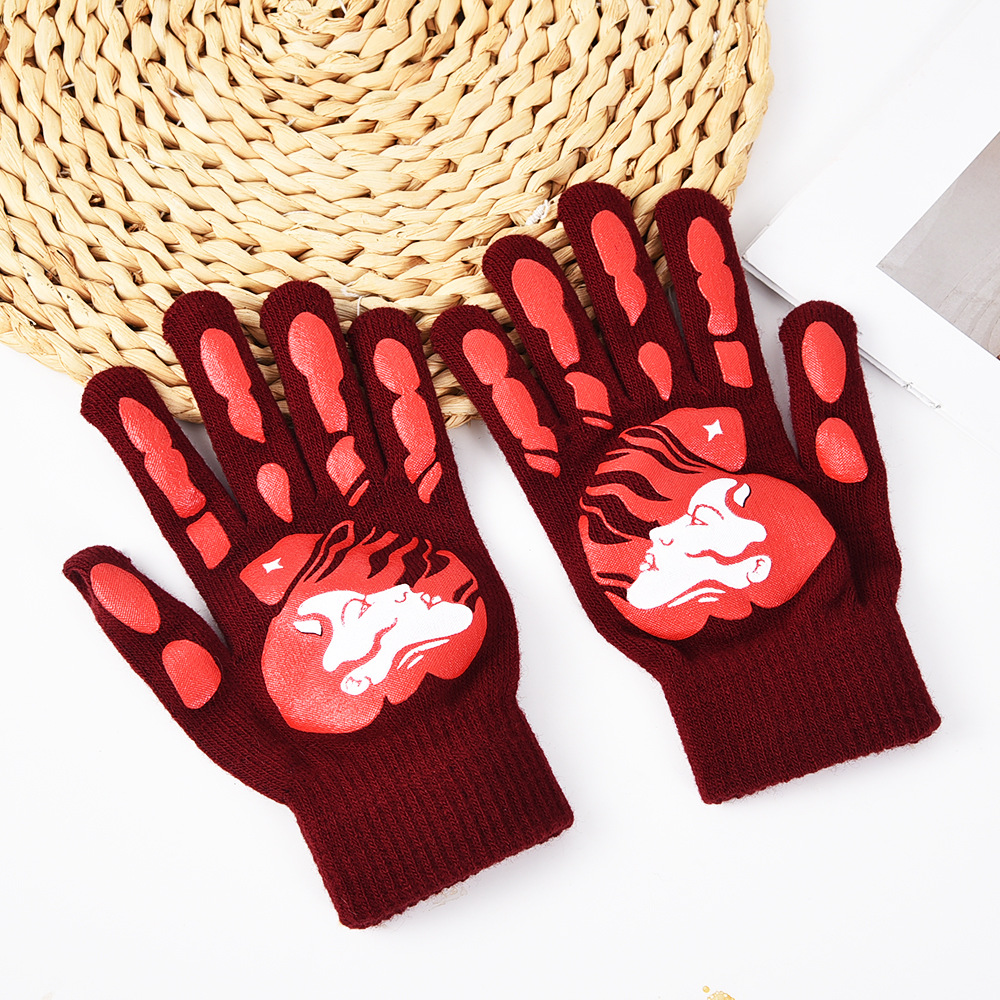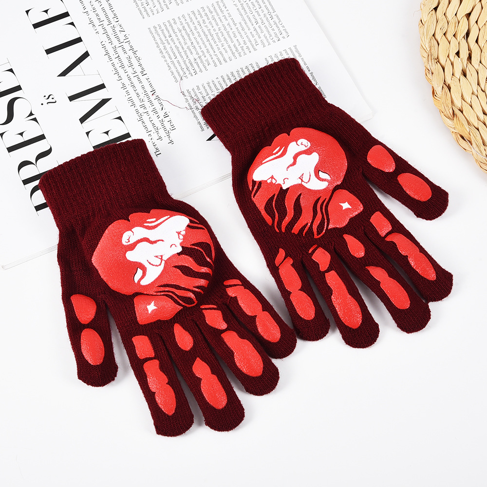 亚马逊跨境秋冬针织手套骑行晴纶纱手套男女保暖加厚万圣节五指手 English | 投诉