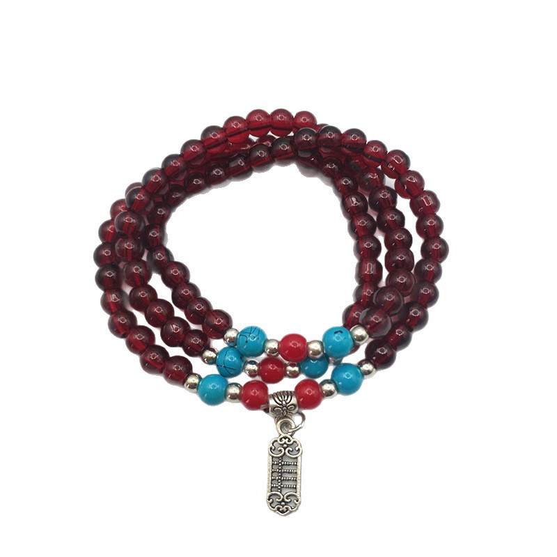 6mm仿石榴石三圈手串民族风多圈手链佛珠文玩手饰品直播货源福利