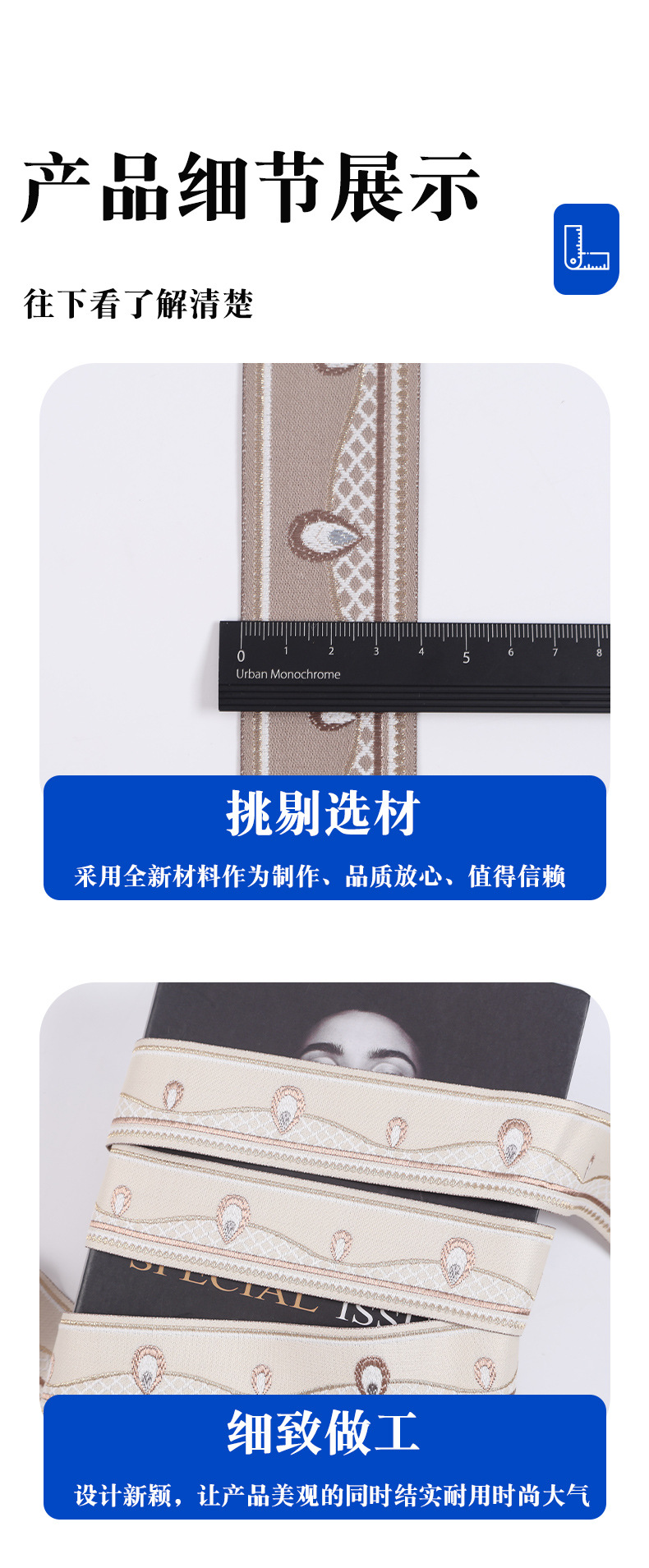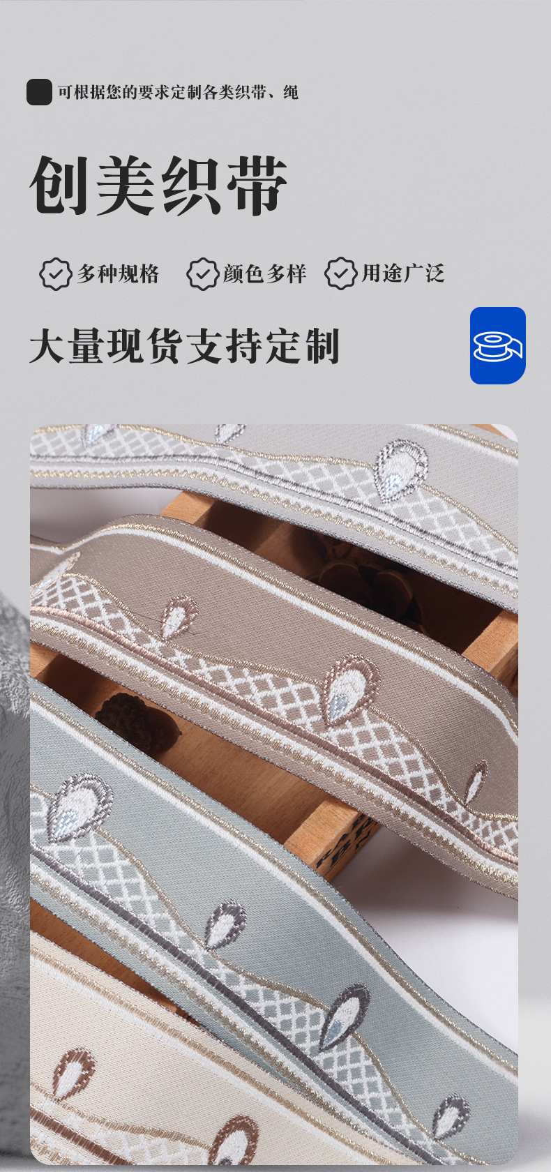 4cm宽法式优雅风提花带服装箱包宠物牵引绳织带纺织辅料包边带 English | 投诉