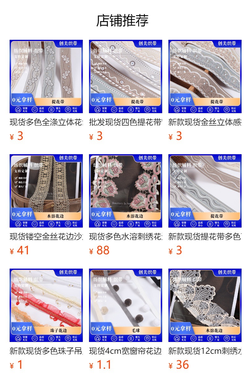品牌: 创美 风格: 法式优雅风 材质: 涤纶 货号: 0013 适用范围: 鞋帽,礼品包装,DIY手工,吊床辅助带, 1: 织带 2: 提花带