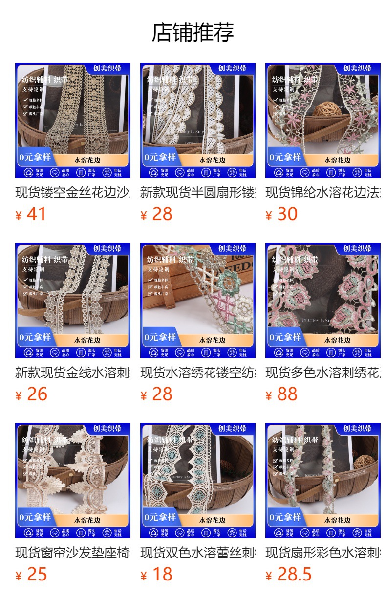 新款现货12cm刺绣水溶花边裙摆服饰沙发坐垫花边蕾丝辅料织带 English | 投诉