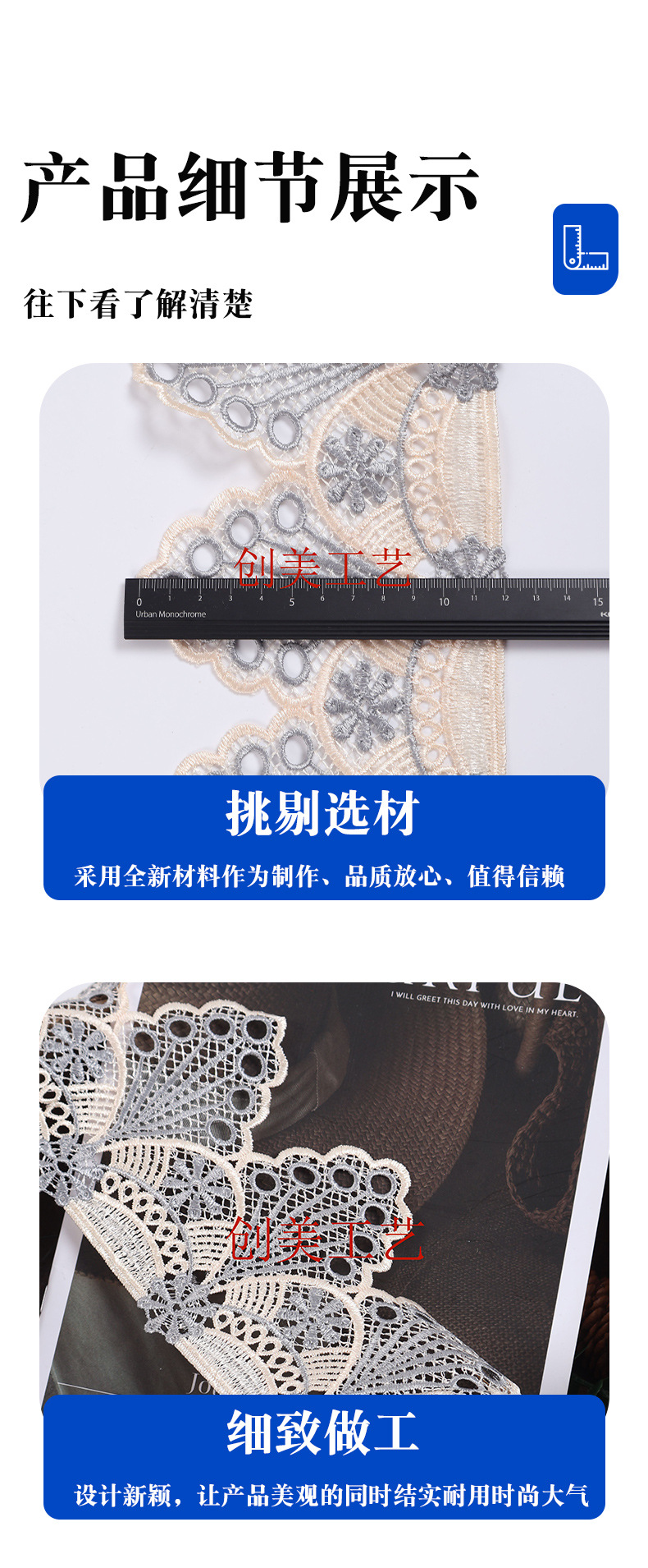 品牌: 创美 风格: 法式优雅风 货号: 0013 材质: 锦纶丝 适用范围: DIY手工,家纺用品,其他,家居软饰,窗 工艺: 水溶刺绣 2: 花边 1: 水溶花边