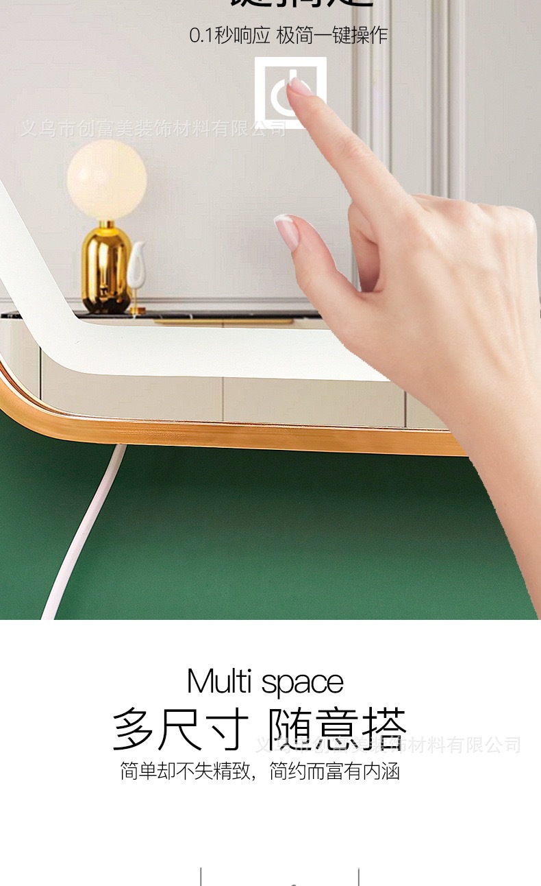 材质: 玻璃 功能: LED发光 品牌: 存韵 认证: 无 外形: 异形 是否提供安装服务: 是 是否配送上门: 送货至楼下 风格: 新中式 表面处理: 洗磨 是否一般纳税人: 是 货号: 0003 产地: 浙江 颜色: 黑色边框(直径50),金色边框(直径50 尺寸: 无灯款不亮光,单触摸白光,单触摸三色光, 是否跨境出口专供货源: 否 重量: 1.0 kg/个