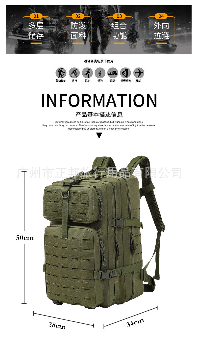 厂家直销户外战术激光3P包大容量拓展舒适牛津布耐磨都市休闲背包 投诉