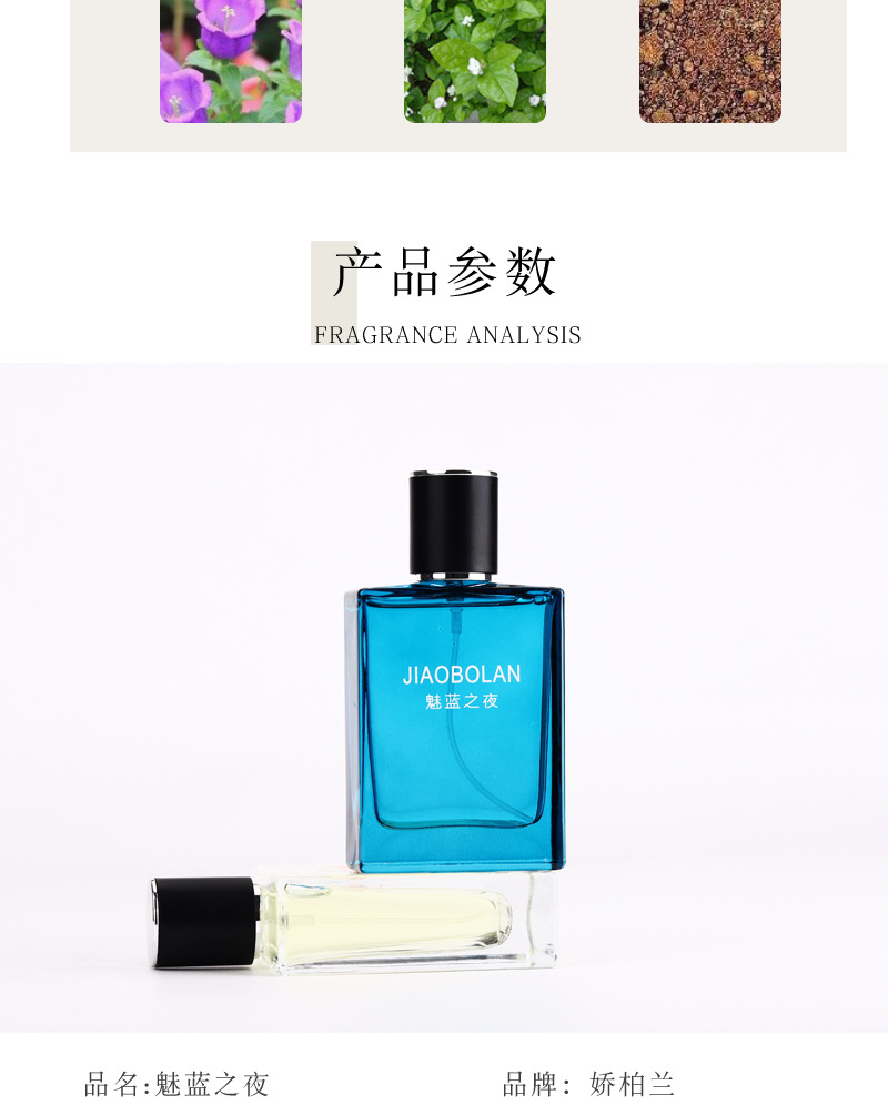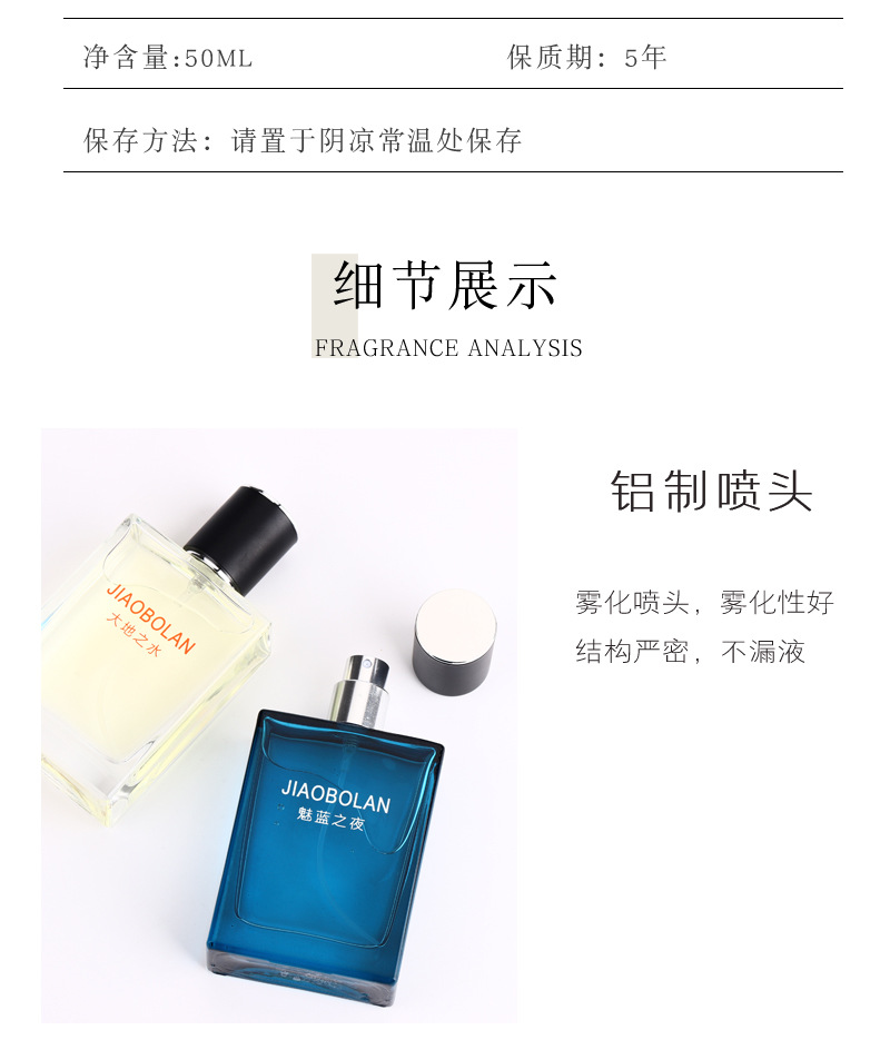 品牌: 娇柏兰 香味: 古龙香,广藿香,无香型,奶香味,兰花味, 香调: 木质调 适用人群: 男士 净含量: 50 赋香率: 7-12% 产品名称: 娇柏兰JIAOBOLAN大地之水香水 生产许可证号: 鲁妆20220003 品牌类型: 国货品牌 规格: 大地之水,魅蓝之夜 是否进口: 否 产地: 山东 货号: SLY7077 保质期: 3年 主要下游平台: ebay,亚马逊,wish,速卖通,独立 是否跨境出口专供货源: 是 有可授权的自有品牌: 是 非特化妆品备案证号: 鲁G妆网备字2022005901 特殊用途化妆品: 否 适用场合: 浪漫约会,日间使用,多场景通用 重量: 0.2 kg/瓶