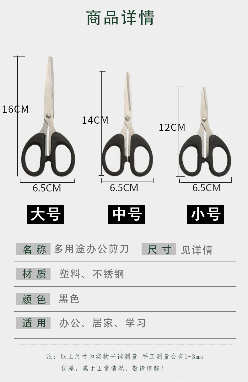 办公用品不锈钢家用剪刀黑色办公剪刀美工手工剪小/中/大号批发 投诉