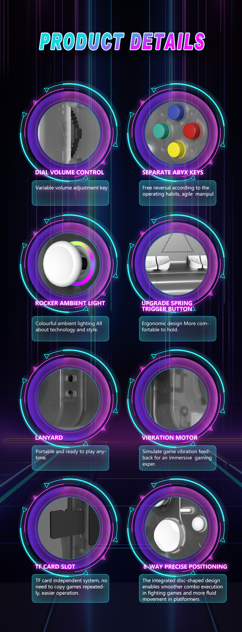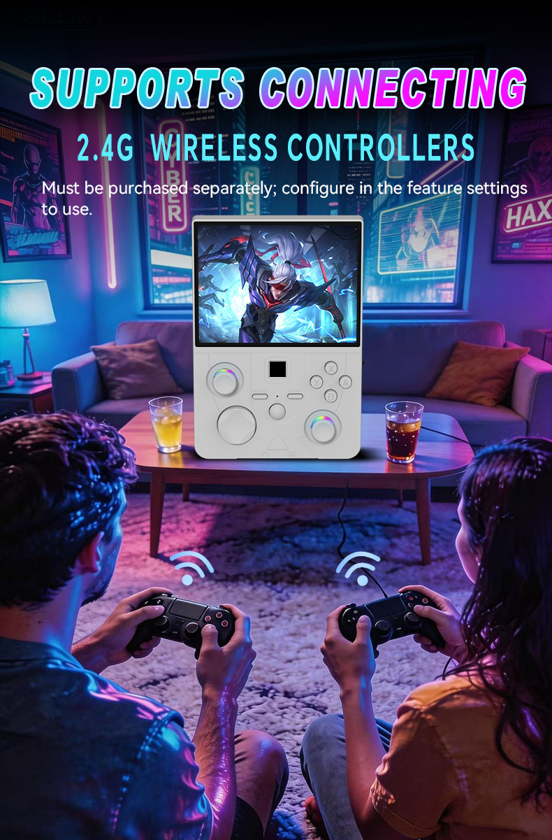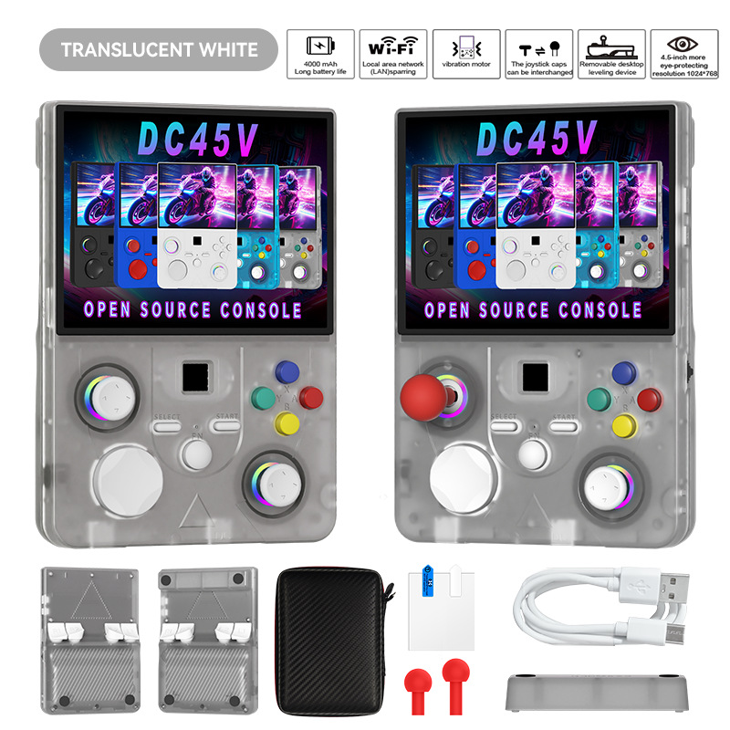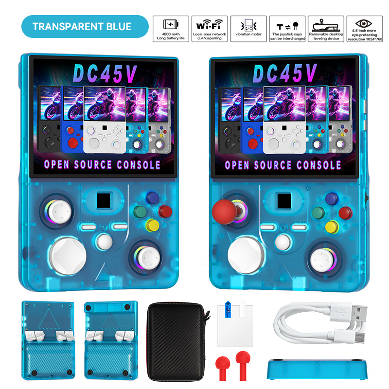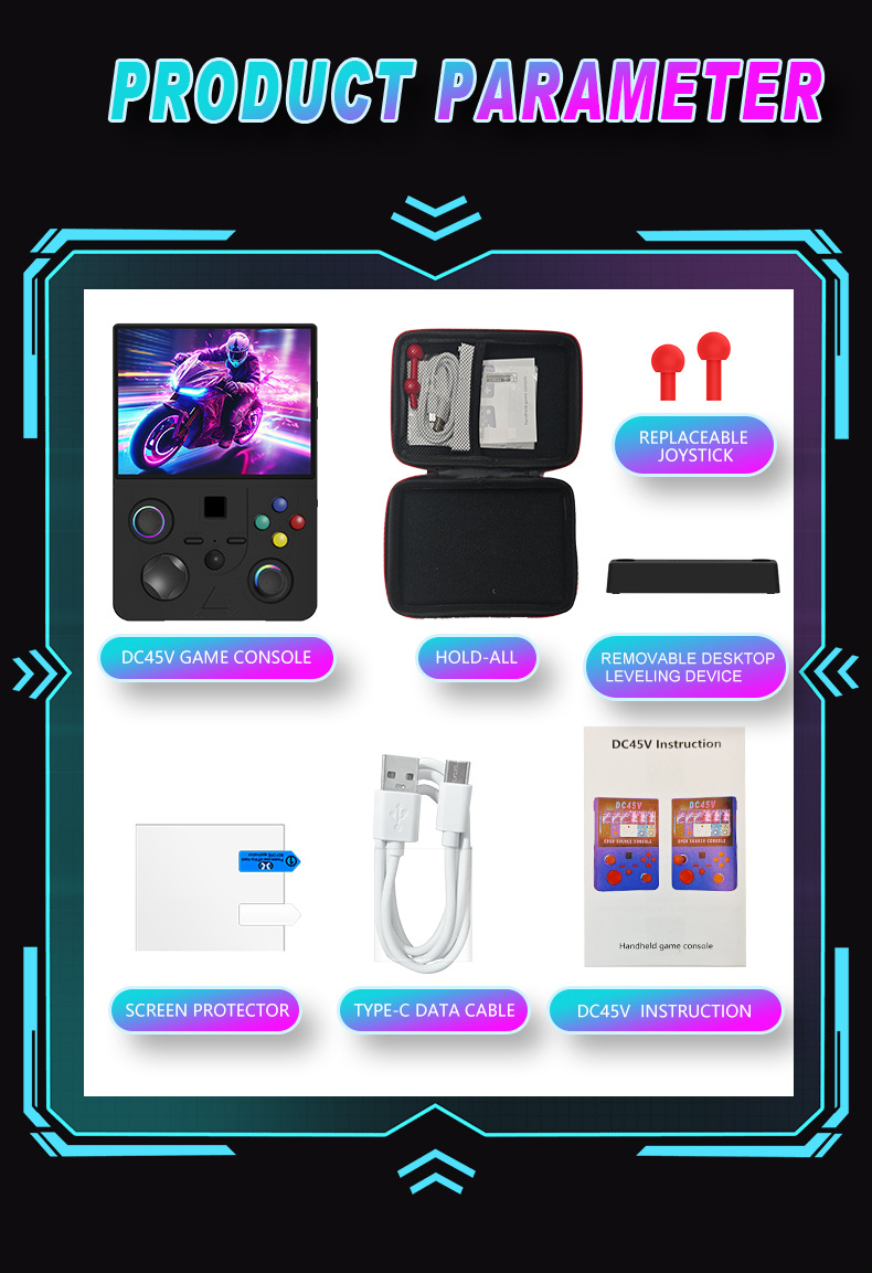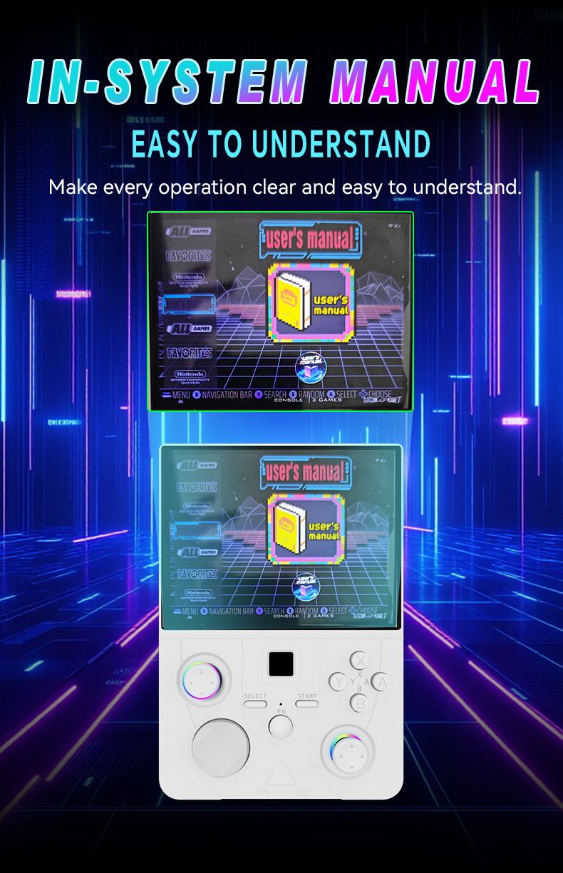 开源Linux系统 系统在主板上无插卡可以开机,系统带说明书,支持8-64位游戏 有战神可玩 可替换街机摇杆,可拆卸桌面平稳支架,支持外接手柄,自带IWFI可联机对打 振动马达 人体工学握把 腔体喇叭,分离式ABXY键,摇杆炫彩氛围灯,附赠屏保护膜,收纳包。