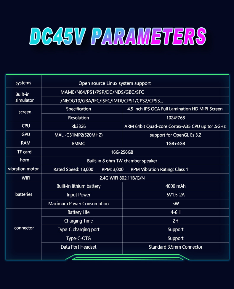 CPU:RK3326原装芯片 RAM:EMMC 1GB+4GB