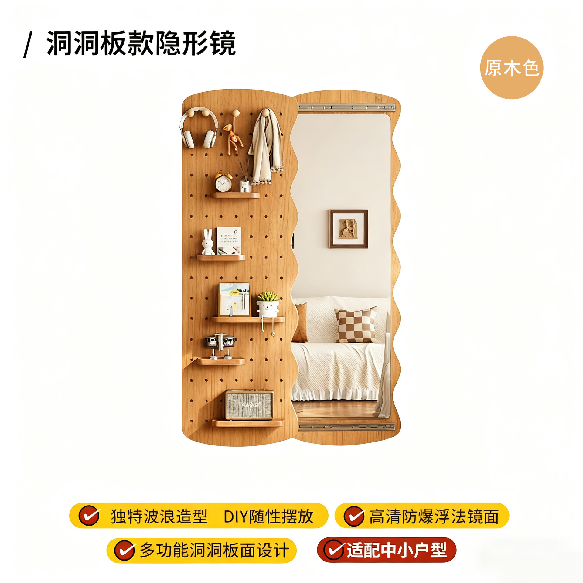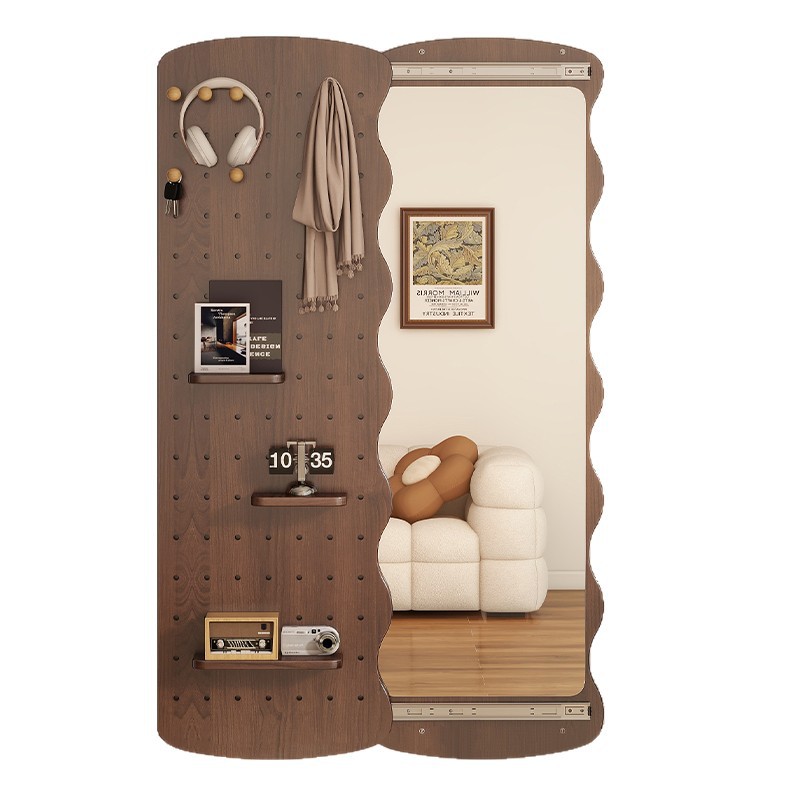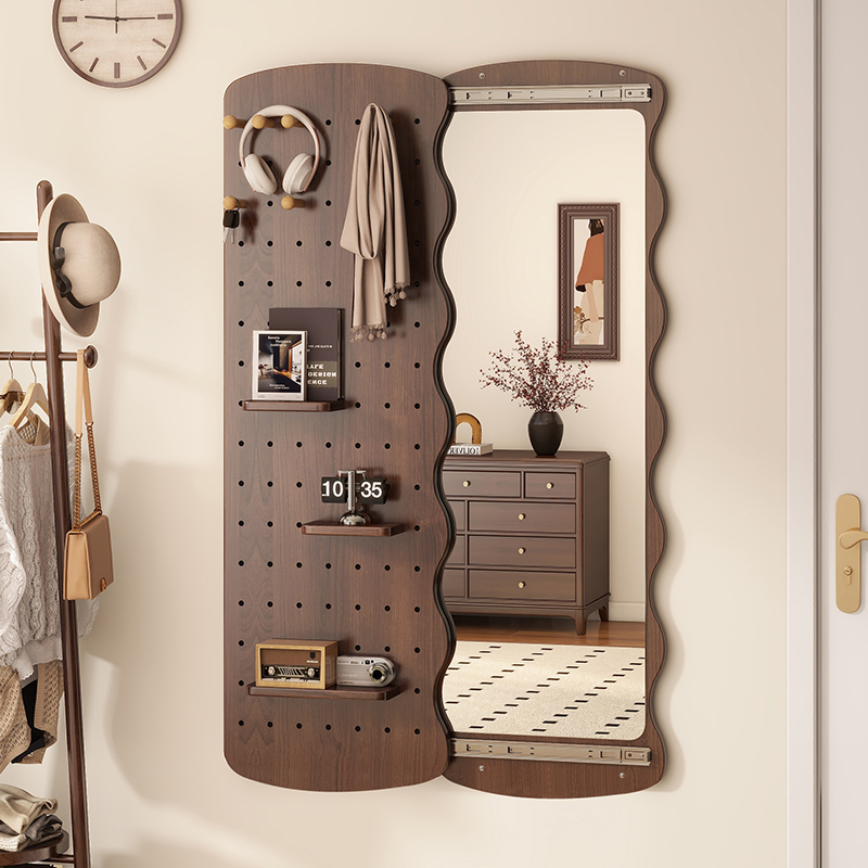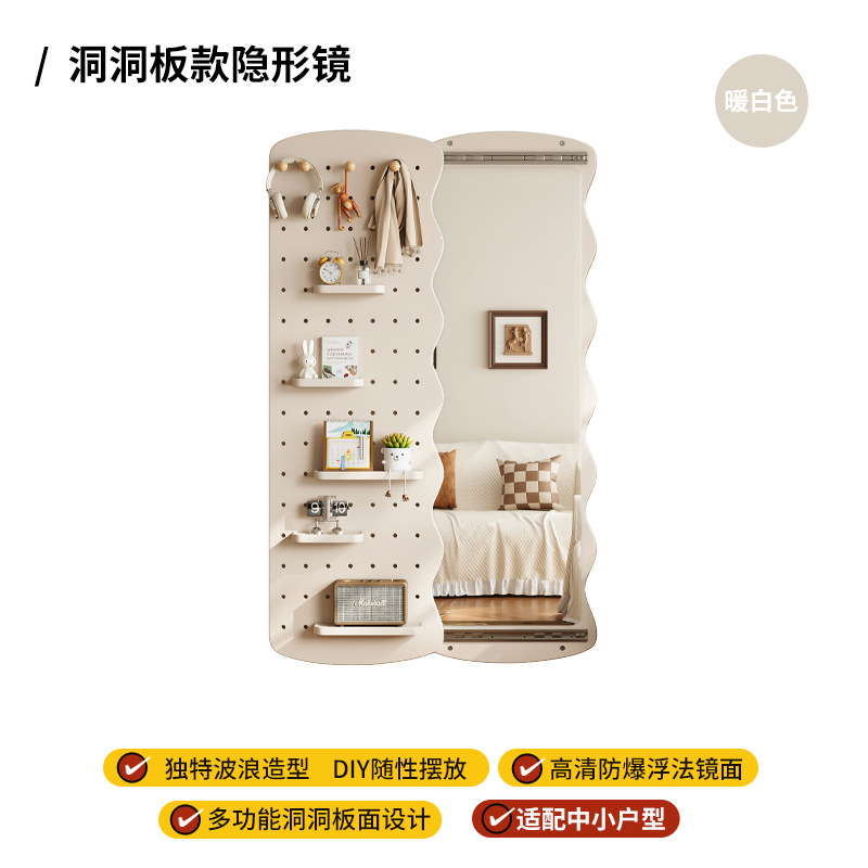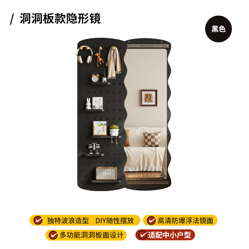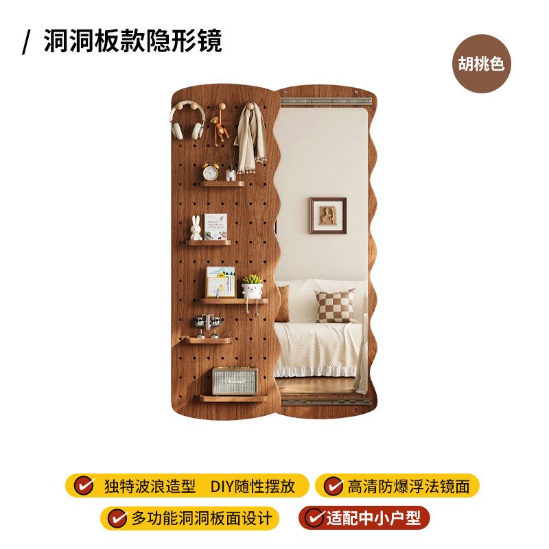 波浪洞洞板穿衣镜隐藏式推拉全身镜子家用可关闭壁挂墙玄关试衣镜