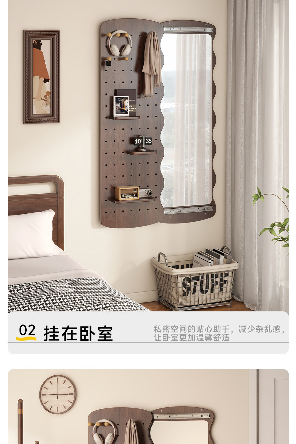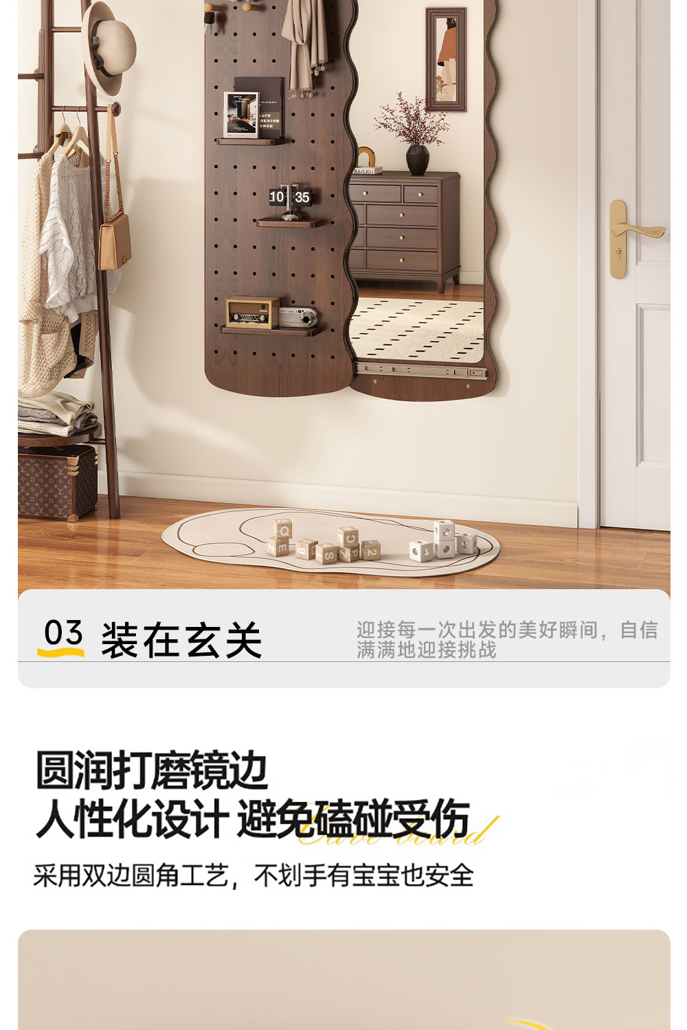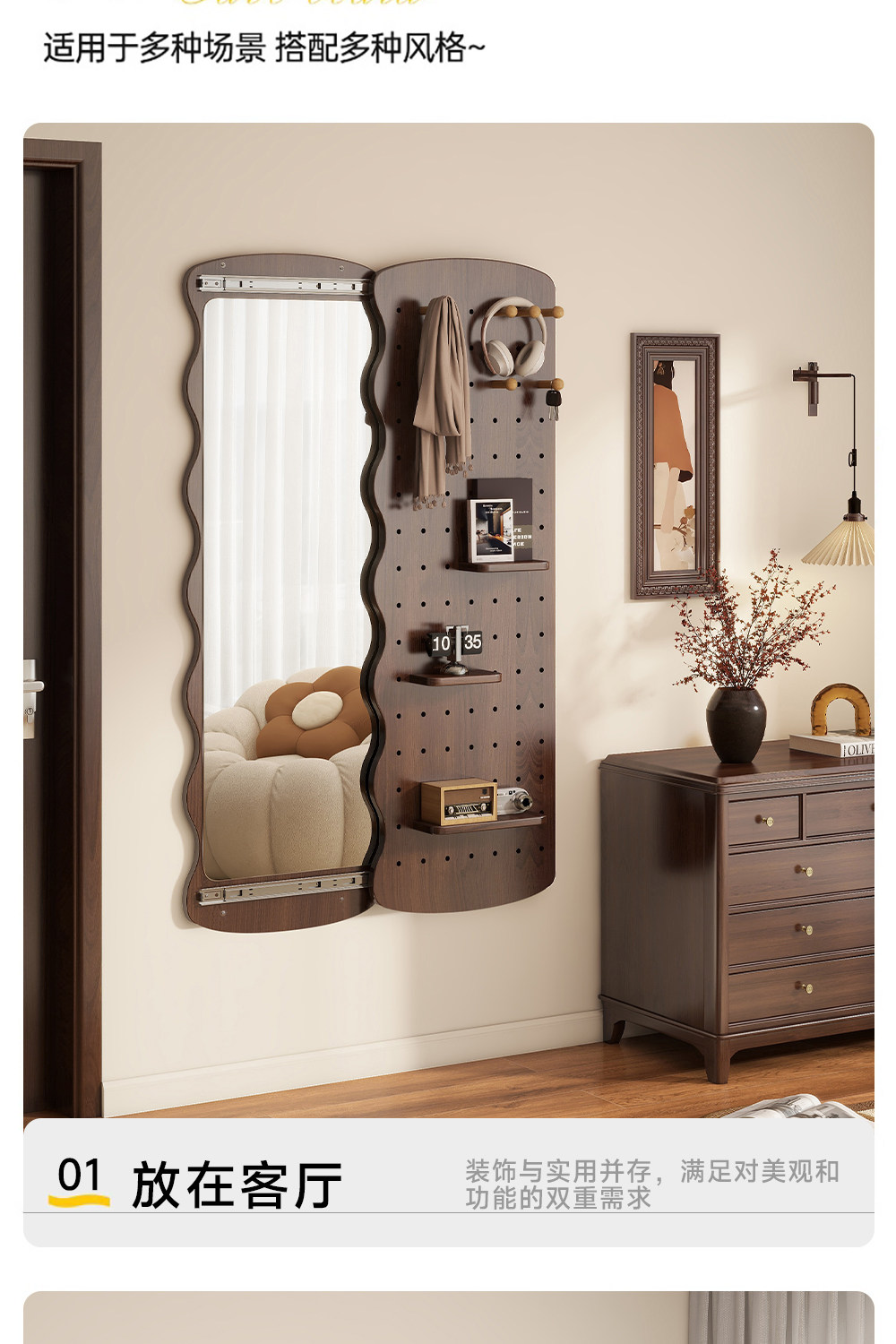 波浪洞洞板穿衣镜隐藏式推拉全身镜子家用可关闭壁挂墙玄关试衣镜