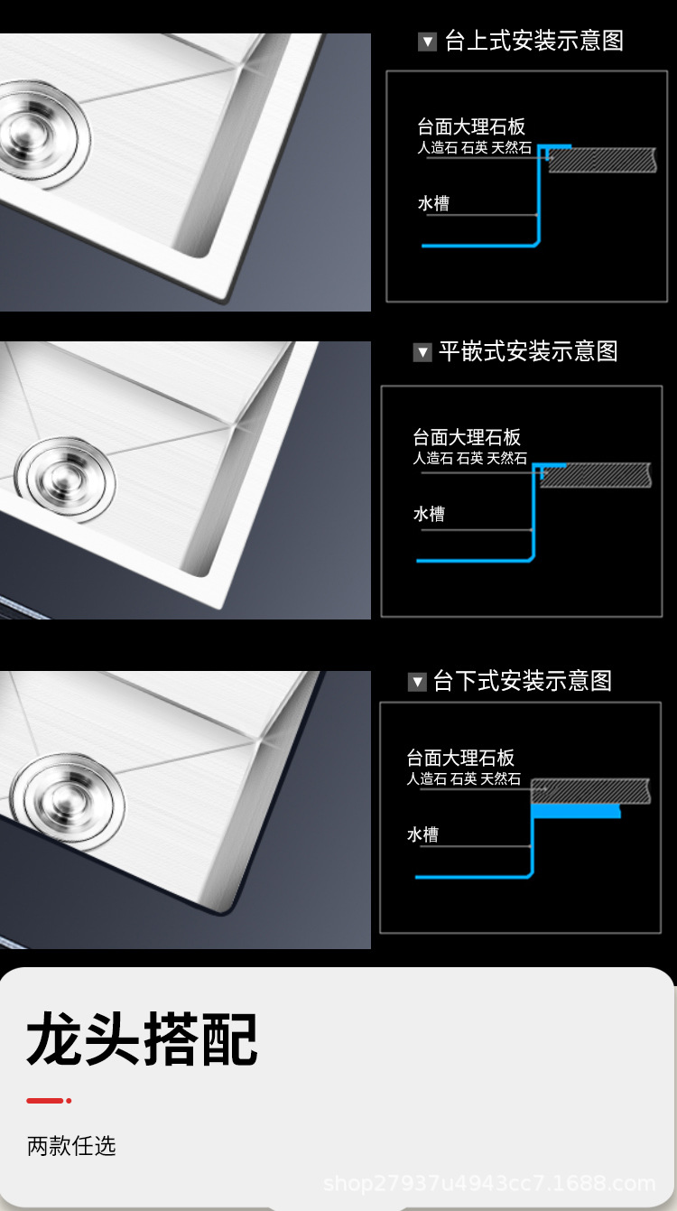 拉丝水槽洗菜盆加厚不锈钢水槽 德国工艺洗碗池厨房水槽大单槽