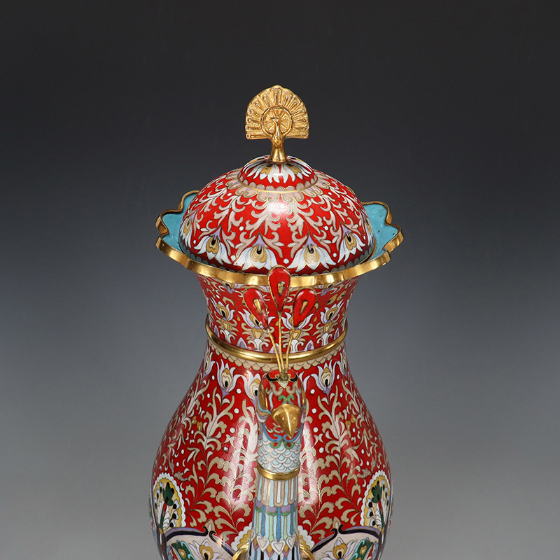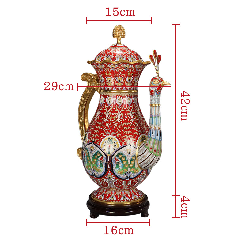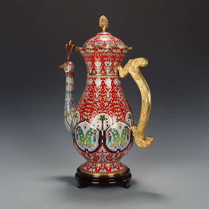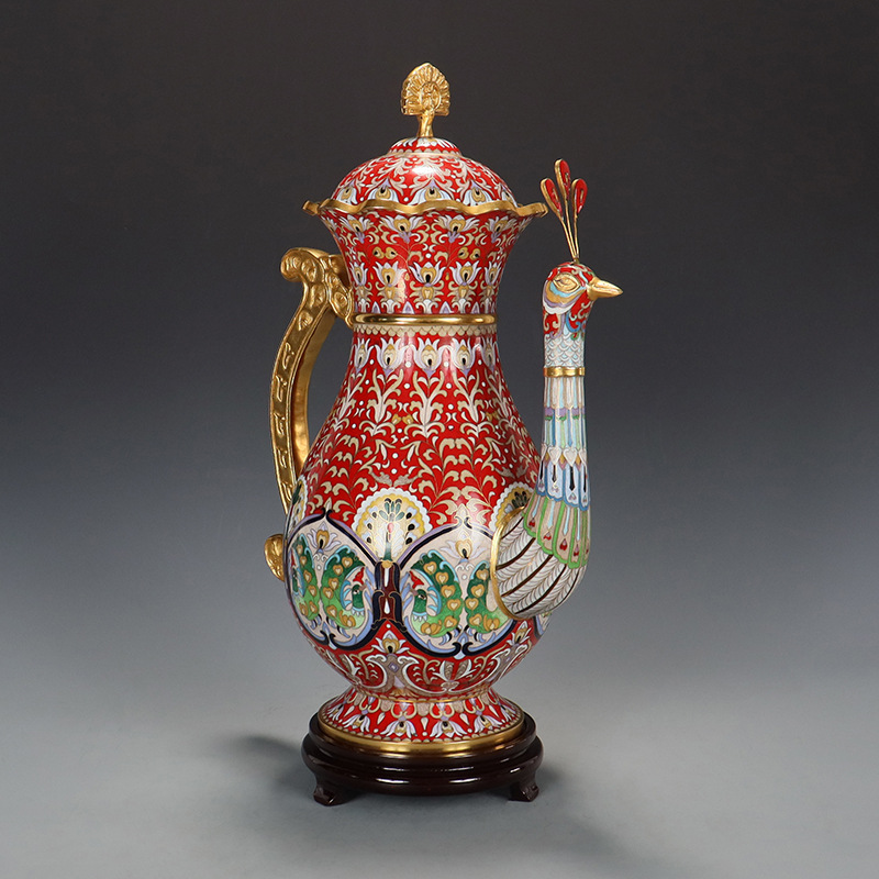 精品北京景泰蓝老货文玩收藏摆件传统铜胎掐丝珐琅磨光16寸孔雀壶 English | 投诉