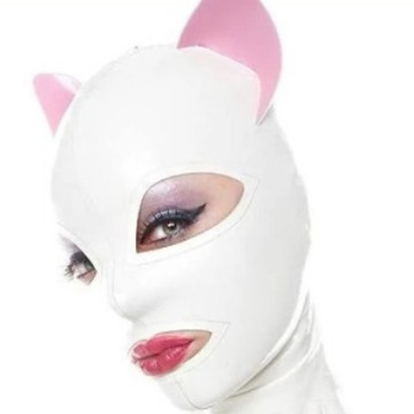 性感乳胶头套成人情趣白色猫耳乳胶头套派对万圣节cosplay面具