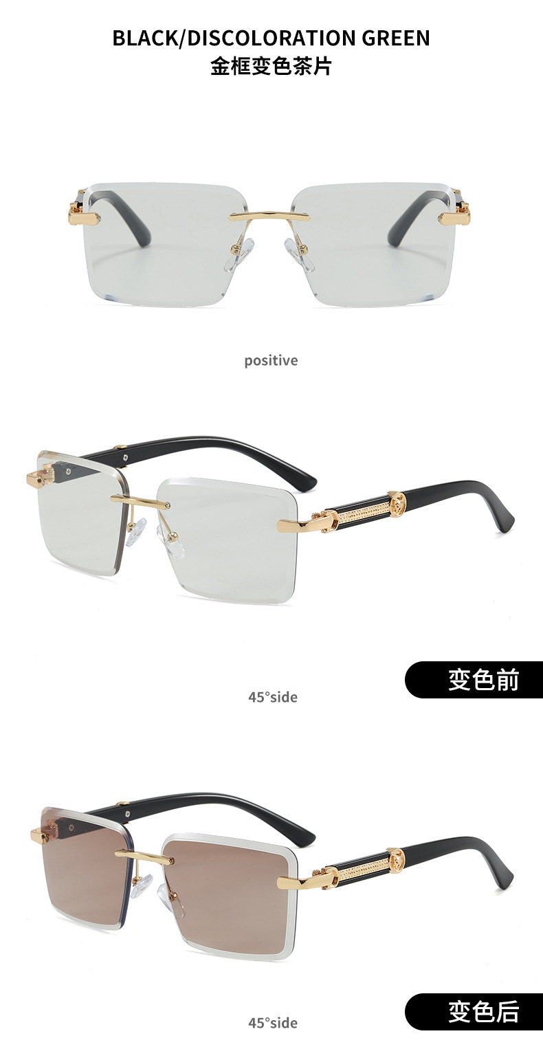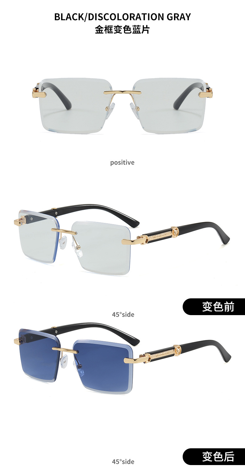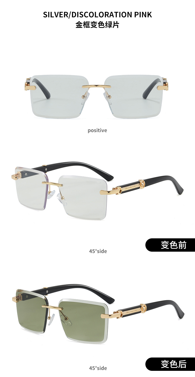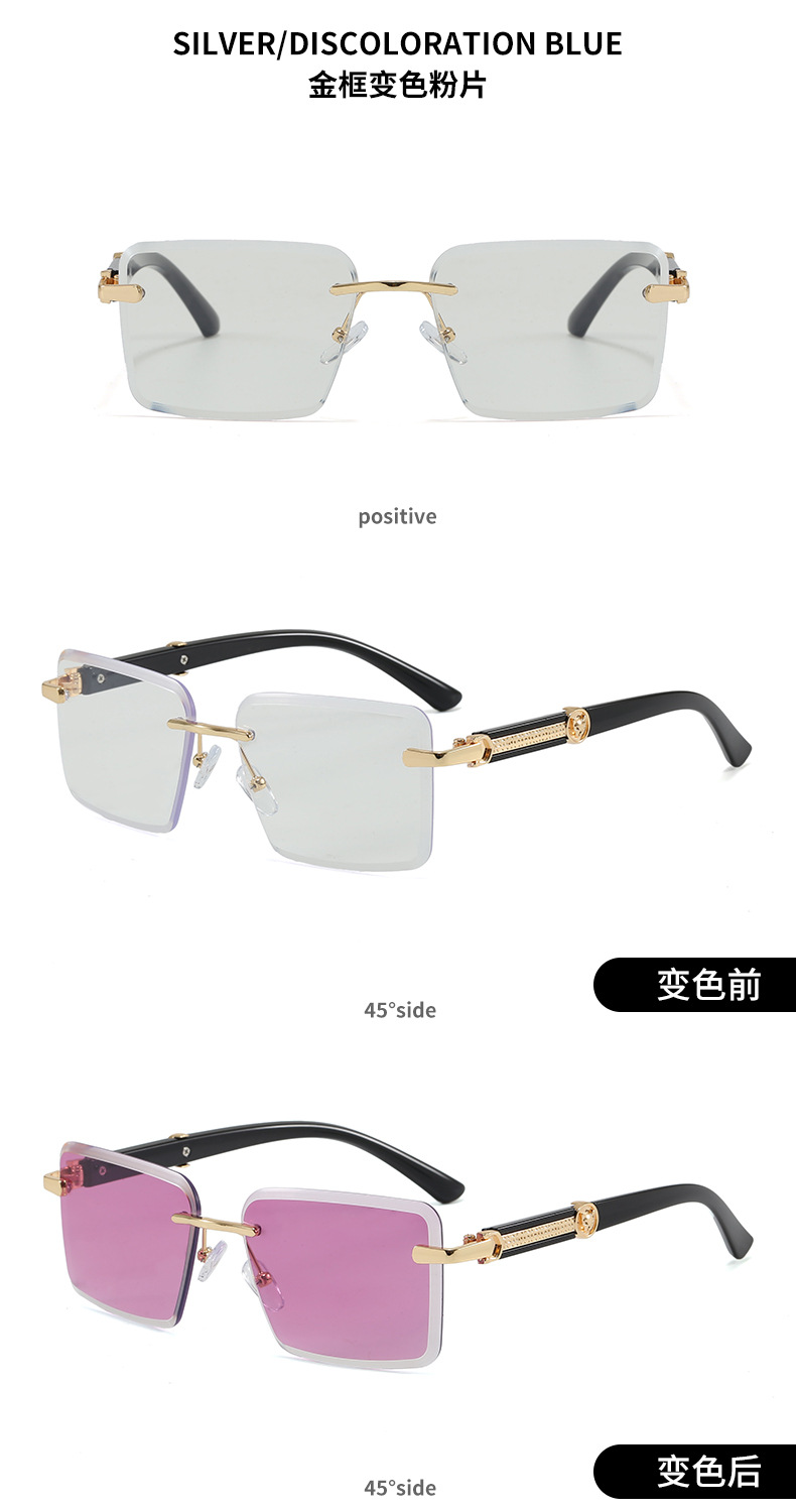 2026新款跨境时尚变色切边无框太阳镜女个性潮流户外防晒墨镜5028