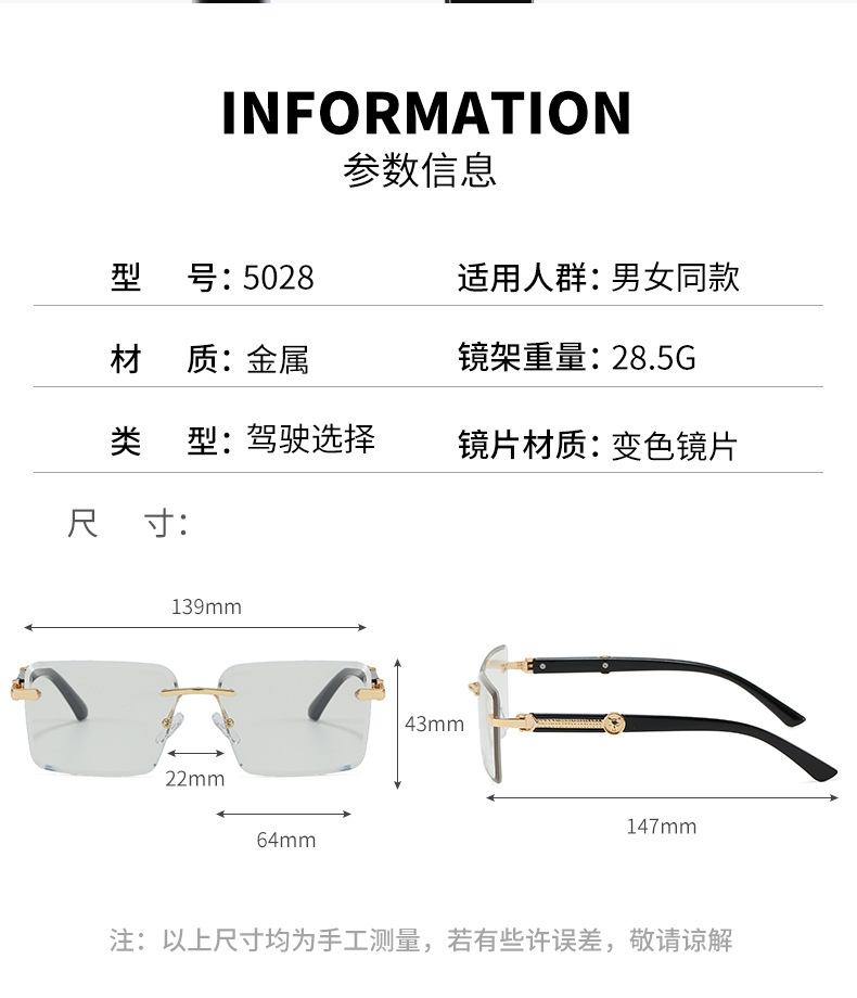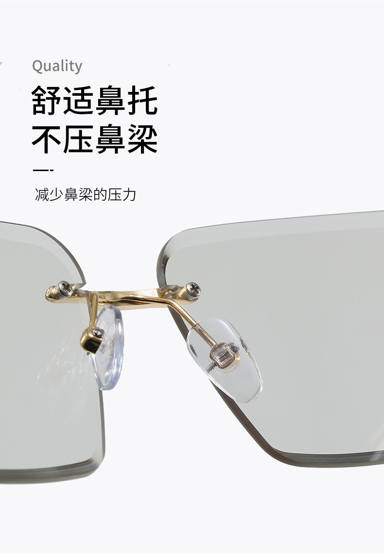 2026新款跨境时尚变色切边无框太阳镜女个性潮流户外防晒墨镜5028 投诉