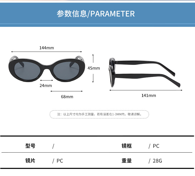 2023新款小椭圆黑框太阳镜2099欧美时尚百搭太阳眼镜男女墨镜现货 投诉