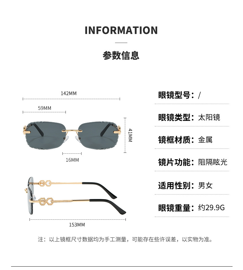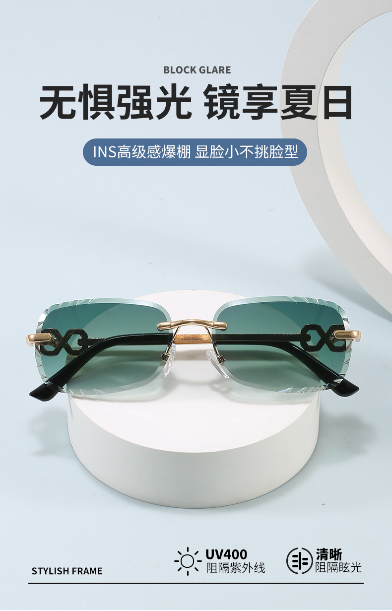 2025新款个性无框切边镜片太阳眼镜 欧美ins网红同款墨镜女高级感