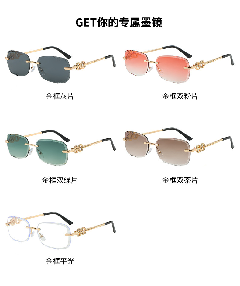 是否偏光: 否 抗UV等级: UV380 镜片材质: PC 品牌: 其他 眼镜款式: 方框 镜框材质: 金属 镜架材质: 合金,锌合金 是否支持近视镜: 支持近视镜 货号: LM-5008 镜片颜色: 灰色 镜架颜色: 金色 透射比分类: 2类/遮阳镜 眼镜结构: 无框 适用场景: 派对聚会 流行元素: 太阳 上市年份/季节: 2025年春季 是否跨境出口专供货源: 是 颜色: 金框灰片,金框双粉片,金框双绿片,金框双 产地: 台州 风格: 个性 重量: 0.03 kg/副