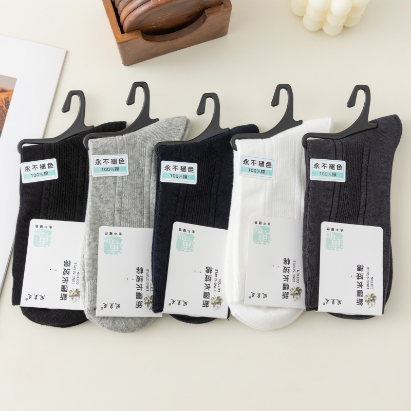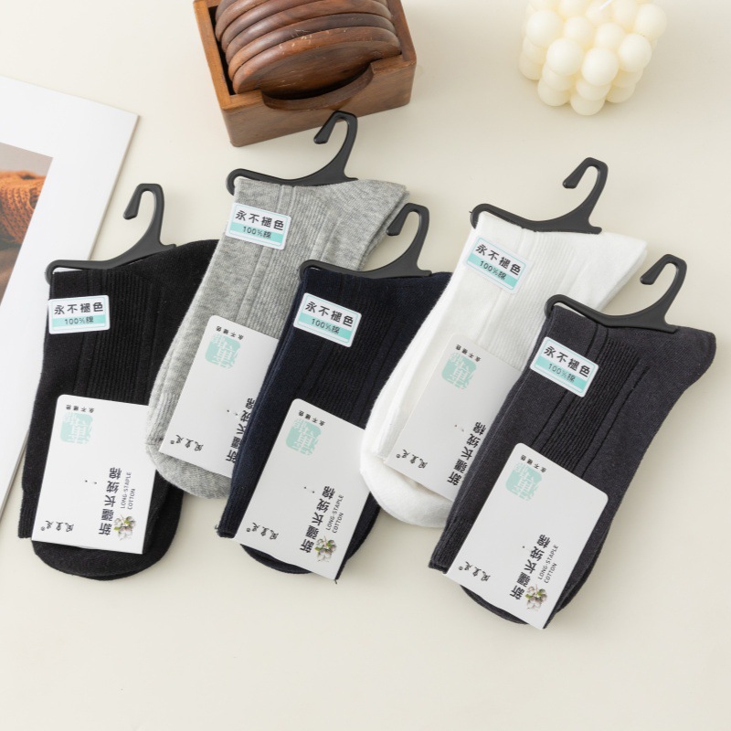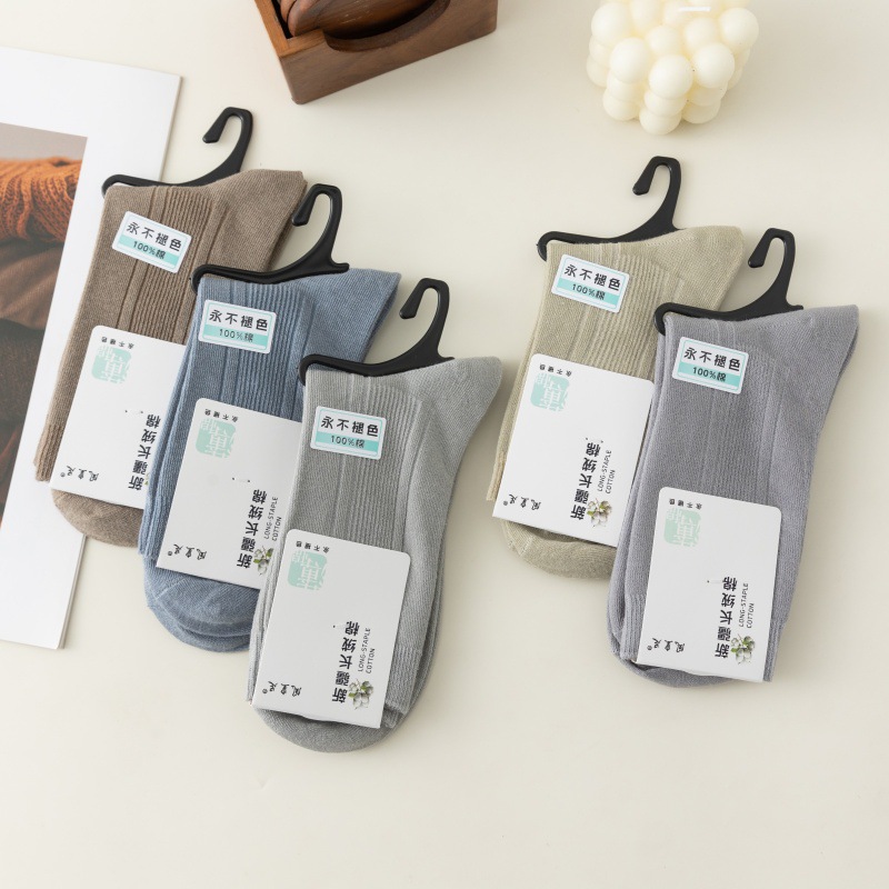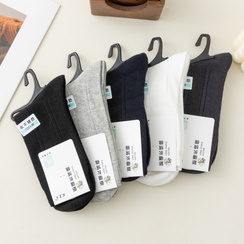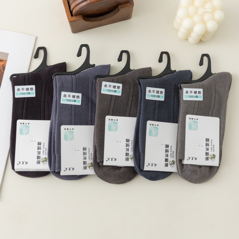 男士春秋款薄棉双针中筒袜